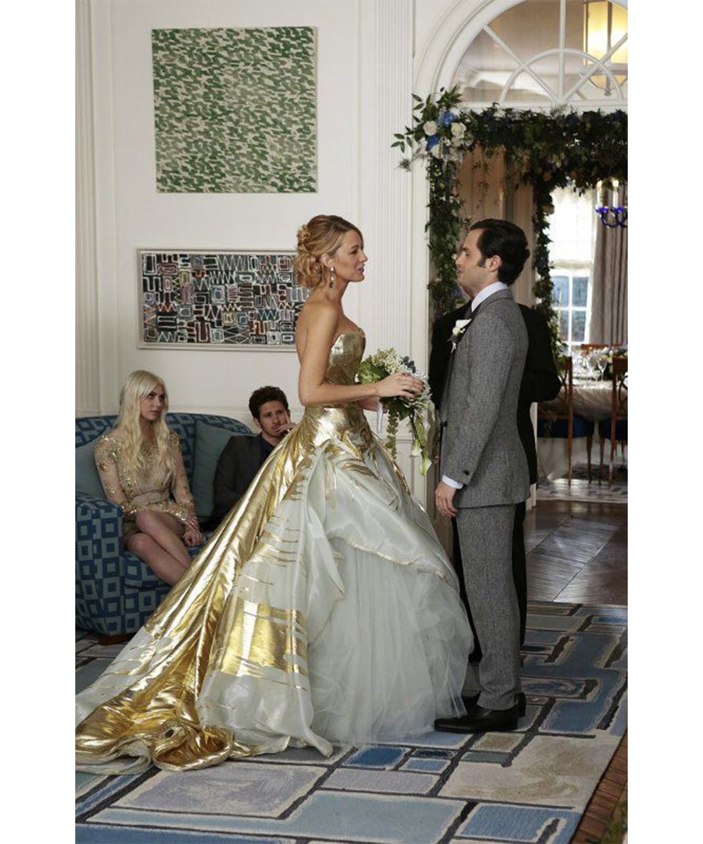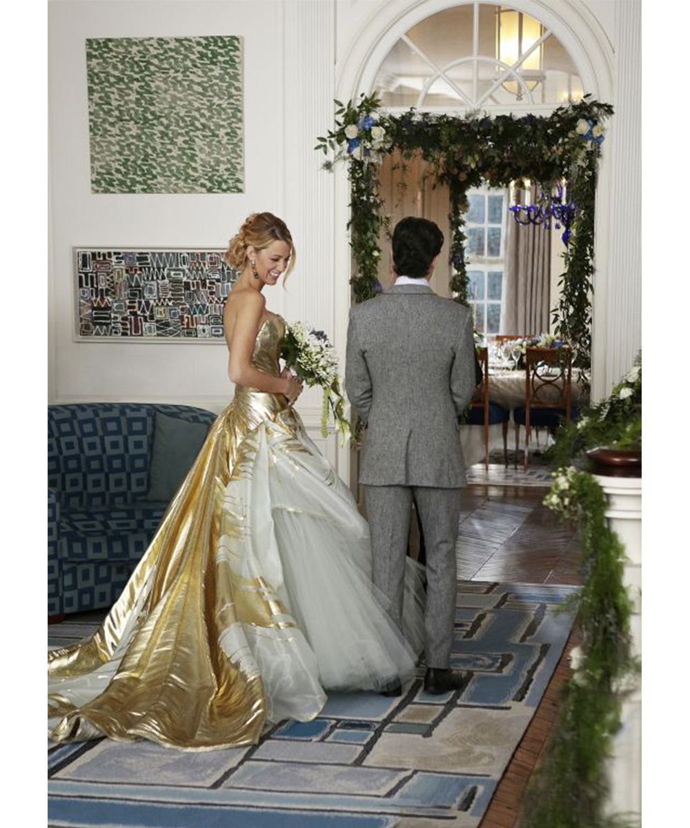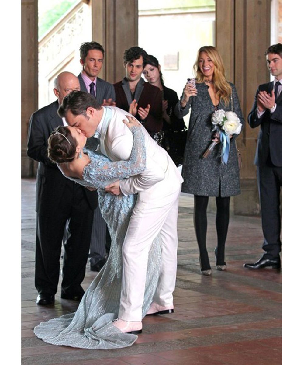 E come fossimo a bordo del Love Bus il nostro itinerario tra i matrimoni più belli di sempre, almeno in TV, fa tappa in un’altra indimenticabile teen series, che ha fatto della moda la sua protagonista: Gossip Girl. Qui complice Eric Daman, lo stylist e costumista dello show che ha riempito le 6 stagioni di abiti couture, accessori, e colpi di stile da togliere il fiato. E per i matrimoni non è stato da meno. Delle reginette dell’Upper East Side, l’inimitabile Blair Waldorf nella serie si sposa due volte, scegliendo per il royal wedding con Louis Grimaldi un abito Vera Wang in pizzo senza spalline, stretto in vita da un fiocco in tulle, con scollatura a cuore e un velo lunghissimo. Mentre per il secondo, e decisamente più iconico matrimonio con il suo grande amore, Chuck Bass, Queen Blair indossa un abito in pizzo firmato Elie Saab color azzurro cielo con maniche lunghe semitrasparenti, fiori ricamati su tutta la lunghezza e piccoli cristalli. Da lasciare senza fiato. Ma non è da meno la sua partner in crime, la it-girl per antonomasia Serena Van Der Woodsen, che per le nozze con Dan nel gran finale veste un abito senza spalline in oro metallizzato e tulle bianco dello stilista Georges Chakra. Insomma, decisamente della serie go big or go home… impossibile non menzionarli tutti.