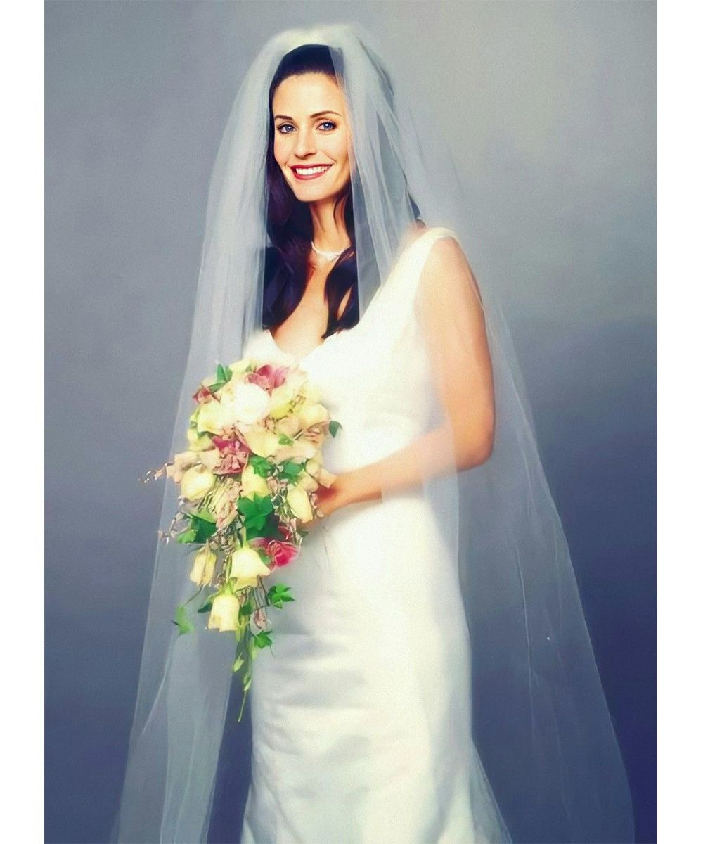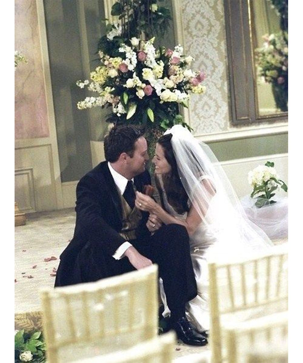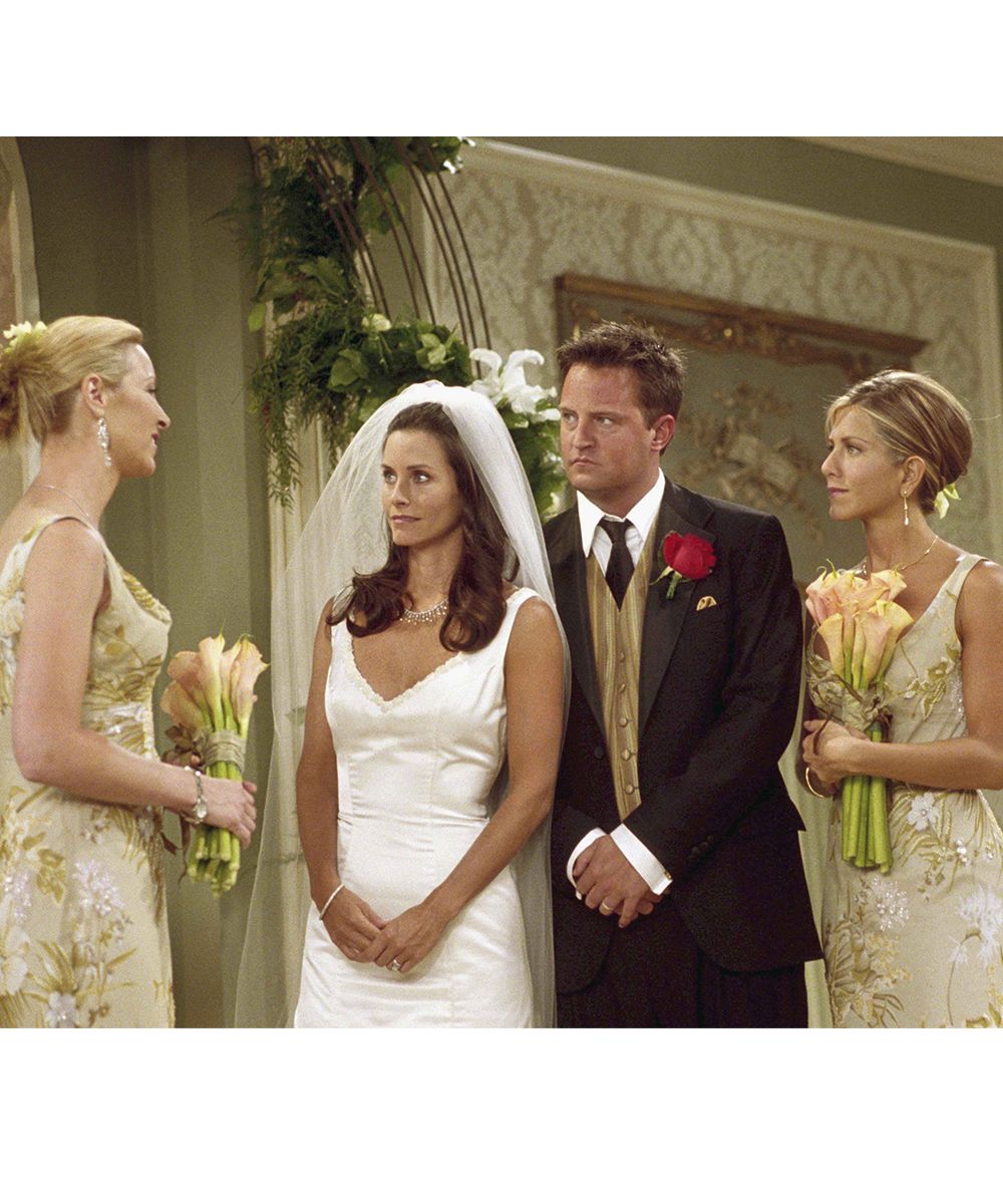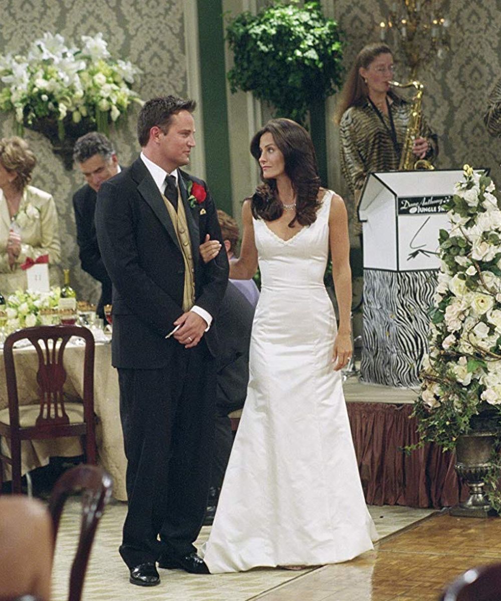 Friends è probabilmente la sitcom americana più amata di sempre, e lo dimostra la recente Reunion che ha incollato allo schermo milioni di spettatori dopo 15 anni dall’ultimo episodio. E se ad appassionarci sono state senza dubbio le rocambolesche vicende d’amore tra Ross Geller e Rachel Green (David Schwimmer e Jennifer Aniston), a guadagnarsi un posto nella classifica è l’iconico wedding di Monica (Courteney Cox) e Chandler (Matthew Perry), i due amici storici che si sono sposati alla fine della settima stagione, tra stupore e lacrimucce di moltissimi. Per l’occasione, l’esuberante chef del gruppo ha indossato un abito con scollo a V e A-gown, ornato di un lungo velo in tulle. Quando si dice less is more.