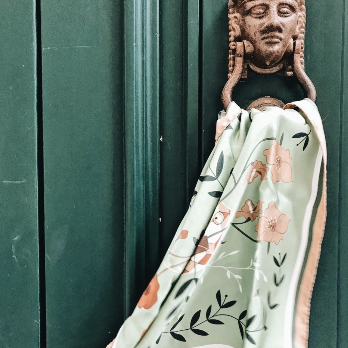 I foulard vengono stampati in Italia mediante un processo sostenibile (stampa digitale), sono in 100% seta e raccontano la storia di chi li indossa attraverso quella di chi la pensati.