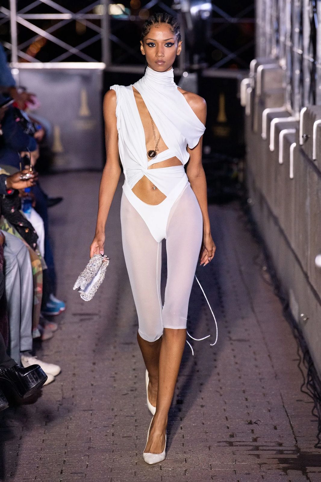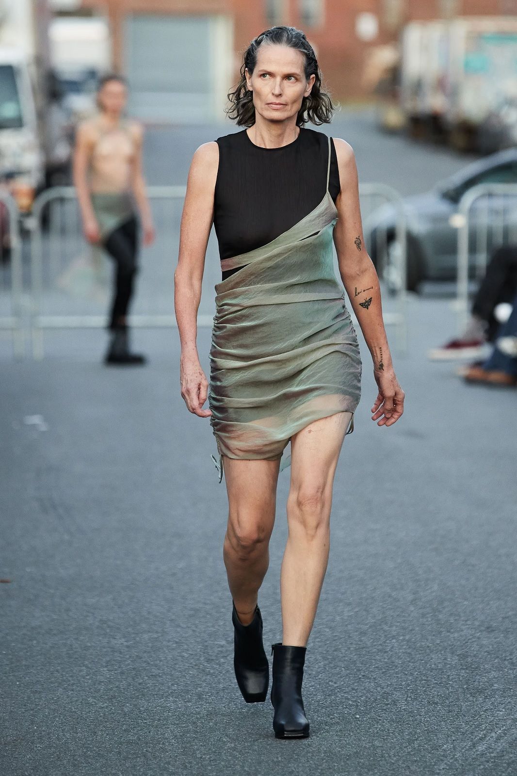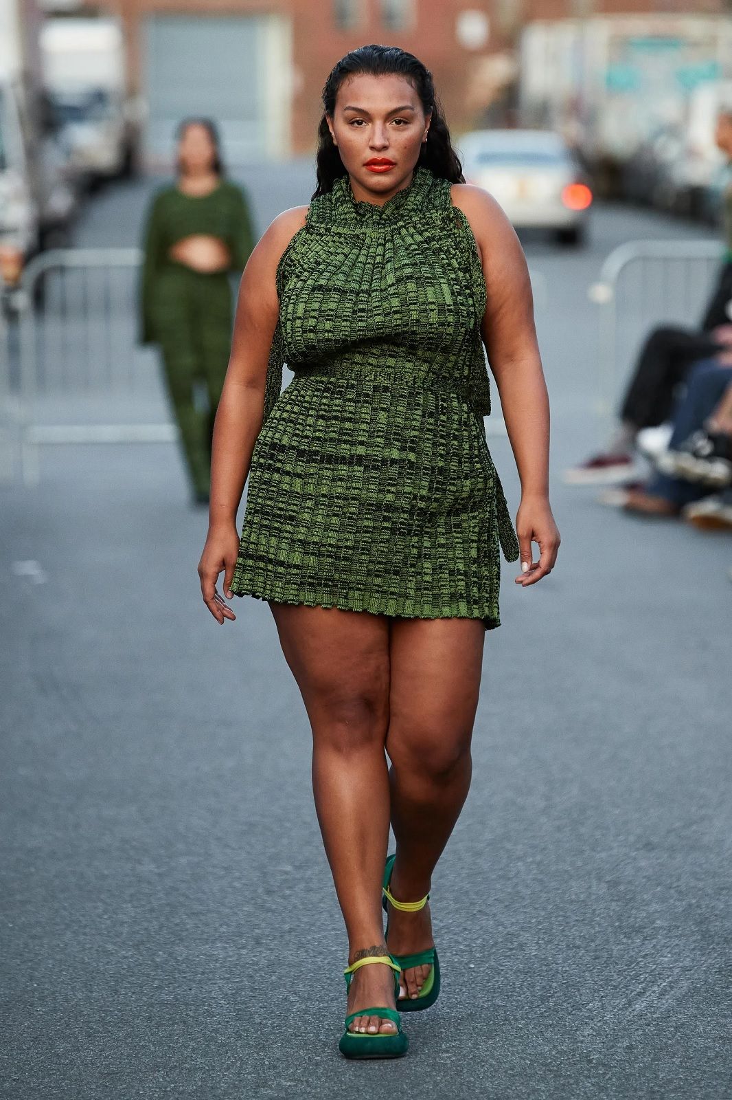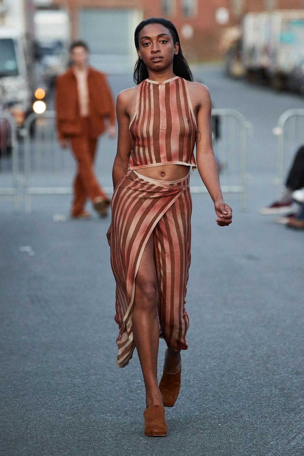 Arrivato al suo decimo anno di attività, il brand continua ad evolvere i propri codici senza dimenticare vestibilità e versatilità, risultando così estremamente contemporaneo. Il duo di designer torna a Bushwick davanti a Rosalía, Troye Sivan e un piccolo gruppo di altri spettatori con una serie di capi che è un inno alla libertà, ad una sensualità positiva, fatto di elementi contrastanti con cui giocare a seconda del proprio mood. Le camicie e gli abiti trasparenti si alternano ai twinset di lana, i completi in maglia tenuti insiemi da file di bottoni automatici ai micro top e ai pantaloni in pelle, le pesanti maglie in lana colorata ai mini dress e agli capi pieni di cut-out. La palette? A fianco al classico black & white, esplodono l’arancione, il viola, il verde. Una scelta di nuances energiche che amplificano l’ispirazione ottimista e sexy della collezione.