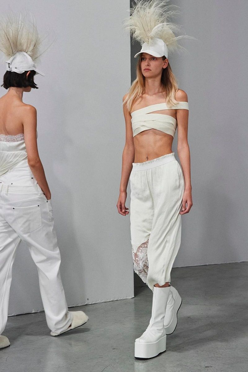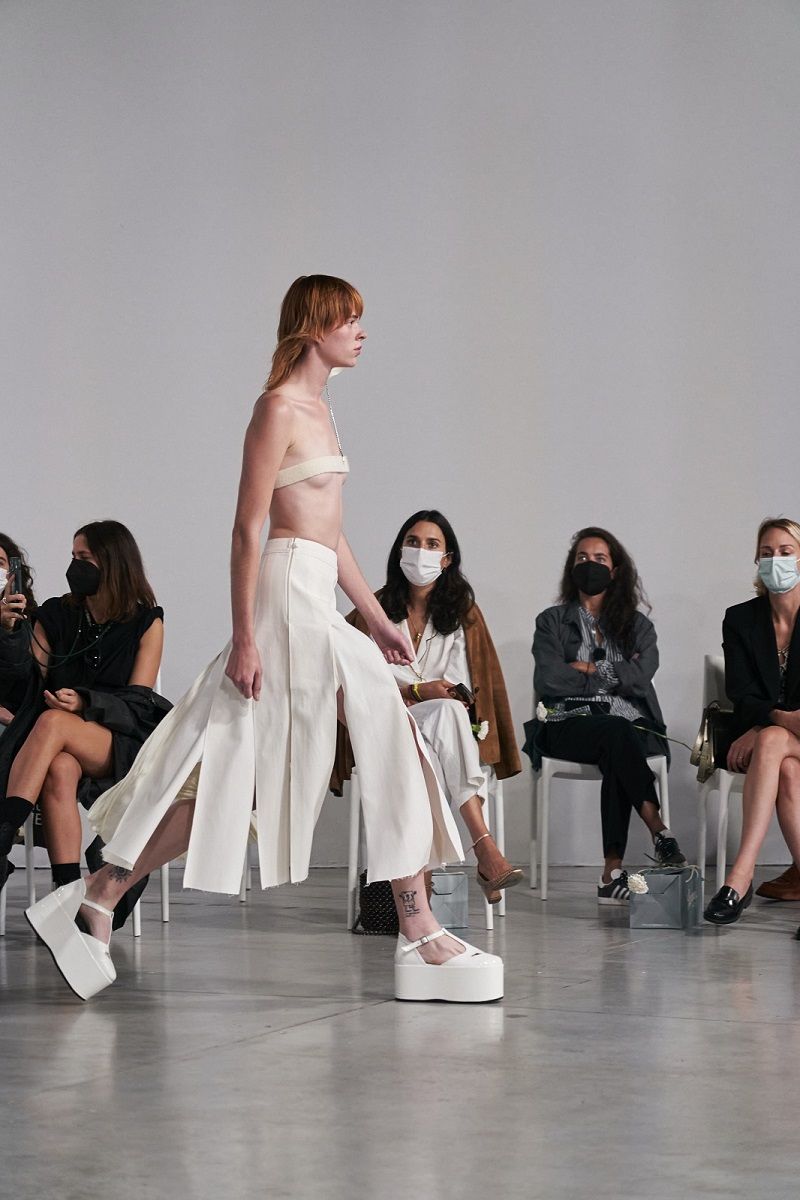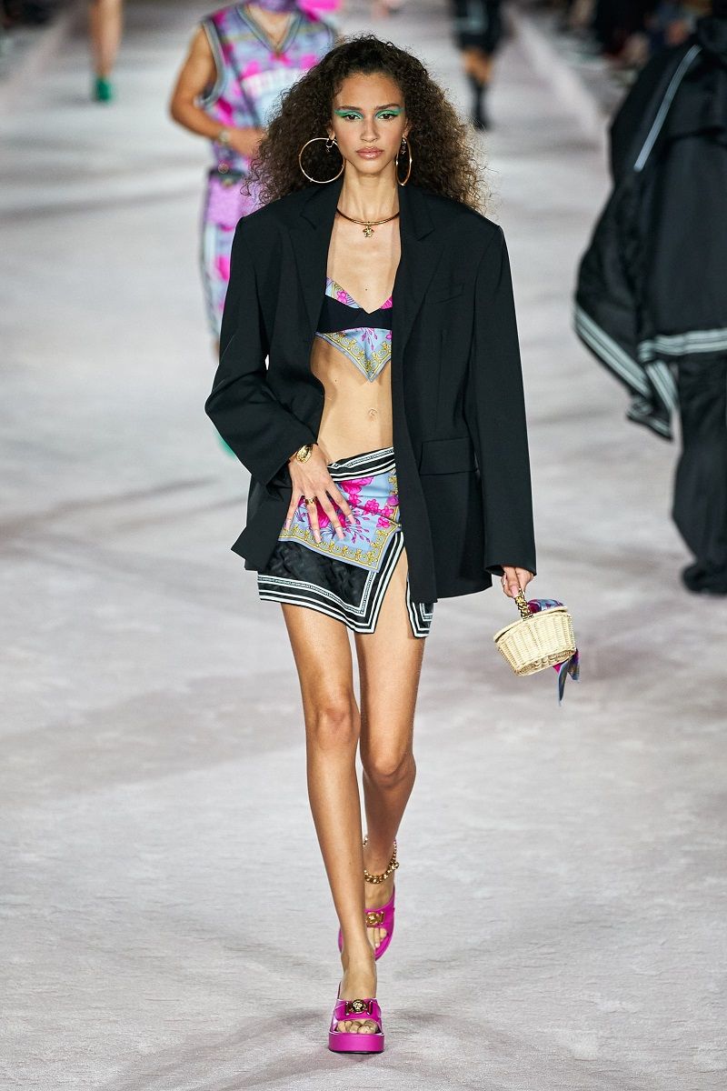 Il reggiseno sarà il vero protagonista della SS22: a triangolo, come quello di un normale bikini, a bralette, in pizzo, in pelle, colorato o total black, indossato con i pantaloni a vita alta o la minigonna, sotto un maxi blazer o un perfecto. Il modello più cool è il bandeau o top a fascia, una semplice striscia di stoffa che nei casi più estremi copre poco più dei capezzoli come nelle sfilate di A.C.9, Missoni o N°21.