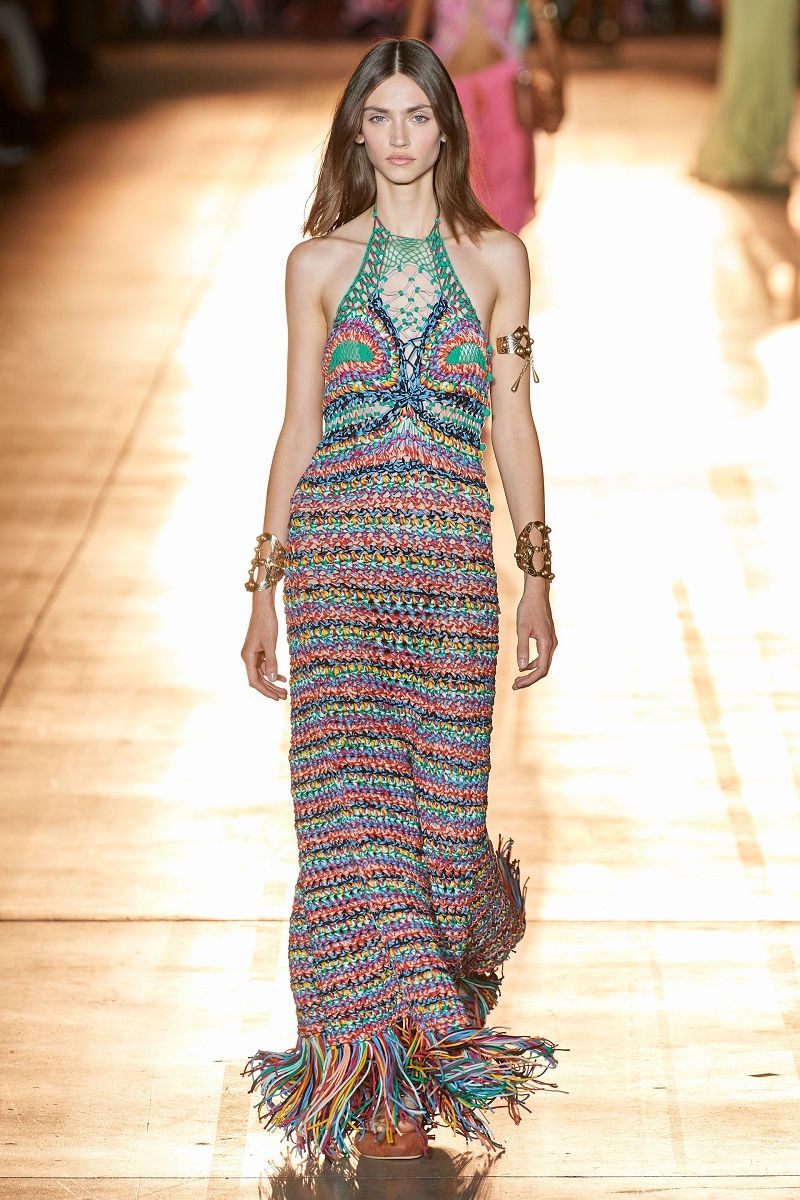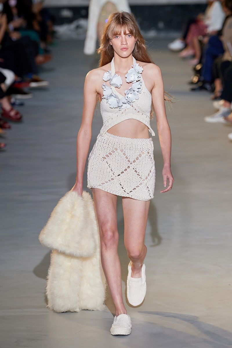 Nelle stagioni fredde knitwear, in quelle calde crochet. Dagli ultra chic abiti in rete di Alberta Ferretti ai patchwork multicolor di Marco Rambaldi, dai long dress di Etro ai pullover di N°21, fino ai pattern zig zag di Jil Sander le passerelle della MFW SS22 ci fanno rimpiangere di non aver ascoltato i suggerimenti della nonna e imparato a lavorare all’uncinetto. Ora abbiamo solo due soluzioni: scegliere uno di questi brand e riempire la nostra shopping list di bikini e minigonne o affinare le nostre tecniche DIY seguendo uno dei tanti tutor online, come questo video in cui @cheaplobster ci insegna a creare una plastic crochet bag.