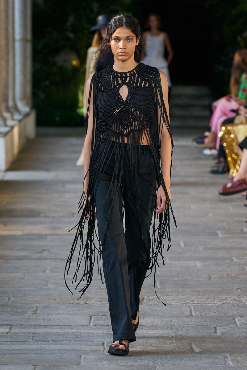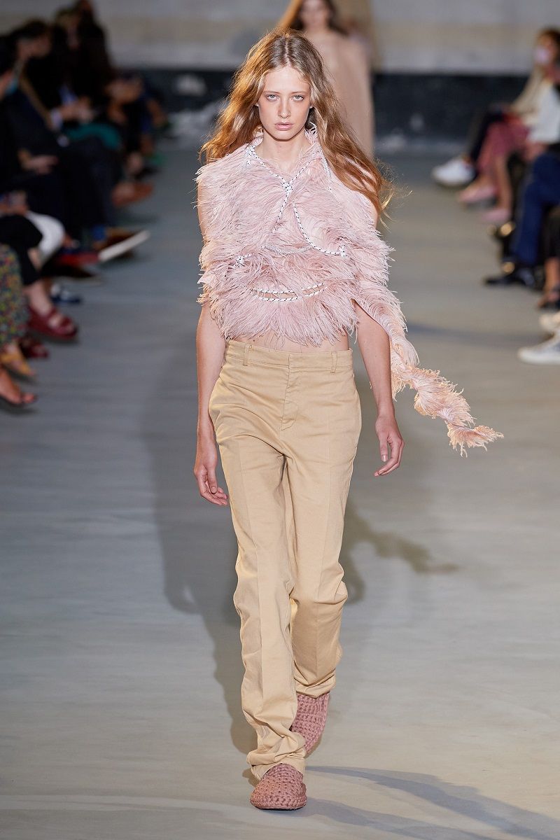 Da quando Prada le ha riportate in auge qualche stagione fa, le frange sono diventate un dettaglio irrinunciabile per tutti i maggiori brand che farà parte del nostro guardaroba anche la prossima primavera-estate. Dolce & Gabbana le usa per ricreare uno scintillante look anni 2000 di JLo e Philosophy by Lorenzo Serafini per dare un twist materico ad abiti e cappotti, mentre Emporio Armani le inserisce in una serie di outfit colorblocking. Sulla passerella di N°21 le frange vengono alternate alle piume, che eteree, leggere e fluttuanti, si muovono ad ogni passo delle modelle facendoci desiderare di indossare top e minigonne flamboyant dalla mattina alla sera.