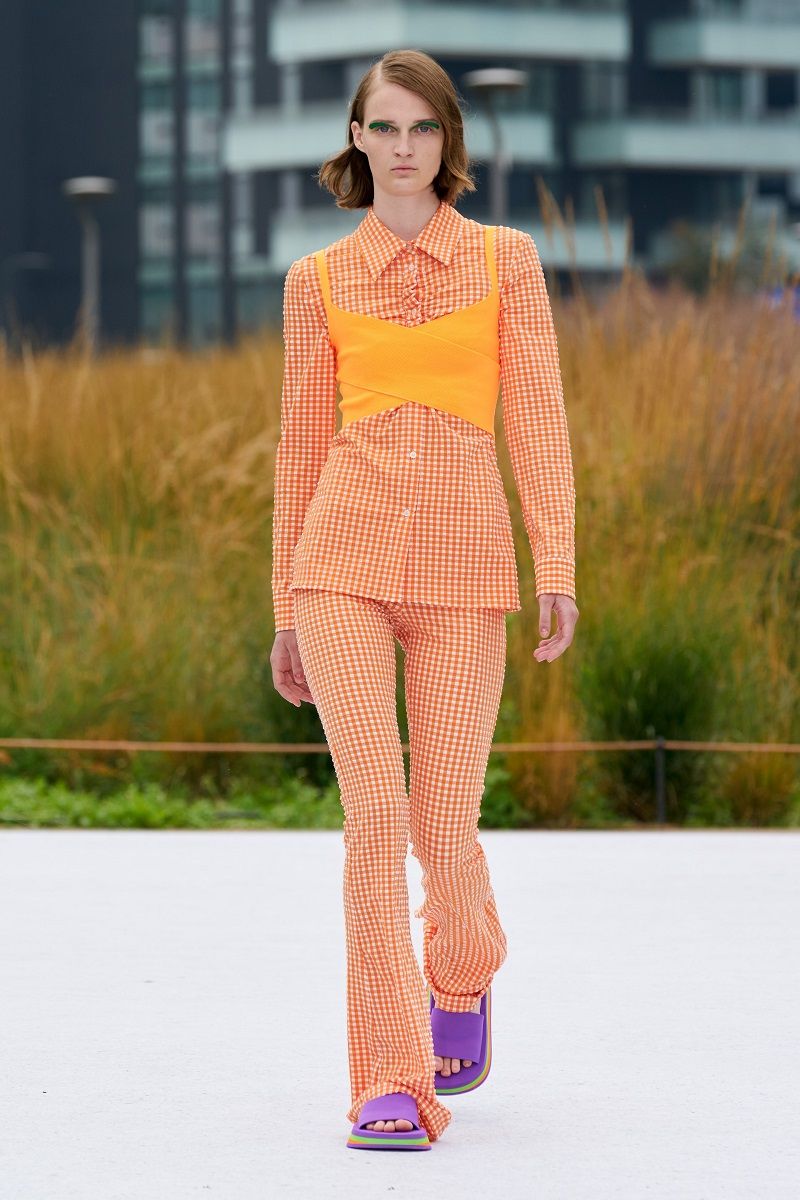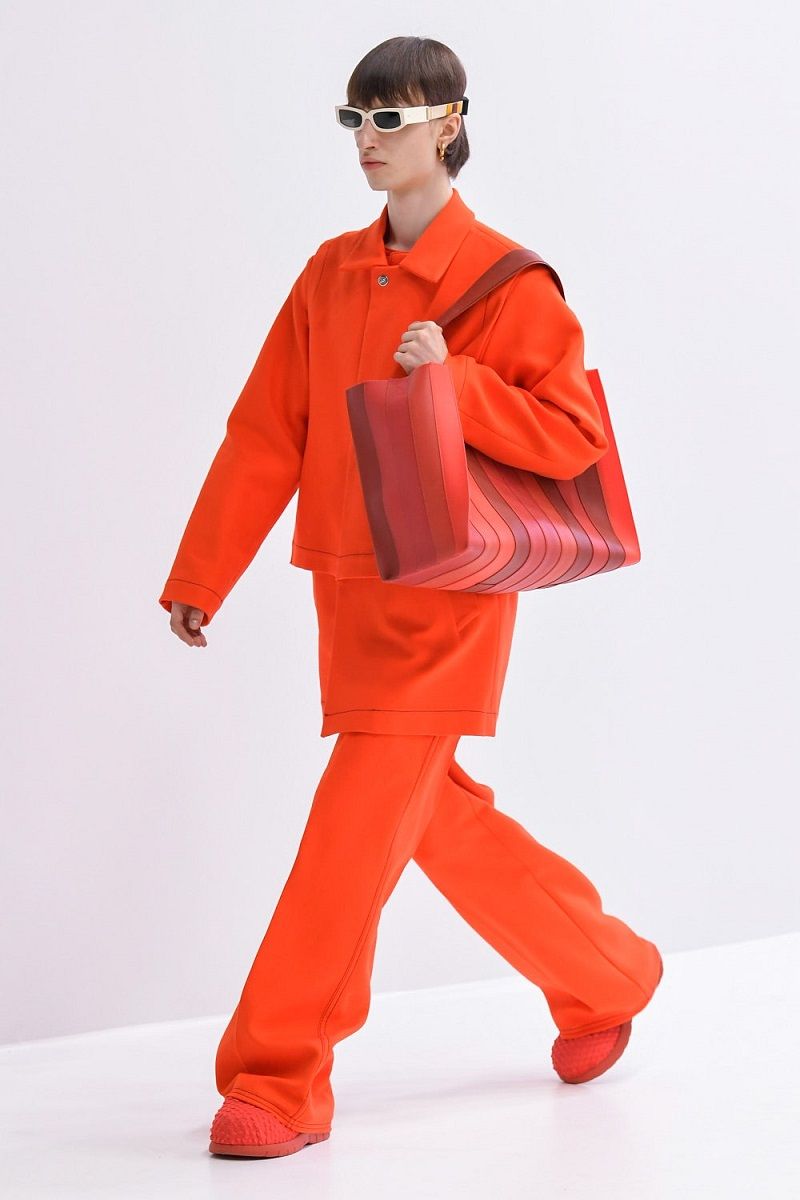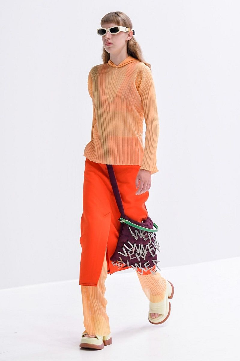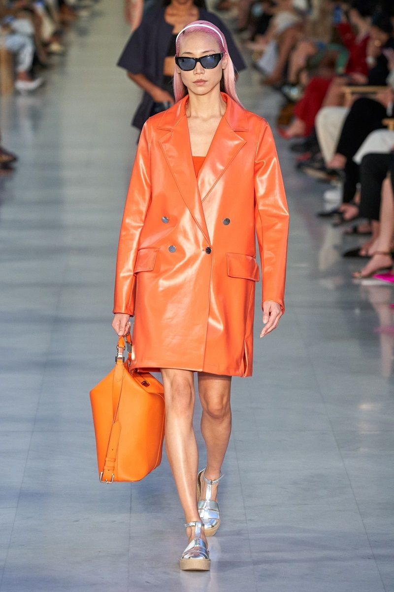 L’arancione simboleggia la comprensione, la saggezza, l’equilibrio e l’ambizione. Forse per questo la maggior parte dei brand, da Boss x Russell Athletic a Max Mara, da MSGM a Sunnei, ha scelto questo colore vitaminico, allegro, positivo per le proprie nuove creazioni. Se l’arancione non fa per voi, nemmeno a piccole dosi, mixato con nero o bianco, potete indossare viola, giallo (meglio se pallido) o fucsia, le altre sfumature della SS22. Parola d’ordine: dopamine dressing.