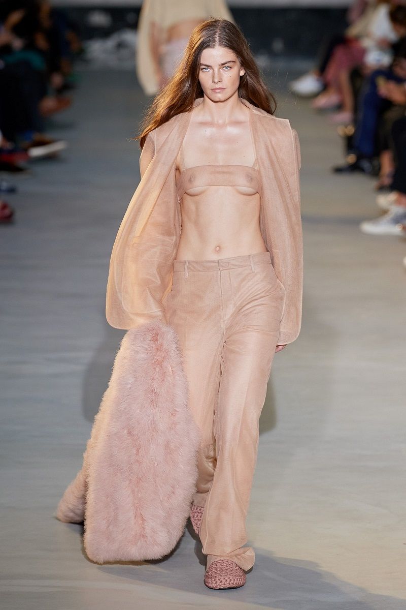 Sulle passerelle SS22 l’underwear esibito è protagonista assoluto, ma c’è chi va oltre optando per tessuti velati, pizzi e sete che sottolineano la silhouette, svelando il corpo nudo. Indossare questo trend significa non solo avere molta self-confidence, ma anche fare un piccolo gesto di empowerment celebrando in modo gioioso la propria sessualità e sensualità. I mood tra cui scegliere? Raffinato come da Sportmax e N°21 o giocoso e girlie come da Blumarine.