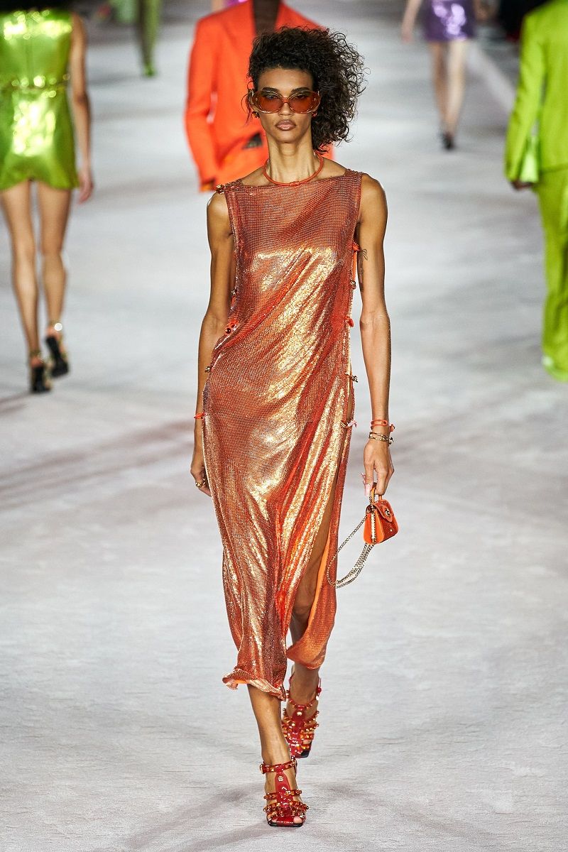 Si è appena conclusa la Milano Fashion Week, offrendoci uno sguardo su quello che indosseremo nella primavera-estate 2022. Mentre continueremo a seguire tanti dei trend della FW21 come ad esempio le frange o le scarpe platform, ci sono moltissimi altri capi che aspettano di avere un posto in prima fila nei nostri armadi. Da Versace e la sua passerella piena di star a Prada con il suo doppio show in diretta sia da Milano sia da Shangai, le collezioni tra cui scegliere sono tante e diverse, ma nascondono alcune caratteristiche comuni che ci aiuteranno a comporre l’outfit perfetto per essere cool anche nei prossimi mesi. Qualche indizio? Puntate su arancione, minigonne e bandeau.