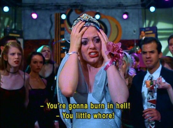 Rose Mcgowan interpreta la classica school-girl perfida che arriva persino a rapire e uccidere (accidentalmente) una sua "nemica" in amore, indossando outfit che rappresentano il picco della moda monocromatica Y2K. Anche se forse il film è abbastanza leggero, i personaggi indossano completi colorati e iconici, incarnando uno stile blockbuster perfetto per ogni aspirante E-girl, con mollettine, minigonne, calze colorate a fantasia, acconciature particolari e lucidalabbra a gogo.