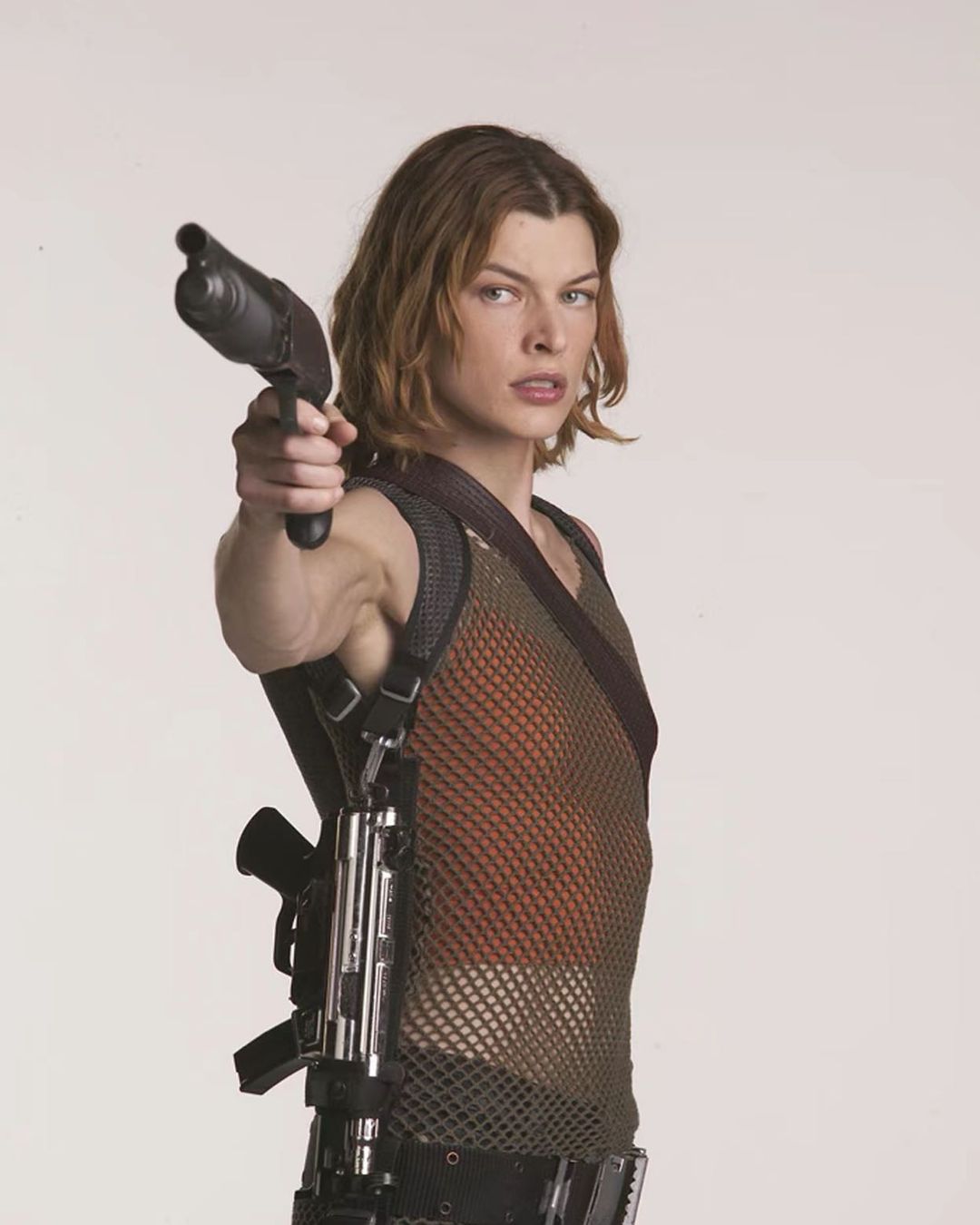 La bellezza androgina di Milla Jokovich contribuisce a rendere iconico il personaggio del film d'azione a sfondo horror che spacca l'orologio di inizio millennio. Tute aderenti con giubbotto antiproiettile cingono la vita le allungano il busto, combat boots e polsini neri migliorano l'impostazione da battaglia con cui l'eroina combatte il mondo apocalittico. Il momento fashion più importante della saga diretta da Paul W.S Anderson è quello del capitolo finale, in cui Milla indossa un abito rosso a spalline fini con spacco profondo, un paio di combat boots abbinati ad un mitra. Così anni '90 da perdere la testa.