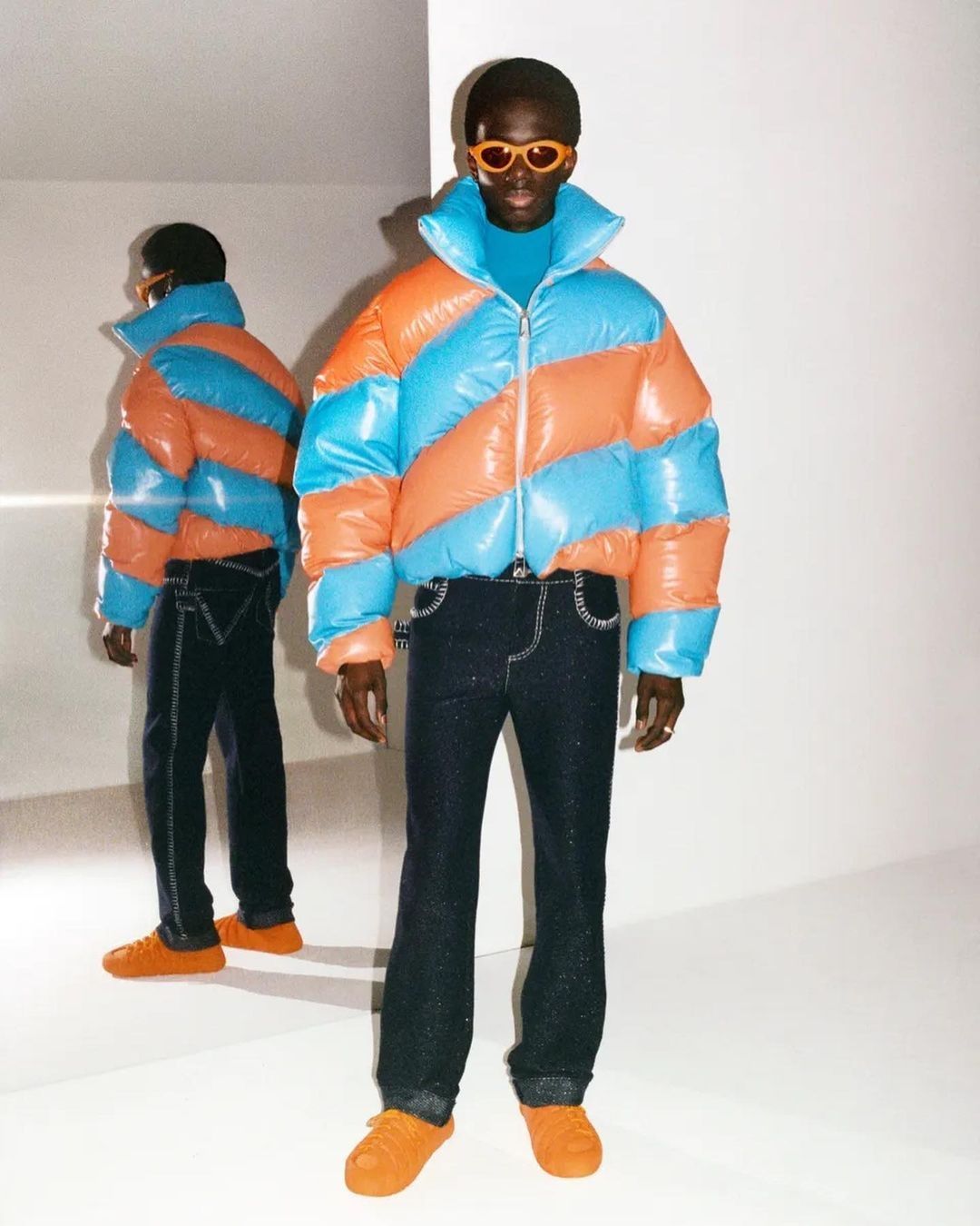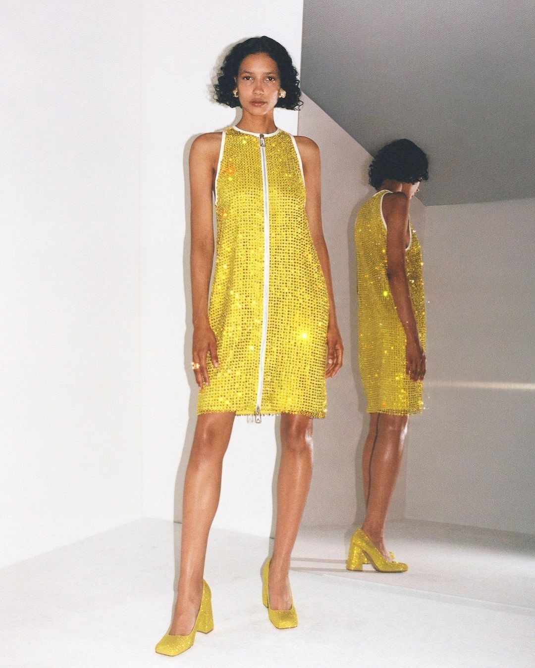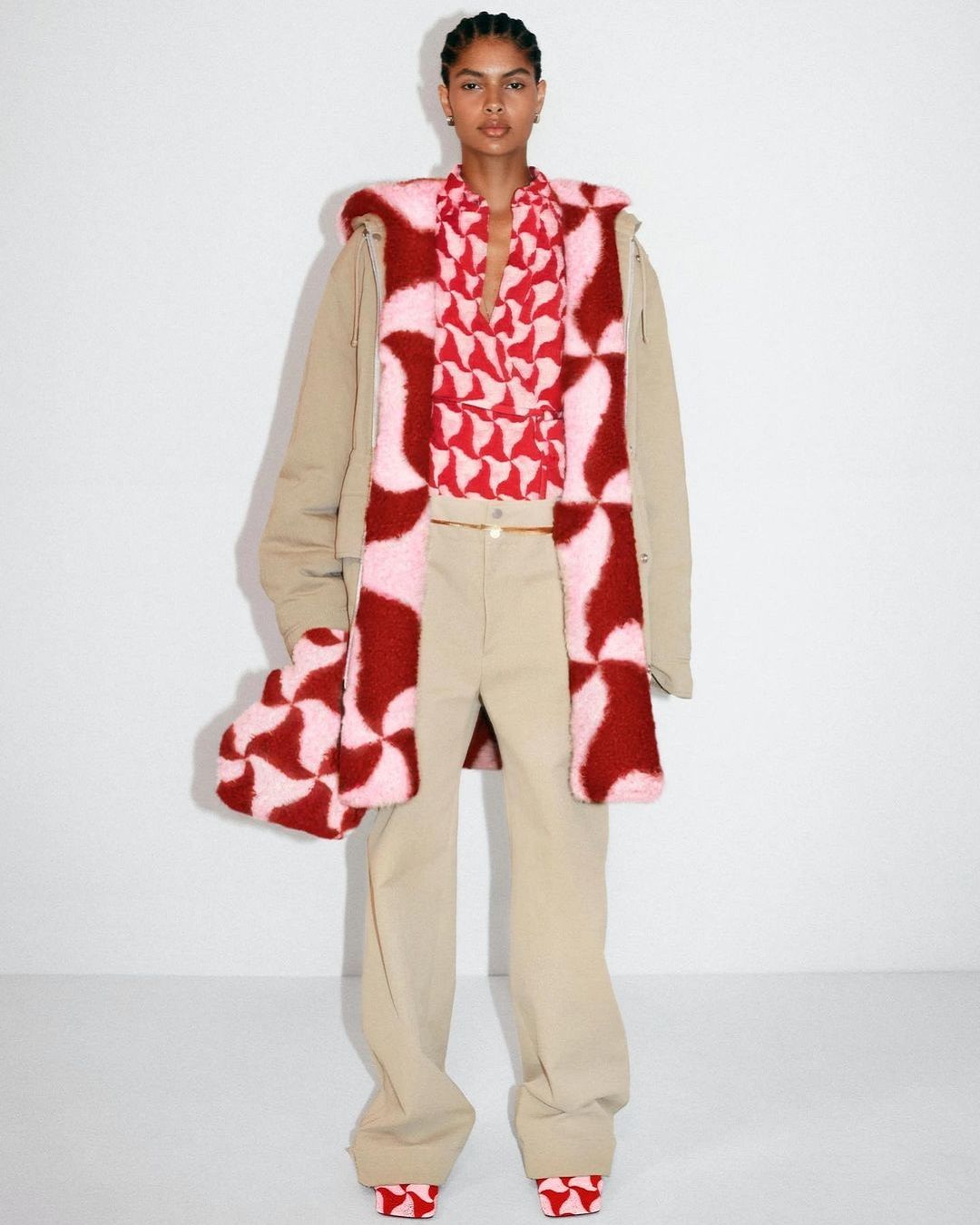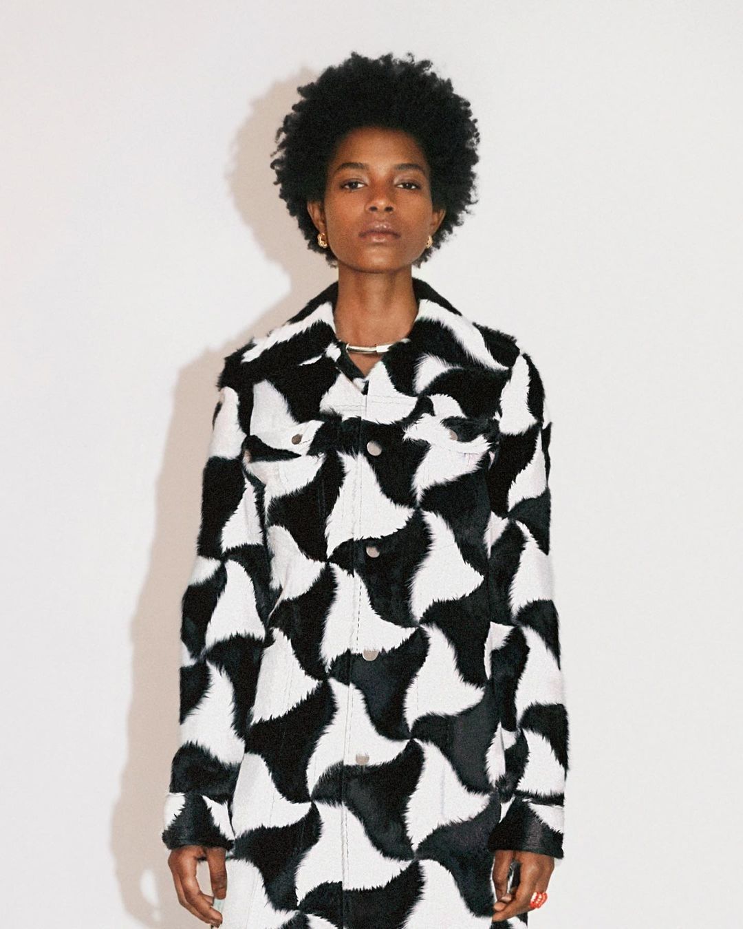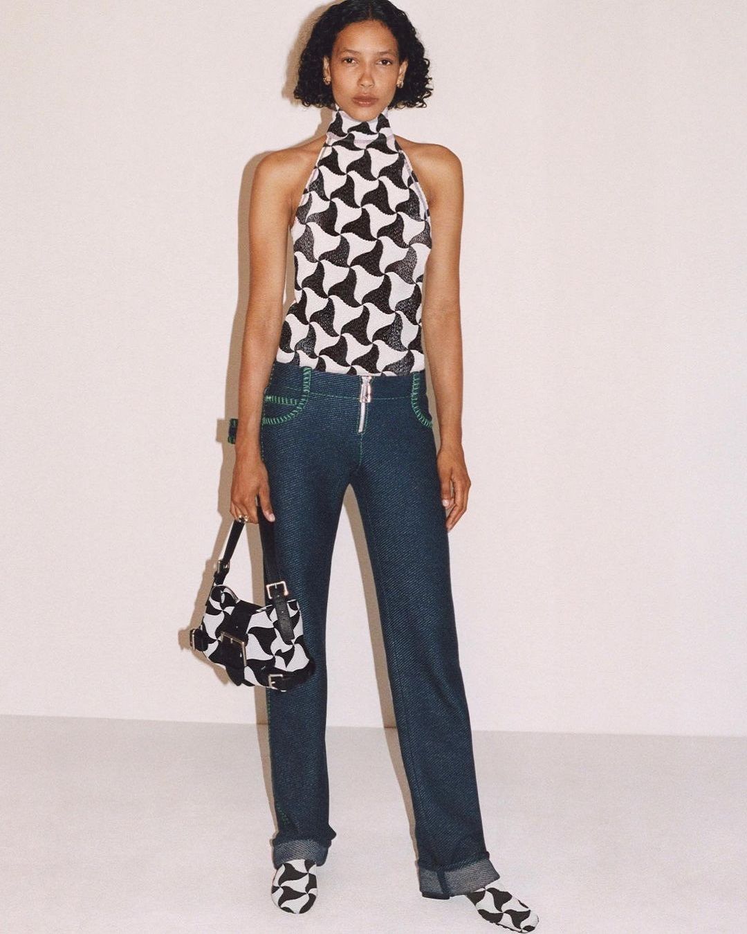 C’è una sorta di ottimismo edonista nei tanti look di Wardrobe 03. Si può leggere nei colori che vanno dal classico B&W che si accende poi di giallo, verde, arancione, rosso, rosa e azzurro; ma anche nei tessuti che comprendono denim, velluto a coste, tweed, shearling, ciniglia, cotta di maglia specchiata e pelle dal finish glossy. Il lusso è nei dettagli e nei ruggenti anni '20 versione 2.0 che reclamano un ritorno alla moda degno di tale nome. Le lavorazioni intricate caratteristiche del marchio non trasformano la pelle ma questa volta i cristalli in minidress e it-bag. Nelle cuciture verde acido che spiccano sui jeans, nei patter caledoscopici che regalano un twist funny ai cappotti in shearling, nei colori fluo che svecchiano il velluto a coste è chiaramente presente la firma del designer inglese che ha portato Bottega Veneta alla sua posizione odierna come brand iper-desiderato nel mercato del lusso.