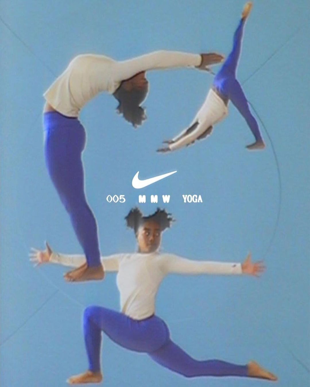 Nonostante non siano ancora stati svelati dettagli sui capi, dalle immagini un po’ vintage possiamo prevedere che la capsule, chiamata 005 MMW YOGA, includerà top Dri-Fit, leggings, calze, fasce per capelli e tappetini, tutti caratterizzati dallo Swoosh e dal logo MMW. Tra gli highlights si distinguono i pantaloncini e leggings con la famosa cintura Cobra di Williams a cui è agganciato un piccolo asciugamano perfetto per asciugare il sudore dopo una session di yoga. Cool anche la giacca con collo alto, polsini regolabili, cerniera a due vie e un cappuccio rimovibile in tre pezzi che offre possibilità di aggiungere o rimuovere livelli di protezione in base alle condizioni meteorologiche e alle preferenze di stile.