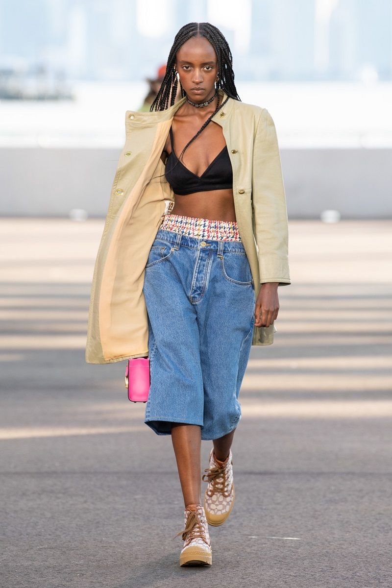 Chiamatelo pure effetto nostalgia, ma la verità è che, pur denigrandoli in pubblico, sono in molte le girls che non hanno mai smesso di indossarli. C’è qualcosa nei pantaloni a vita bassa, e in particolare nei jeans, che ci fa sentire sexy e cool come le modelle nella prima collezione di Alexander McQueen dopo la laurea alla Central Saint Martins, le TLC nei videoclip anni ’90 o Keira Knightley e Paris Hilton sul red carpet dei primi anni 2000. E non è un caso che Bella Hadid e Emrata li sfoggino ad ogni occasione o che schiere di millennials su Tik Tok (gli hashtags #lowrisejeans e #lowrisepants hanno raggiunto rispettivamente oltre 88.2M e 3.6M di visualizzazioni) ne esaltino le virtù. La novità del trend attuale è che questo capo controverso non è più per forza sinonimo di grassofobia o di uno standard di bellezza di magro, giovane e bianco, parla anche di fiera rivendicazione del diritto di riappropriazione del corpo femminile e di inclusione. Nonostante la vita bassa, le forme si ammorbidiscono e fino a diventare oversized, adattandosi meglio a forme e taglie diverse. Da Missoni a Vaquera, da Molly Goddard a Coach, le passerelle sono invase da modelli che si appoggiano leggermente sui fianchi. La scelta se indossarli con micro top come vogliono i maggiori brand e la moda 2YK o magari con una maglia più lunga che renda avere dei perfetti six packs non indispensabile è solo nostra.