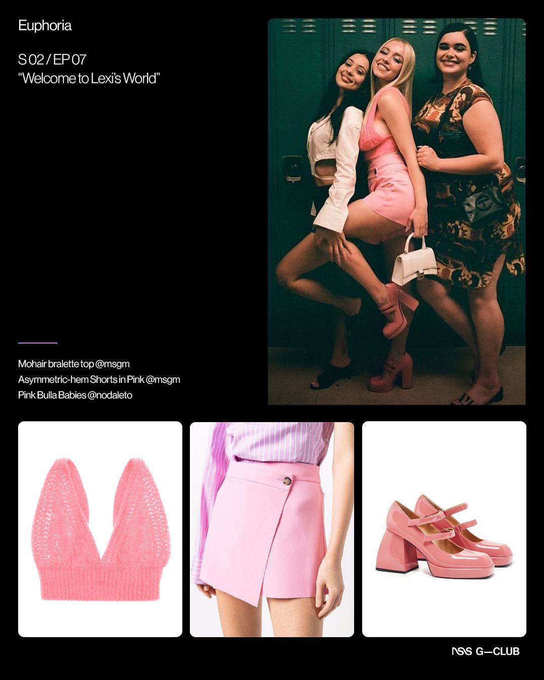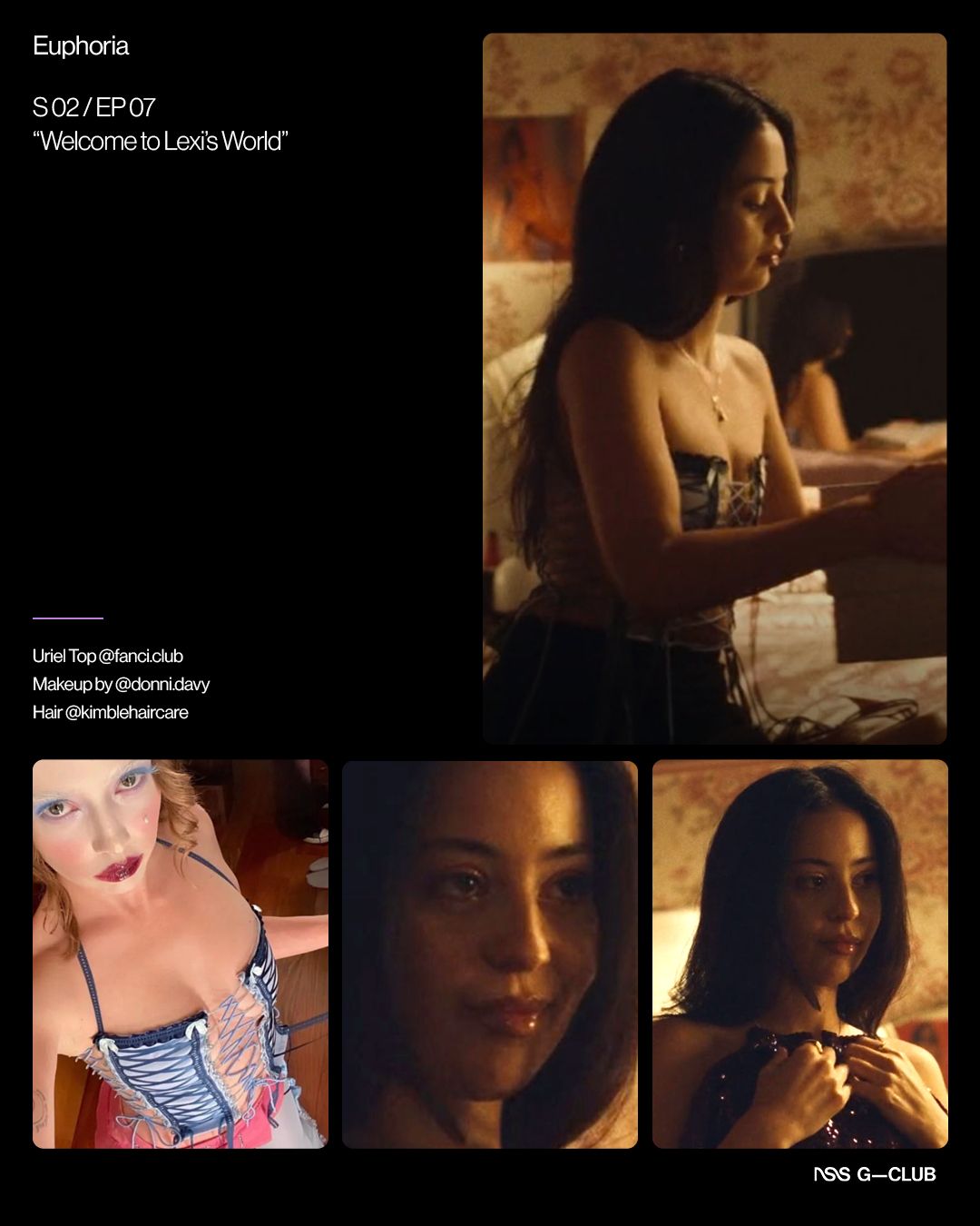 L'impatto della moda in Euphoria è ormai noto, ma per questo episodio Heidi Bivens si è decisamente superata. E' come se tutti i brand più desiderati e bramati dallo scenario moda in questo momento a metà tra lo stile Y2K e l'alta moda fossero stati riuniti in un'unico episodio a rinforzare l'epicità dei momenti diretti da Sam Levinson riguardo allo spettacolo di Lexi "Our Life". In questa sorta di episodio rottura della quarta parete gli attori siedono in platea e seguono gli sviluppi delle vicende come gli spettatori della serie stessa, e lo spotlight è sia sul palco che tra il pubblico, in cui spiccano Maddy in Jacquemus e Kat in Vivienne Westwood, Lexi in Miu Miu e Cassie in MSGM. I personaggi riflettono guardandosi da fuori e vedono evidentemente difetti e caratteristiche evidenti dei propri caratteri manifestarsi di fronte ai loro occhi, riconoscendosi, mentre i fan della serie si immedesimano ancora di più nei loro paladini tramite la connessione con i brand che seguono su Instagram e che vorrebbero nell'armadio, chi scrive compresa. Ecco quindi un round up di tutti i brand indossati in questa penultima puntata di Euphoria.