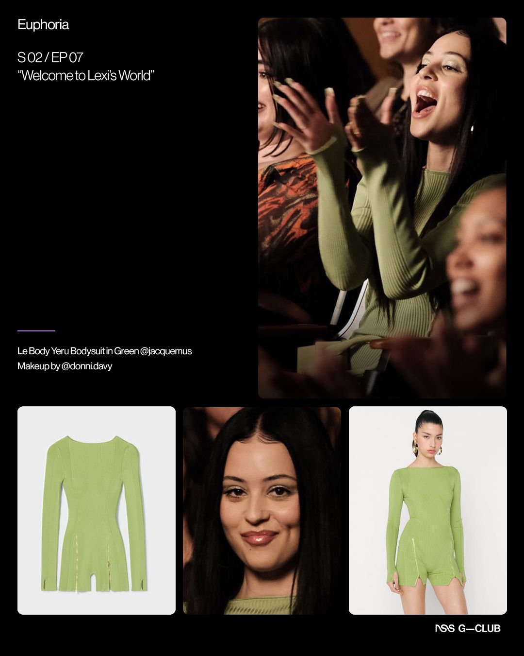 Non c'è personaggio più seguito di Maddy in fatto di look, e anche in questa puntata Alexa Demie non delude, anzi, viene addirittura acclamata da Simon Porta Jacquemus in persona per aver indossato Le body Yerù e Le Chemise cut-out bodysuit. Altri dettagli sono superflui.