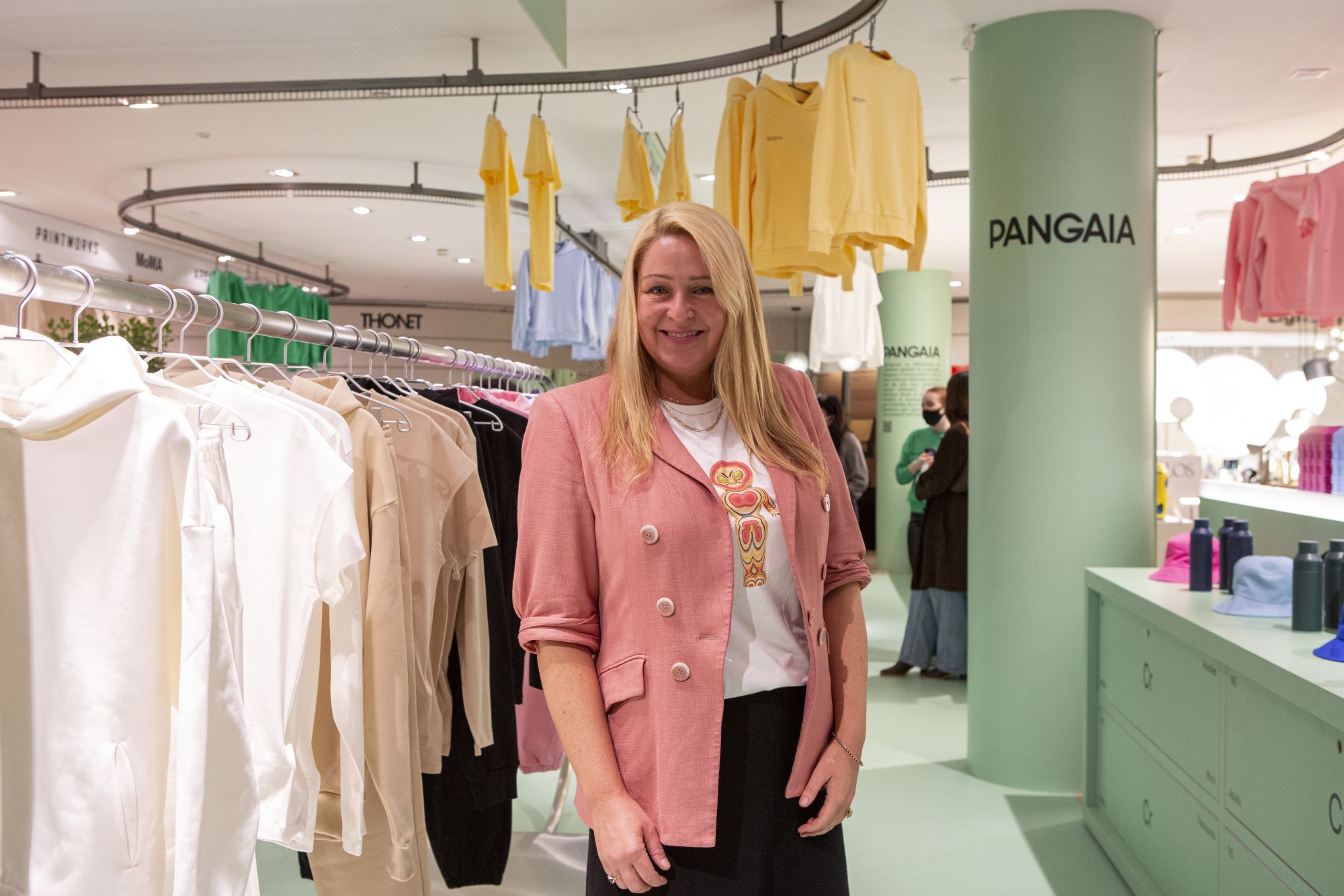 Pangaia ha iniziato a riscuotere successo durante il periodo pandemico ma è molto di più che un brand di tracksuit colorate: l'azienda racchiude un intero settore di ricerca e sviluppo, vende i suoi materiali a terzi e si pone come obiettivo quello di unire la potenza dei materiali naturali all'innovazione high-tech per aumentare la funzionalità e ridurre l'impatto ambientale. Un connubio di intenti che performa benissimo sia a livello estetico che a livello ambientale quello concretizzato dal take-over di Pangaia nelle vetrine e al piano -1 della Rinascente, di cui il CEO di Rinascente Pierluigi Cocchini si dice "fiero di essere stato scelto come primo punto di contatto nel mercato italiano da un esempio stellare in fatto di sostenibilità e innovazione". Per l'occasione ha messo a disposizione per la prima volta l'installazione dell'AIR SNAKE di e del designer italiano Aldo Cibic. A condurre le fila di questo percorso verso il futuro dei materiali innovativi nella moda è la Dott.sa Amanda Parkes, Chief Innovation Officer di Pangaia, fashion scientist con un background in computer science, tecnologia dei materiali, comunicazione scientifica e esposizione museale che ci ha raccontato presente e futuro di Pangaia, oltre al suo percorso per arrivare a modellare con le sue idee e la sua expertise il mondo della moda.