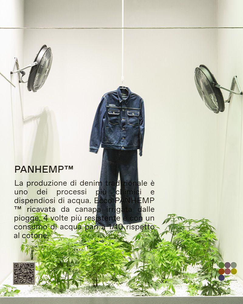 "Come azienda attenta all'impatto positivo sul pianeta e impegnata nella promozione di un modello di business orientato al minimo inquinamento, il concetto di naturalismo high-tech definisce l'impegno ad utilizzare le qualità di materiali già presenti in natura in combinazione con la tecnologia per aumentarne la funzionalità. Uno dei nostri pillar è quello di promuovere la biodiversità nella supply-chain, allontanandoci dall'uso del solo cotone organico, mixando fibre naturali come quelle della frutta per creare dei blend che offrano altre opzioni a livello di materiali. Nascono così PANHemp™, il nostro cotone organico mixato alla canapa, C-FIBER™ la nostra alternativa cotton-free creata fondendo fpolpa di eucalipto e polvere di alghe e infine FLWRDWN™, che si pone come alternativa ai materiali di origine animale e sostituisce le piume d'oca con un mix di fiori essiccati e biopolimeri naturali frutto di più di 10 anni di ricerche. Un altro nostro obiettivo è trovare soluzioni per la creazione di collagene senza l'utilizzo di materiali di origine animale, e lavorare costantemente nella ricerca di possibili sostituti per una moda responsabile ma funzionale."
