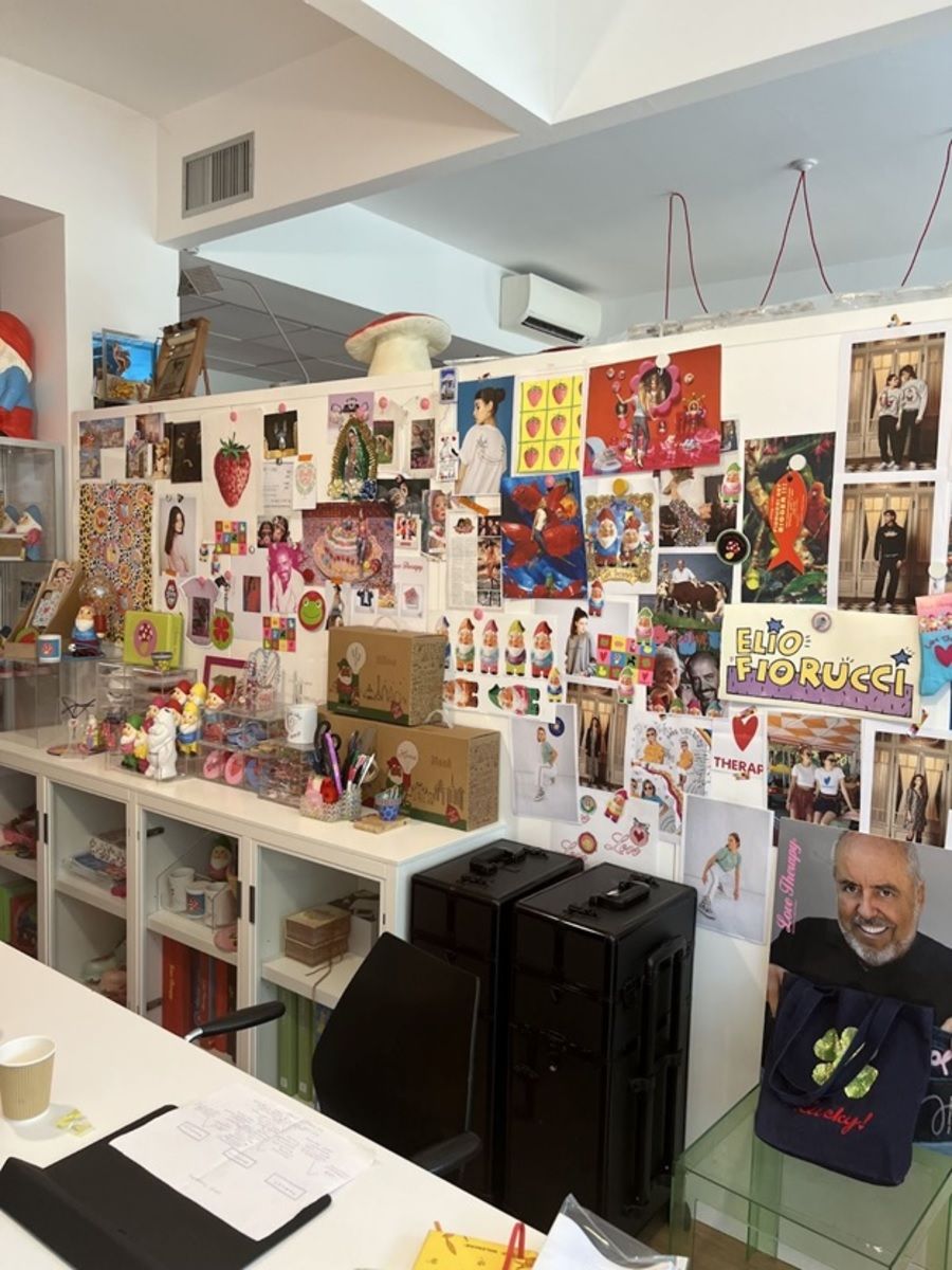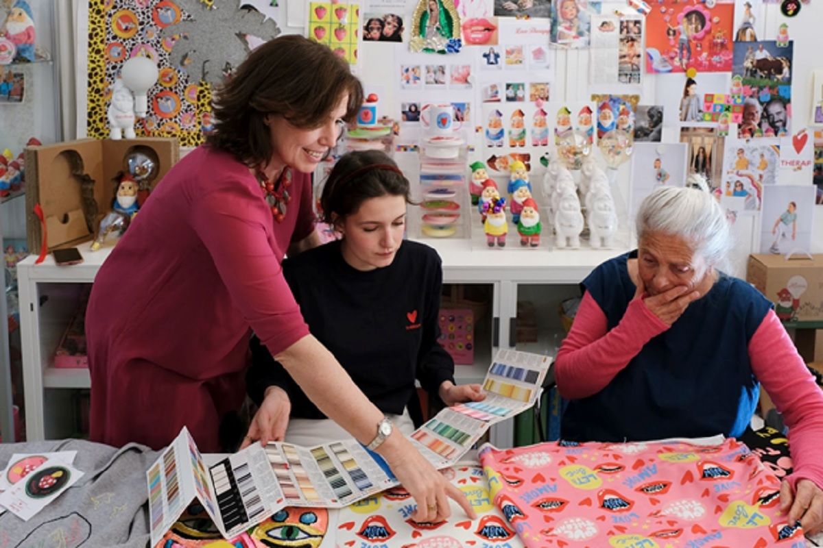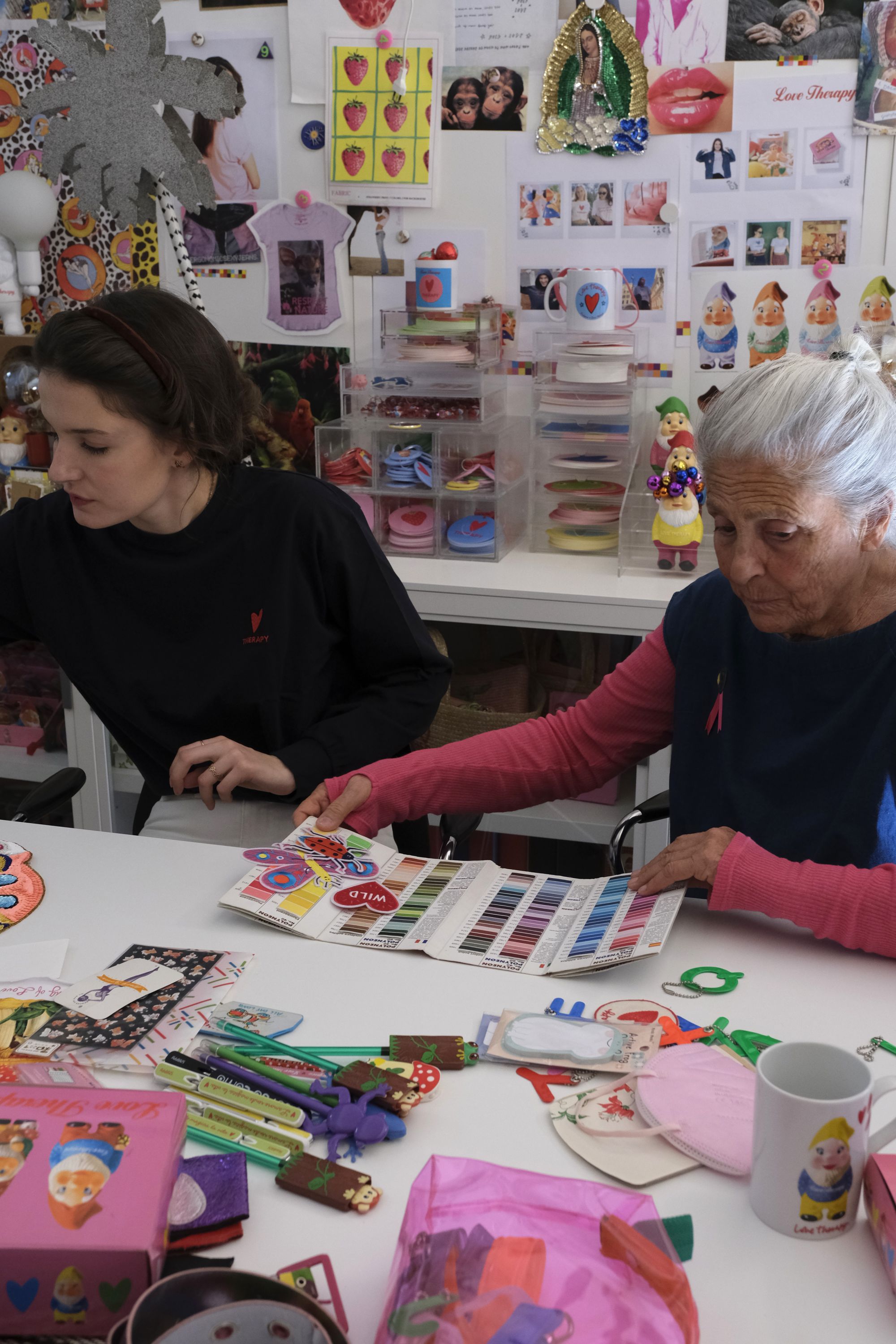 "L’amore va coltivato e sei felice solo quando coltivi l’amore," dice Floria Fiorucci al telefono in vivavoce citando le parole di Antoine de Saint-Exupéry ne Il Piccolo Principe mentre sua figlia Marina e sua nipote Martina siedono accanto a me. "Sembra una frase semplice ma in realtà al suo interno racchiude un grande pensiero che non è poi così facile da nutrire perché bisogna essere forti, altruisti e bisogna anche saper vedere e capire." Nei nuovi uffici di Love Therapy, brand fondato nel 2003 dall’imprenditore e stilista Milanese Elio Fiorucci e rilanciato nel 2017 da Floria qualche anno dopo la morte del fratello oggi si respira aria di novità tra stickers, spille e scatole in latta colorate, suppellettili da fare invidia a qualsiasi avido collezionista, stampe con fantasie pop e foto d’archivio appese ad un moodboard che raccontano l’ossessione per l’epoca Fiorucci. L’eclettismo dei negozi, l’impeccabile coerenza e cura nei minimi dettagli di packaging, branding, e grafica di vestiti, oggetti e cartoleria aveva creato un bisogno irrefrenabile di generazioni di Gen X e Millenials di appartenere a quel mondo vivace ed eccentrico caratterizzato dalla libera espressione di sé e dall’American Dream Warholiano, in versione Made in Italy.