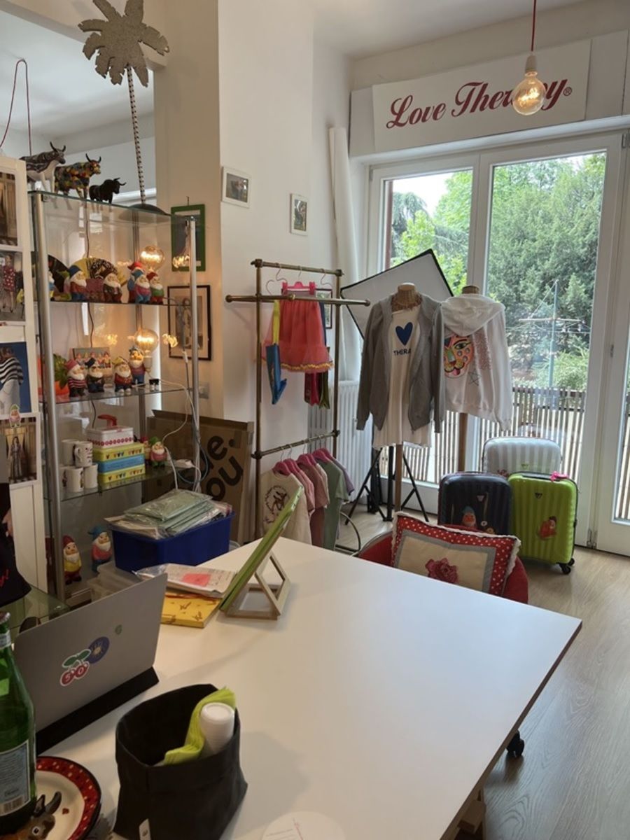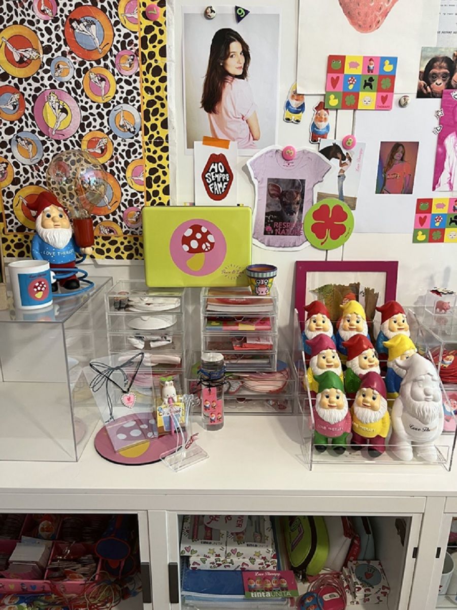 Erano i primi anni 2000 quando in seguito alla chiusura della boutique Fiorucci di Galleria Passarella in San Babila e alla precedente cessione del marchio a conduzione famigliare, Elio e Floria lanciano Love Therapy, il brand contraddistinto da un immaginario universale fatto di cuori, gnometti, frasi d’amore, e colori pop, il cui motto iconico recita ancora oggi, "L’amore rende magica la vita". Così rivela Marina, direttrice creativa e coordinatrice dell’ufficio stile di Love Therapy Kids & Homeware. "Il nome nasce dal riscontro con vari clienti che raccontano il negozio Fiorucci come un viaggio in un mondo fantastico e pieno di allegria, un’esperienza travolgente, che ti cambia, una vera e propria terapia dell’amore", aggiunge. E proprio su questo principio si basa tuttora la missione del marchio Love Therapy: quella di rendere la vita migliore attraverso capi e accessori che celebrino un messaggio di pace, amore, gentilezza e rispetto nei confronti del prossimo, della natura e degli animali— valori che, gli stessi fondatori, hanno sempre adottato come modus operandi molto prima dell’avvento dei social media e della popolarità di virtue signalling hashtags come #loveislove e #bekind. "Love Therapy nasce in contemporanea ad una trasformazione personale e rivoluzione spirituale di Elio e Floria che in quegli anni diventano vegetariani e sponsorizzano la nascita di Animal Amnesty Italia", ci tiene a menzionare Martina, brand communication e project manager per Love Therapy.