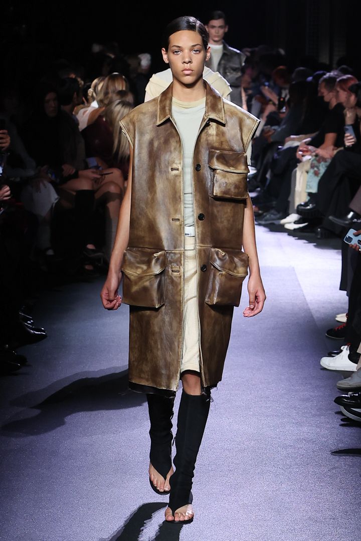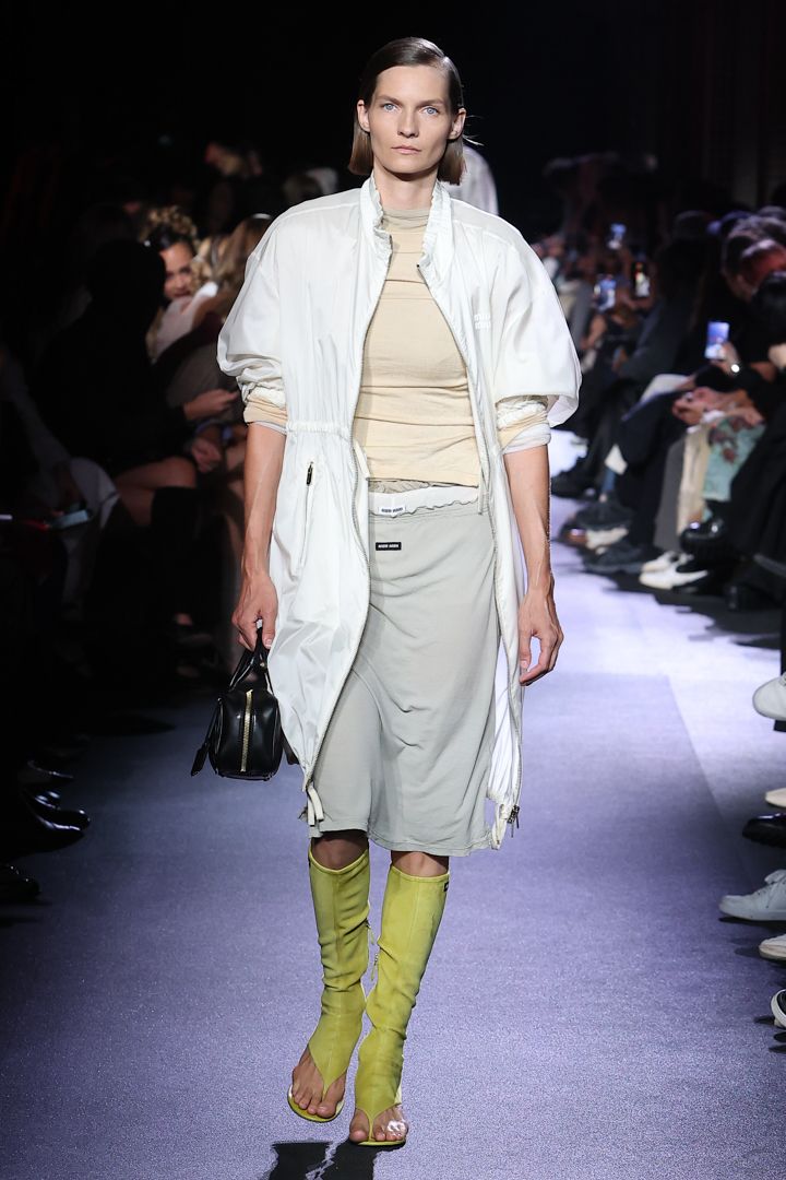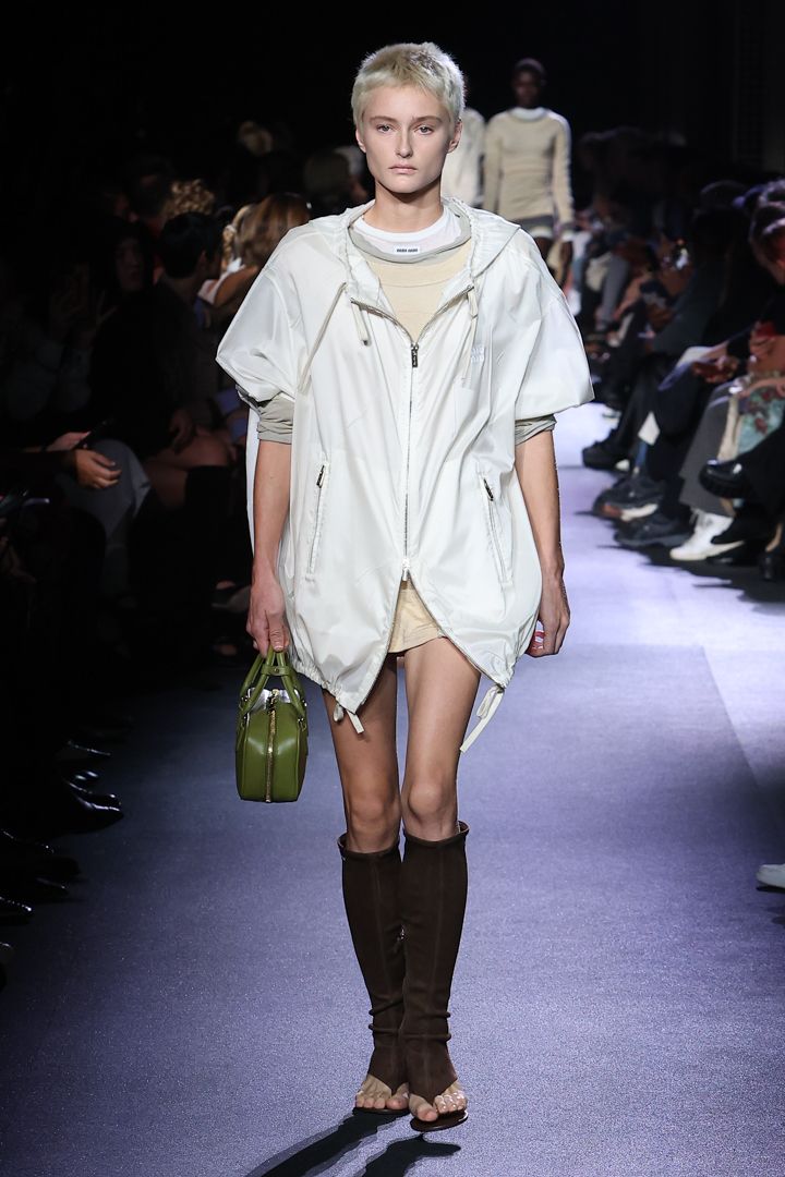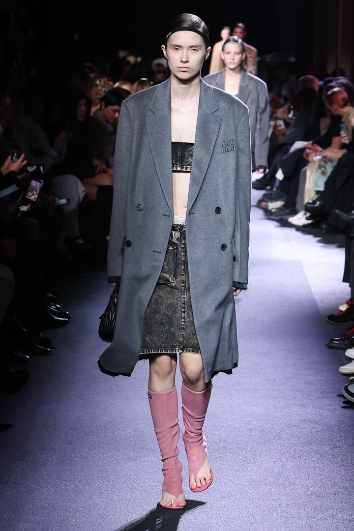 Spiega Miuccia Prada in nota, un concept che sembra perfettamente riassunto nel look che chiude la sfilata. FKA Twigs, col viso acqua e sapone e i capelli raccolti in trecce, calca la passerella indossando una micro gonna impreziosita da maxi tasche, abbinata a un maglione blu lavorato a coste da cui sbucano il colletto e i polsini di una camicia bianca. Bellissima, nel suo outfit minimale, ma ultra-contemporaneo, sembra una delle tante school girl che vediamo su TikTok, esempio di un’eleganza che grazie al tocco di Miu Miu riesce a destabilizzare anche il più classico dei look. Se "la moda è un mezzo per tradurre in forma materiale una reazione alla realtà", Miu Miu è la risposta di Miuccia Prada al mondo che ci circonda, un campo di riflessione sul reale nel quale divertissement e utilitarismo collidono per vestire l’oggi.