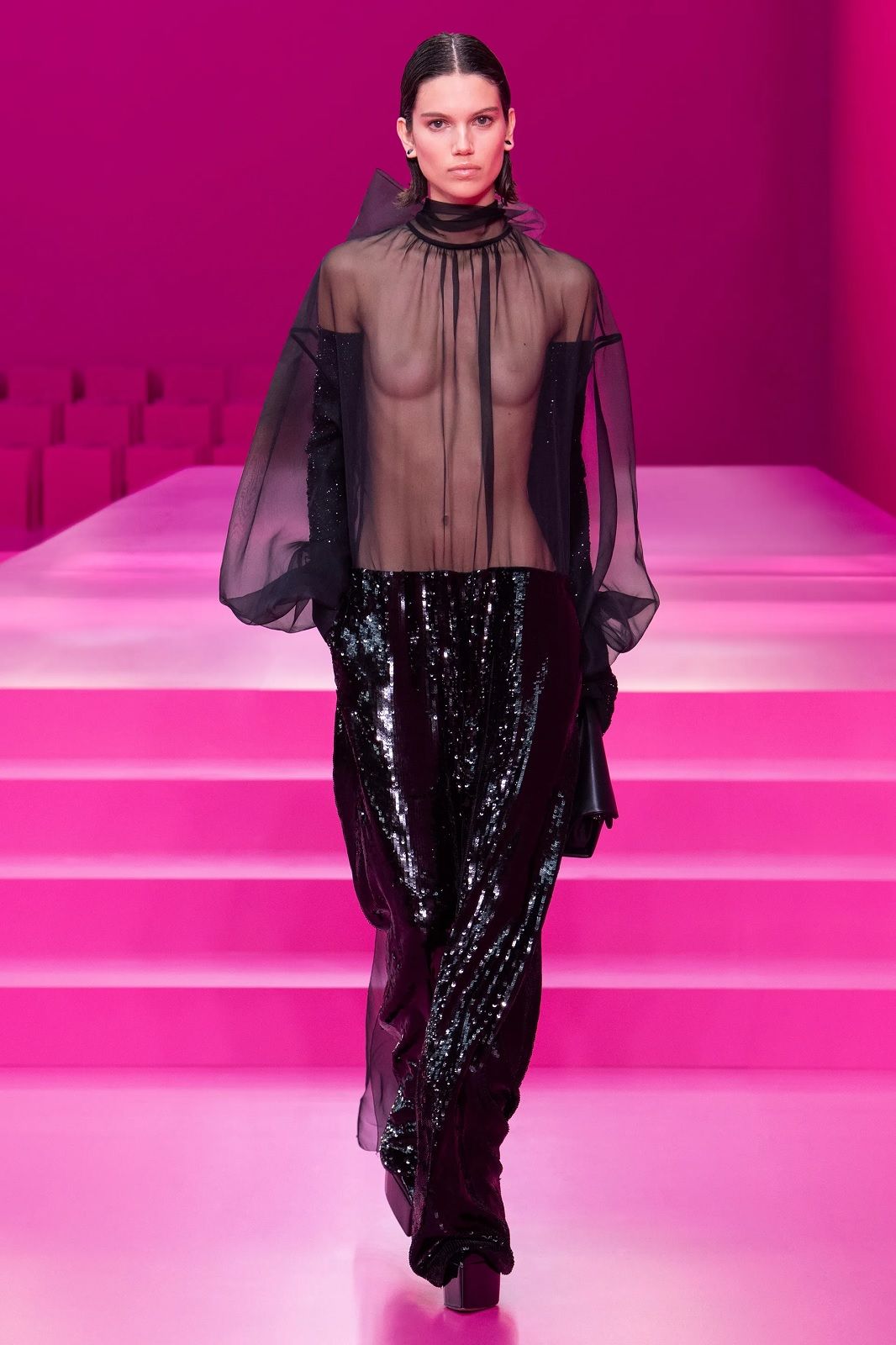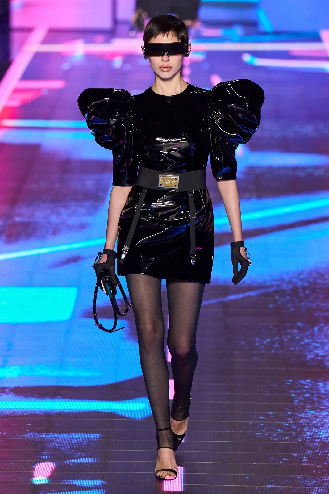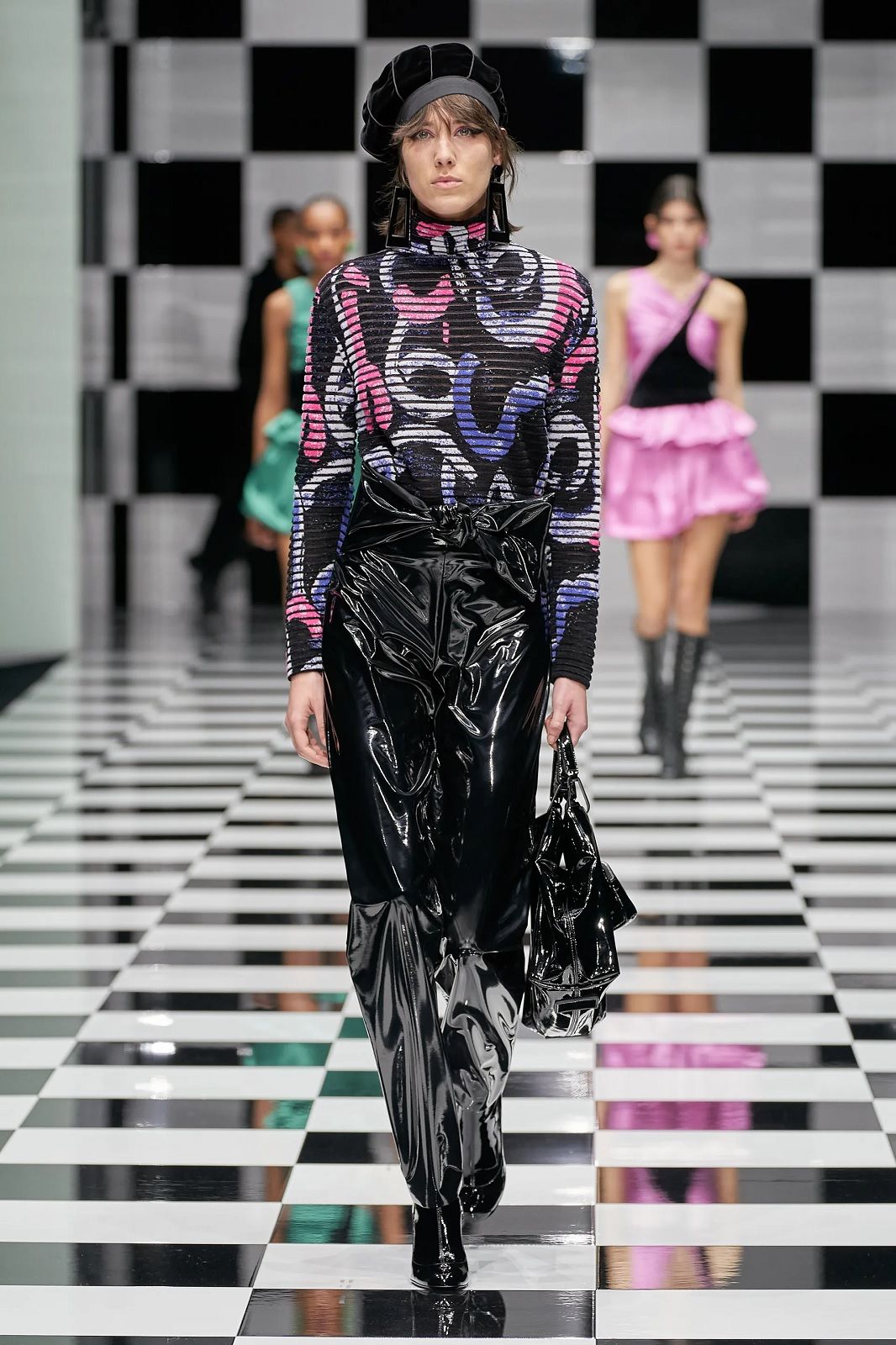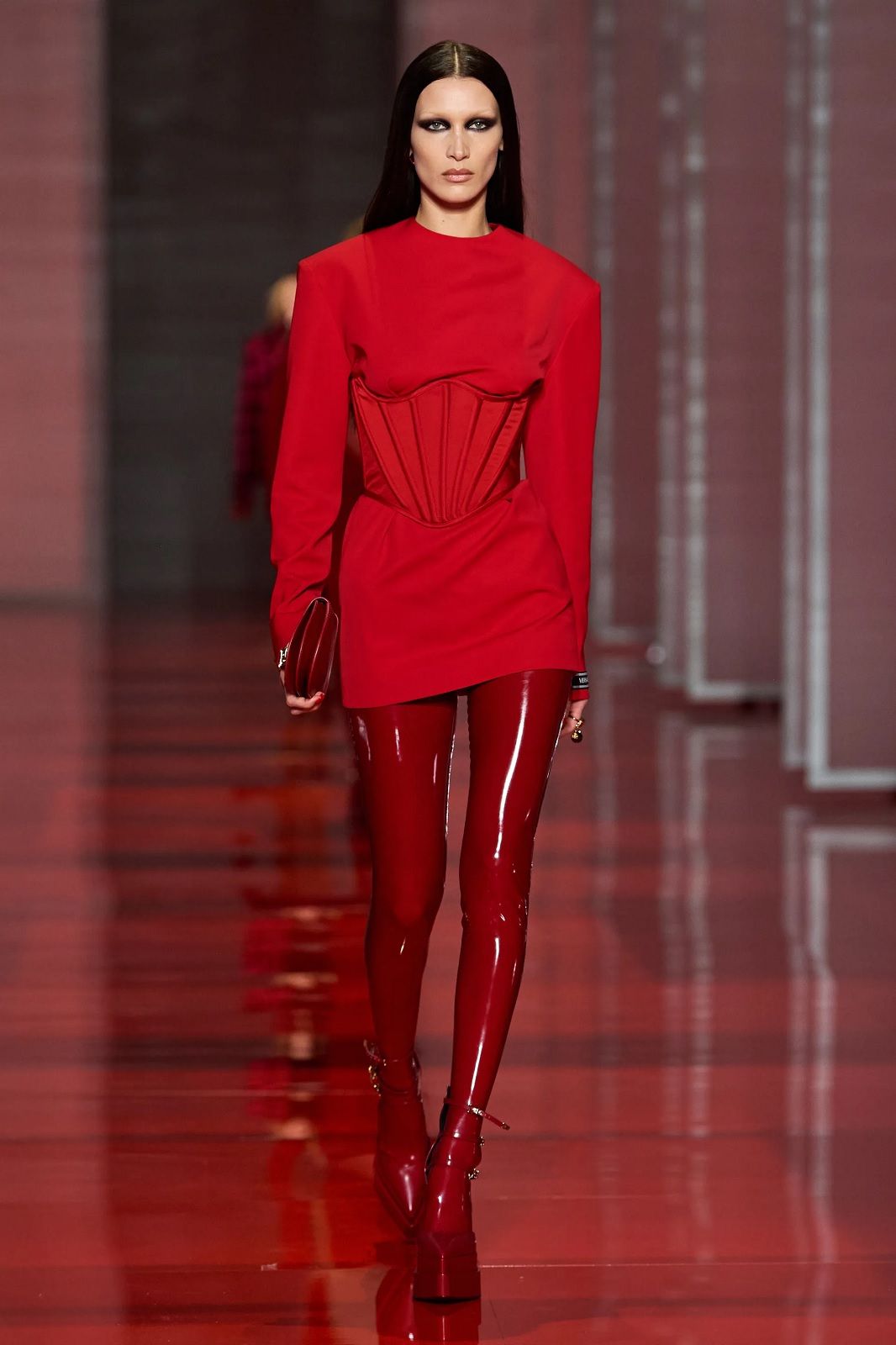 In passerella la vernice, declinata soprattutto in nero e rosso, si unisce e confonde spesso con latex, pvc e pelle dando vita ad outfit da perfetta dominatrix come quelli firmati Versace. I leggings vinilici sfoggiati da Bella e Gigi Hadid sono uno dei must-have di stagione, facili da indossare non solo con corsetti e plateau, ma anche con dress in maglia e capi dal taglio più pulito. Riscoprendo le proprie radici sixties, Courrèges ha riproposto il vinile nella sua versione della giacca da motomami Scuba Biker Jacket, oltre che abbinare i pantaloni in vernice morbida e stivali alti fino alla coscia con eleganti maglie a coste e bodycon dress in maglia. Da Coperni invece i cuissardes fetish in vernice si portano con minidress inguinali, trasparenti e glitterati e con blazer sartoriali. I cuissardes sono proprio l’item che gli stilisti hanno preferito declinare in vernice, insieme ai pantaloni, che hanno conquistato anche Emporio Armani, ed al trench, visto da Sportmax, Del Core e Patou. Basta indossare una di queste calzature o di questi capispalla per sentirsi subito potenti, sensuali, ma chi vuole smorzare l’effetto può limitarsi ad infilare un cappotto nero in vernice sopra jeans e sneaker, trovando così un modo per elevare il proprio look strizzando l’occhio al trend del momento senza abbandonare del tutto il proprio amore per l’understatement.