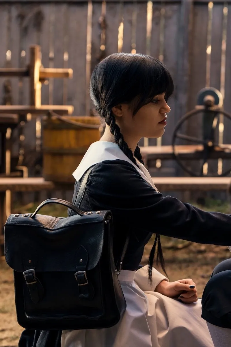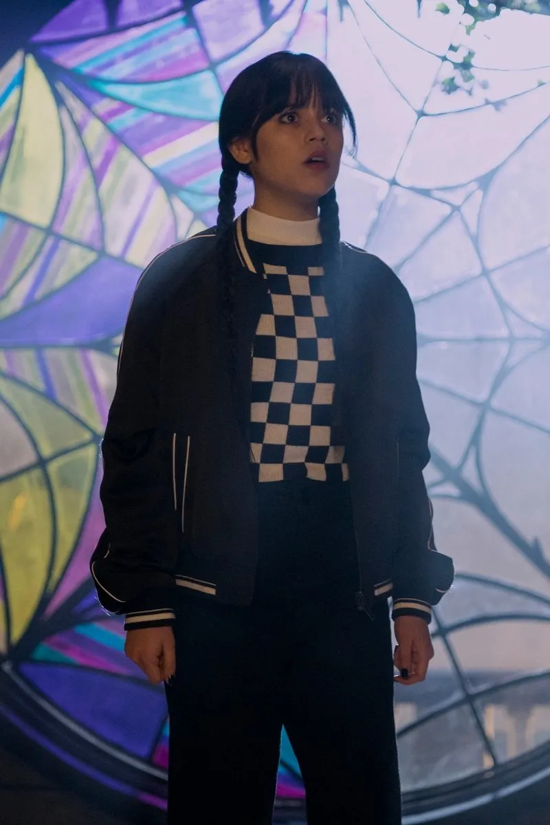 La monotonia del guardaroba classico di Mercoledì si anima di nuove scelte Gen Z-friendly, sempre fedeli al personaggio e alle sue mise spettrali, ma con un tocco di fantasie e materiali a contrasto, strisce o scacchi, pelle e organza. «Oltre a usare un nero semi-riflettente, ho usato il nero con il bianco, non c'è quasi nessun nero pieno. Se un personaggio indossa una giacca scura, per esempio, la abbino a una camicia bianca sotto, in modo che si possa vedere la manica spuntare dal polsino, così non è solo una chiazza di nero sullo schermo» - ha spiegato la Atwood ad Harper's Bazaar. Tra le mura della Nevermore Academy l’iconico preppy della "ghigliottinaia di bambole”, sfuma nelle nuance goth dell’estetica Dark Academia, taggata su 3,2 miliardi di video su TikTok. Parte degli abiti di Wednesday sono stati realizzati su misura, altri sono opera di Zara, altri ancora provengono da negozi vintage.