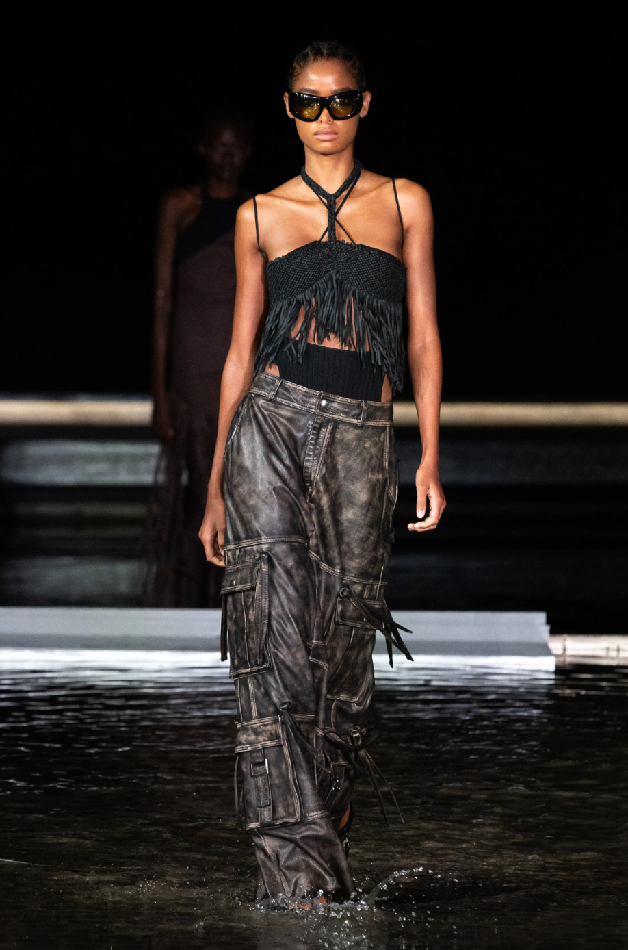 Sono passati più di vent’anni da quel discutibilissimo look coordinato sfoderato da Justin Timberlake e Britney Spears agli American Music Awards. Nonostante la débâcle il denim ha mantenuto, fortunatamente, la sua fama, mentre la versione all-over è stata rivisita con dovizia di particolari. Se Bally sceglie denim in diverso lavaggio e camicia open air, Diesel allunga la vita bassa, spalma, rompe e trafora, mentre A.W.A.KE. crea un patchwork optical per il long dress. Meritano speciale attenzione la giacca destroyed di The Attico, il sabot con maxi logo di Miu Miu, la Hourglass in denim di Balenciaga. It’s denim time.