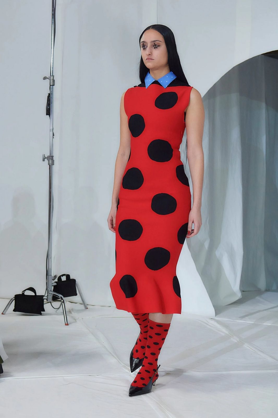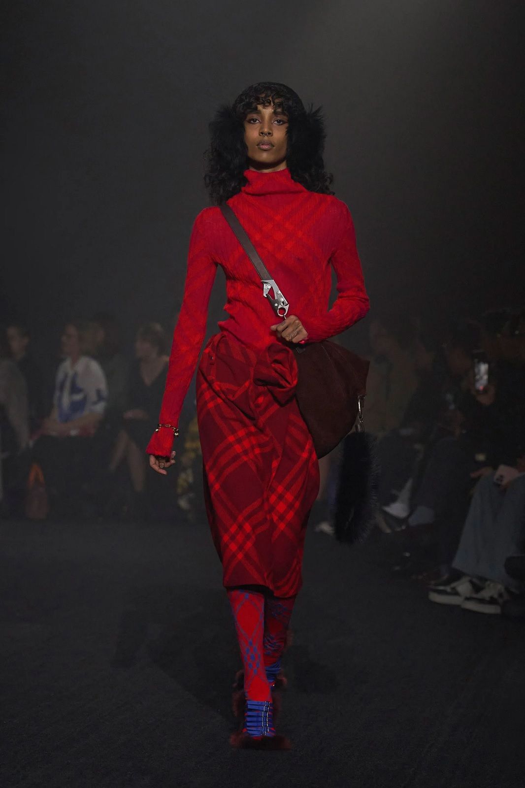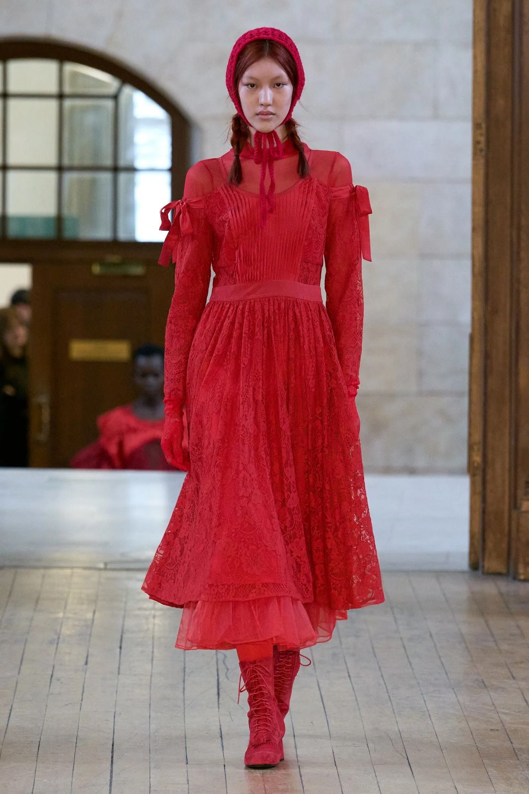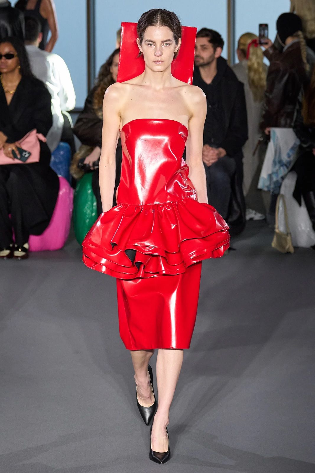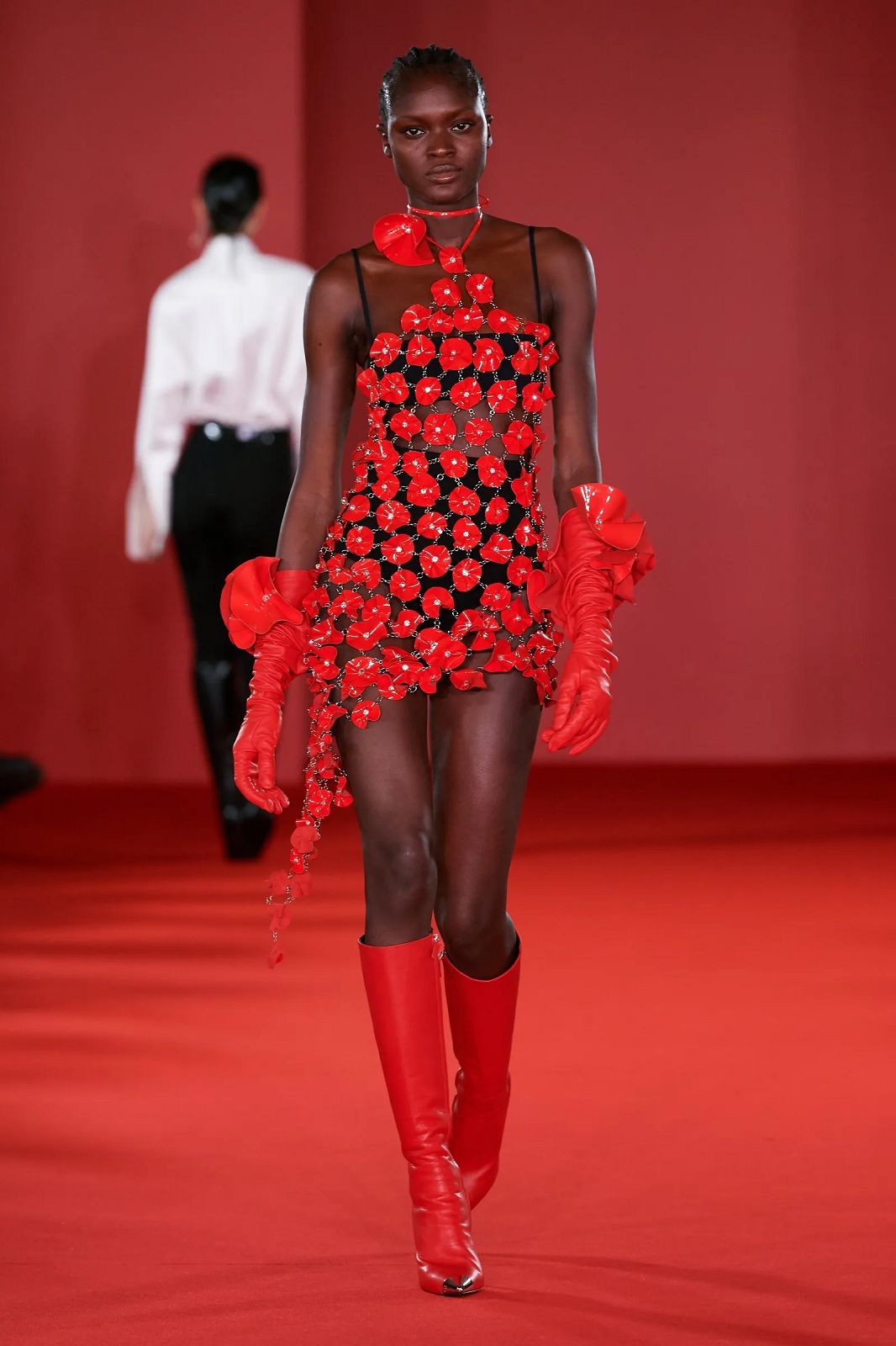 Come confermano l’ossessione per gli stivali di gomma ispirati ad Astro Boy di MSCHF e le collezioni protagoniste del fashion month dedicato alla stagione FW23, il rosso, in ogni sua sfumatura dal prugna al ciliegia, dal rubino al cremisi, è ufficialmente il power color du jour. Fendi e Ferrari lo hanno abbinato con il rosa, Roksanda col nero, mentre Tory Burch col cammello. Dolce&Gabbana e Nensi Dojaka lo hanno usato per aggiungere sensualità ai loro outfit ispirati al mondo dell’underwear; David Koma lo ha scelto per risaltare il minidress realizzato con fiori uniti insieme da catene; Christopher Kane e Prada hanno optato per un rosso vivo che esaltasse l’effetto glossy di gonne e abiti. Blumarine ne ha sviluppato le vibes potenti per le sue guerriere; Marni lo ha usato come base per maxi pois e Burberry per il suo caratteristico check; mentre Bora Aksu e Philosophy by Lorenzo Serafini hanno portato in passerella una moderna Cappuccetto Rosso.