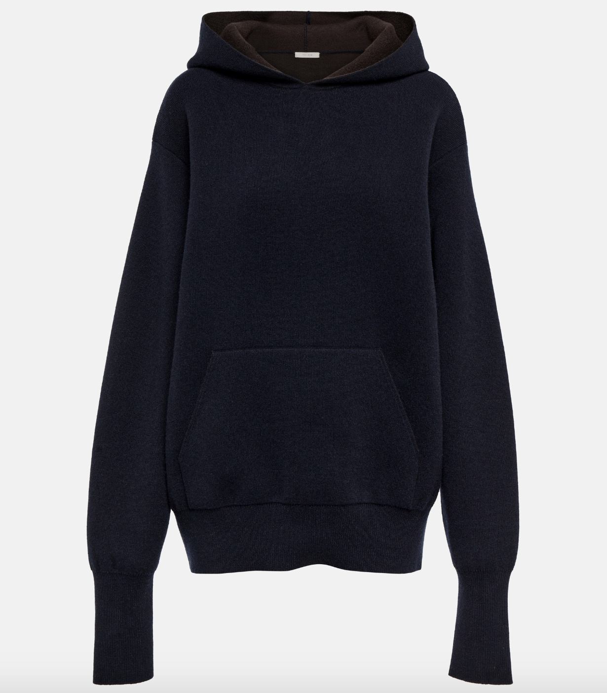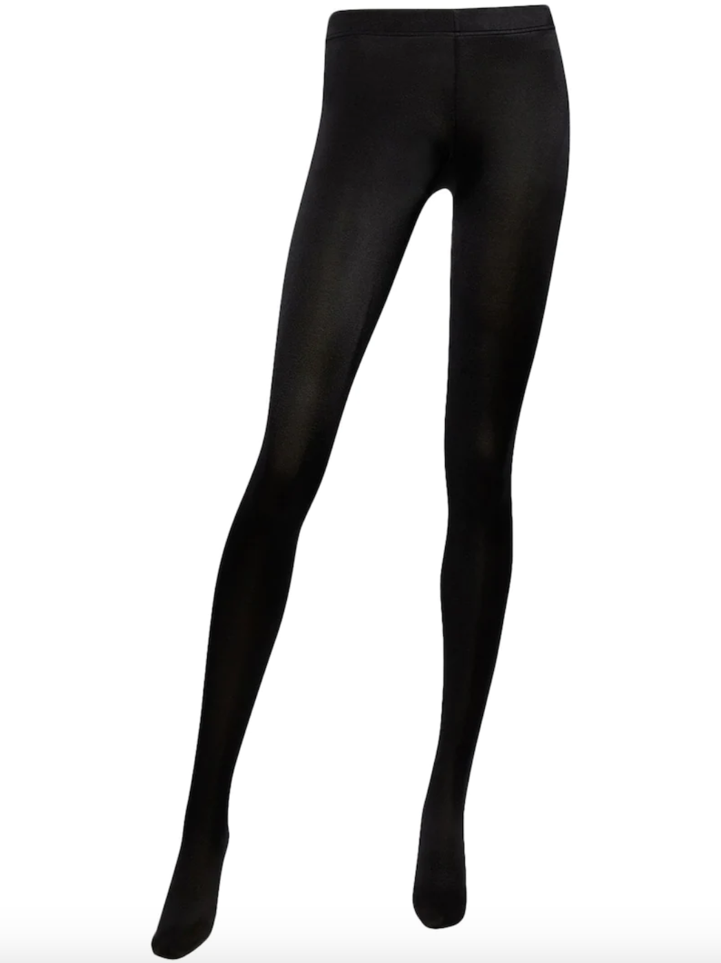Per un look simil sportivo ci sono i collant super coprenti di Sergio Rossi x Wolford, gli slip di Marine Serre e il pull con cappuccio di The Row.