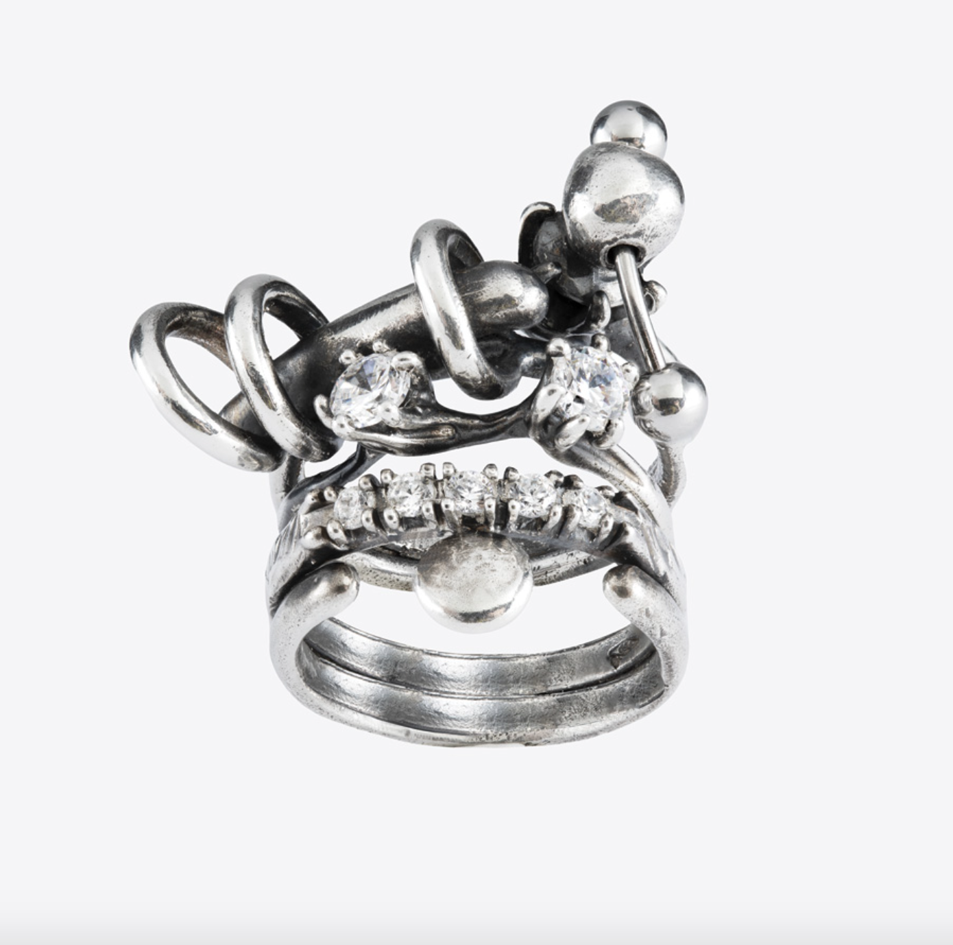 Collezioni uniche e volutamente imperfette che prendono a ispirazione la natura in ogni suo aspetto, ma anche la luna con la sua la superficie irregolare. I gioielli, dalle forme fluide e morbide, sono considerati piccoli amuleti da portare quotidianamente, tra finissime puntinature, gocce di metallo, pietre preziose e rametti perfetti.