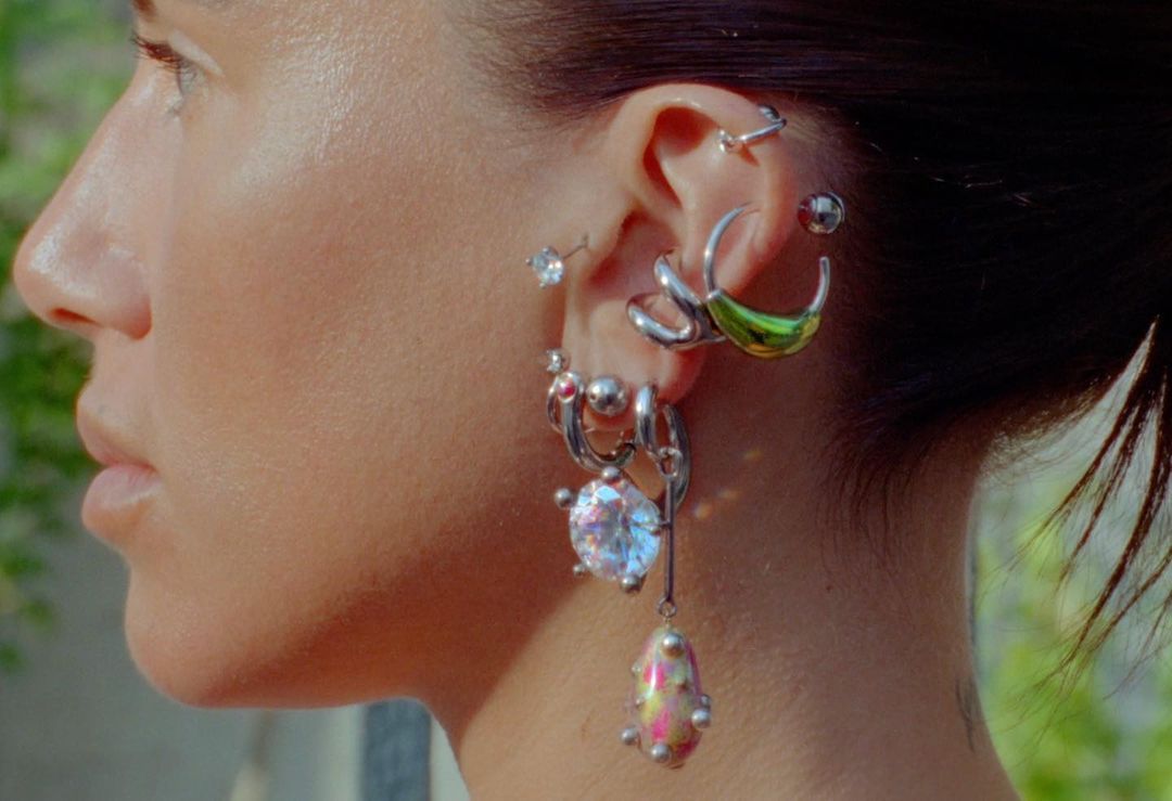Gioielli dal tocco bitter, fatti a mano, volutamente imperfetti. Giulia Tavani, designer romana che lavora con l’ottone, l’argento e l’oro reinterpreta le forme più classiche per rendere preziose le parti anatomiche meno prevedibili. La punta delle dita, le orecchie e il corpo rendono i gioielli non solo portabili, ma anche indossabili, ogni creazione è un talismano, ispirato alle culture indigene, pieno di dettagli impeccabili e dall’aspetto raw.