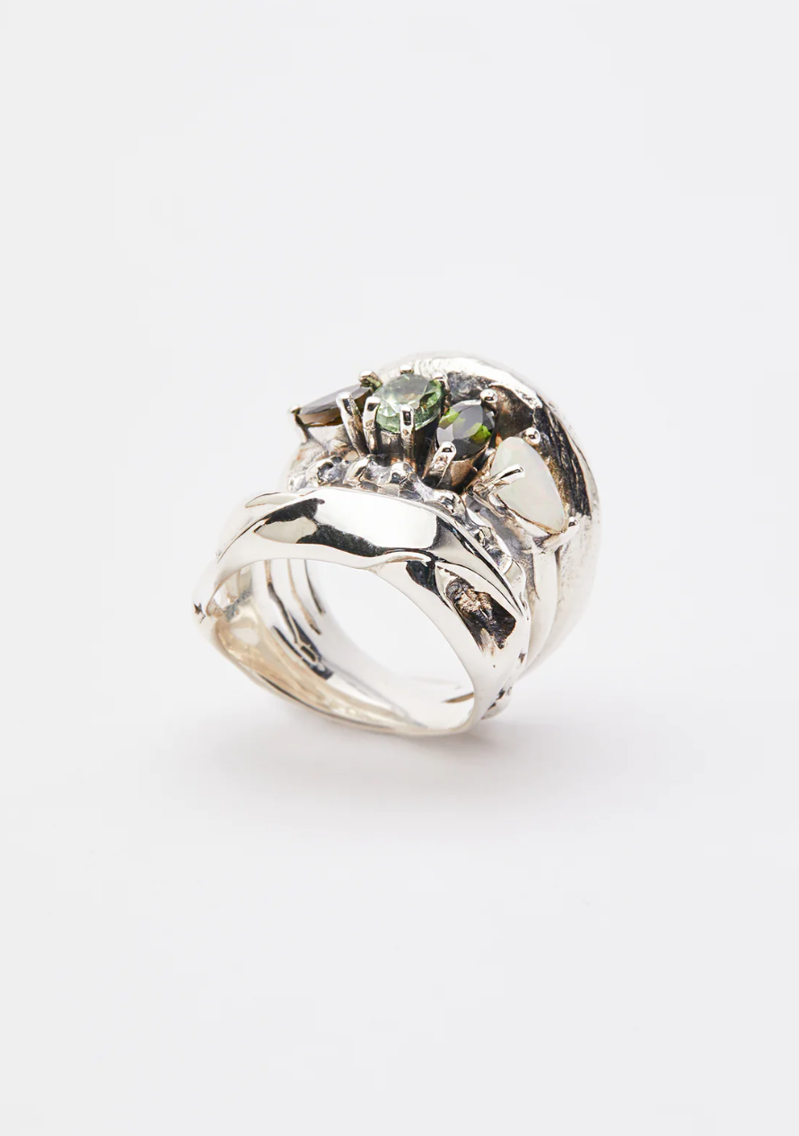 Ogni pezzo è una scultura in miniatura, oggetti cari ed emozionali tra arte e moda. Marco Panconesi, con un passato e un vivo presente come jewelry head of designer di brand luxury, fonda nel 2018 il suo studio omonimo, mettendo le radici a Parigi, ma puntando tutto sull’artigianalità italiana. I gioielli prendono forme naturali, quasi primitive, i colori sono iper reali, le storie da raccontare cristalline.