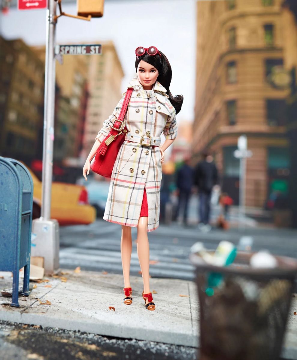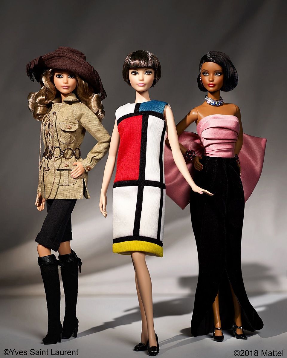 Da quando negli anni ’80 Mattel iniziò a collaborare con i maggiori stilisti e brand per versioni in edizione limitata della bambola il suo guardaroba è diventato realmente da sogno arricchendosi di abiti, accessori e persino capelli e trucco reimmaginati da talenti iconici come Dior, Saint Laurent, Versace, Oscar de la Renta, Moschino, Armani o Kenzo. Ispirati dalla più amata delle bambole hanno adattato le loro creazioni simbolo alle misure di Barbie, dando vita a dei veri e propri pezzi da collezione che ogni appassionato vorrebbe possedere. Qualche esempio? Jean Paul Gaultier le ha fatto indossare il suo iconico cone bra; Vera Wang l’ha declinata in versione sposa; Dior ha riproposto il suo intero New Look composto da Bar Suit, il completo composto da Bar jacket e gonna a ruota, come nel famoso scatto di Renée Breton in Bar Suit by Willy Maywald del 1947; Burberry ha optato per un classico trench accessoriato con una sciarpa a check; mentre Calvin Klein ha realizzato una mini giacca e una minigonna, entrambe in denim.