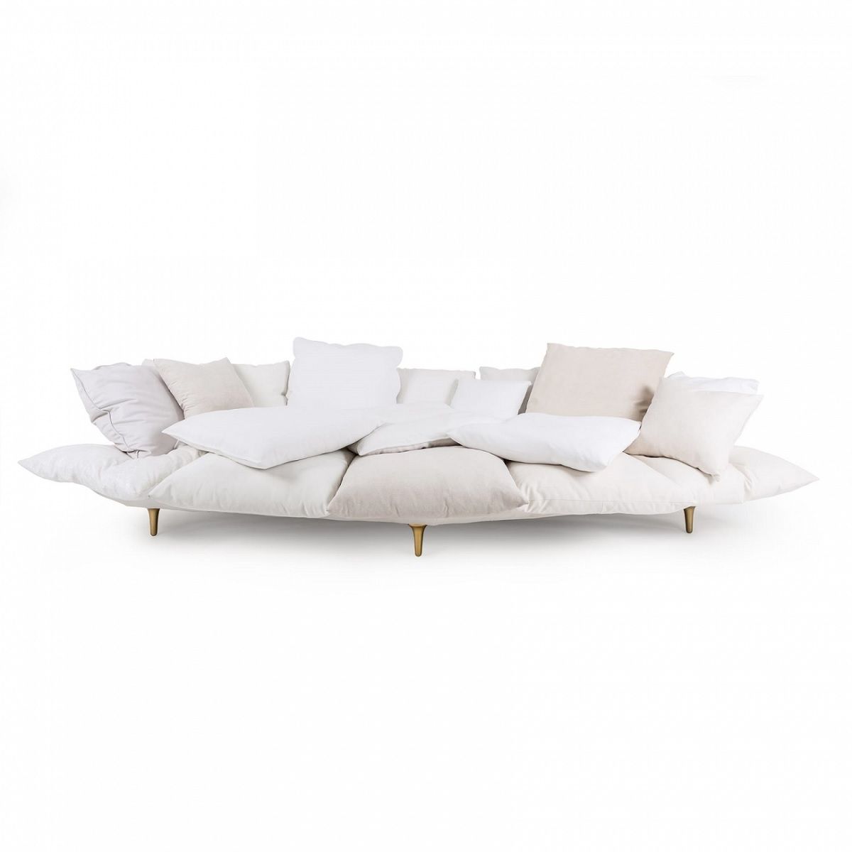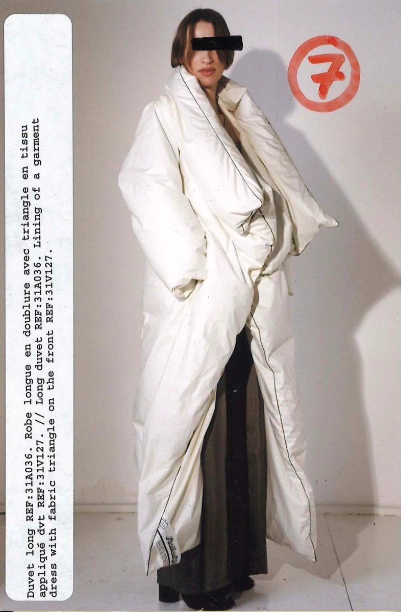Lily Cole con i suoi capelli rossi sparsi su un cuscino di cotone immacolato con bordi di pizzo e un lenzuolo inserito nel collo del cappotto è l’immagine simbolo della sfilata FW 2005 di Viktor&Rolf. In quella collezione il duo di creativi aveva portato in passerella una rilettura dell’homewear, con una serie di look che includeva piumini, trapunte, coperte e cuscini. Secondo qualcuno i capi realizzati da Viktor&Rolf ricordano il Comfy Sofa By Marcantonio prodotto da Seletti nel 2017.