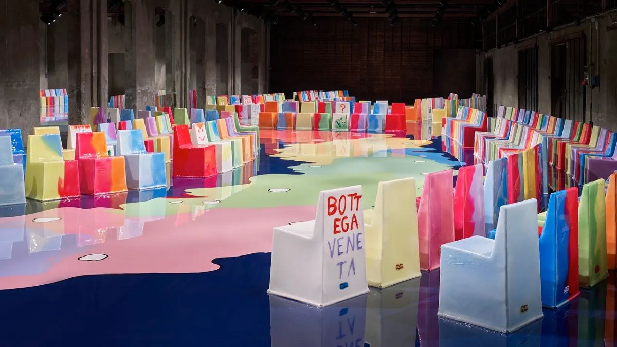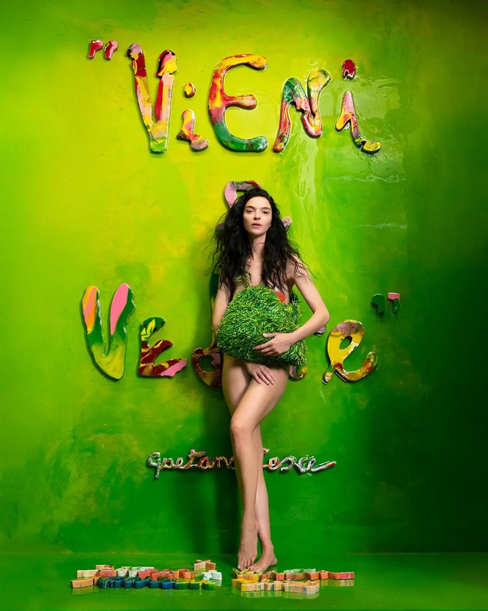 Gaetano Pesce aveva già realizzato il set per la sfilata SS23 di Bottega Veneta, ma ora, in occasione della Milan Design Week, la collaborazione tra i due ha dato vita a Vieni a Vedere, un'installazione immersiva site-specific che fa da cornice a due nuove borse in edizione limitata realizzate a quattro mani insieme a Matthieu Blazy, My Dear Mountains e My Dear Prairies.