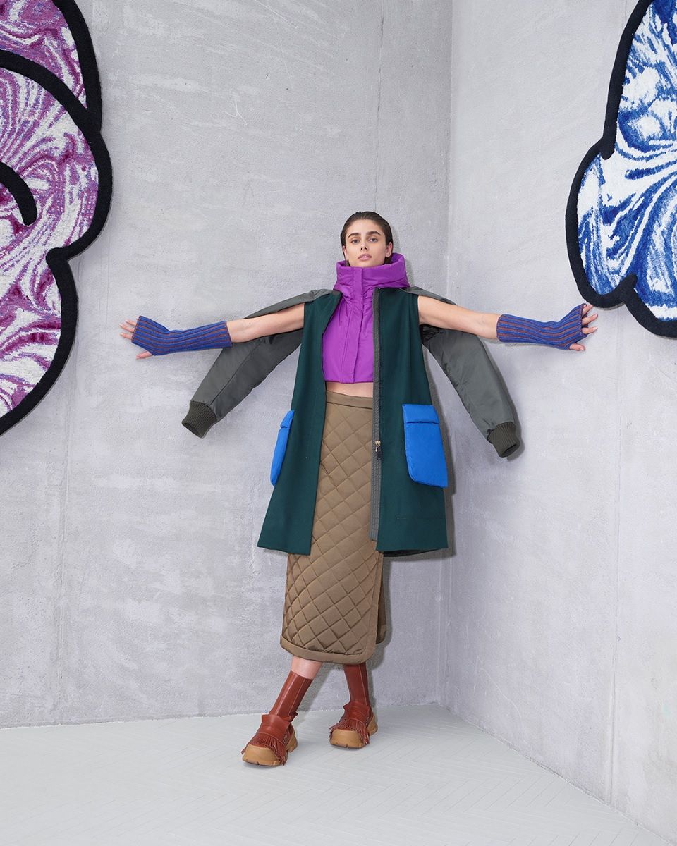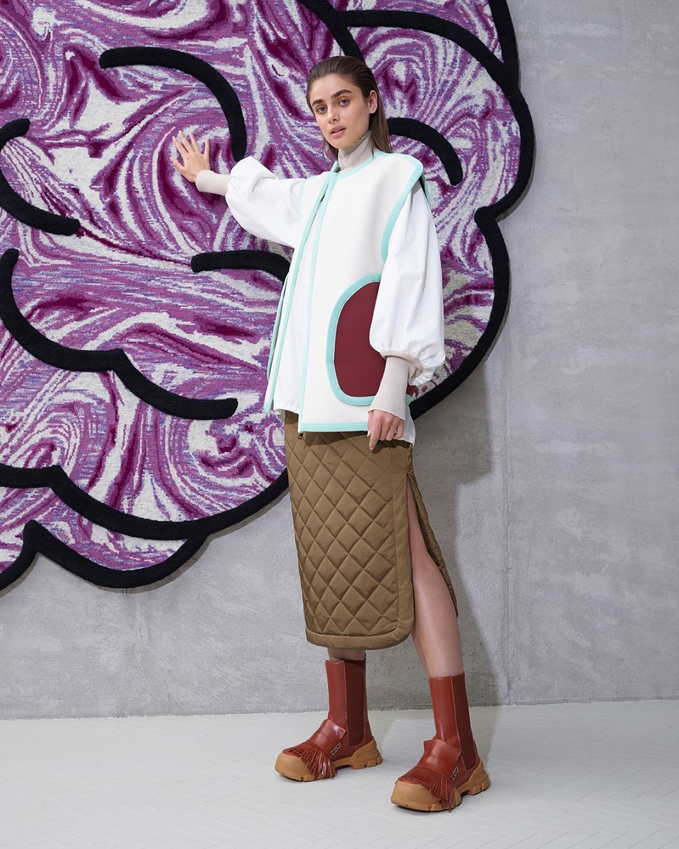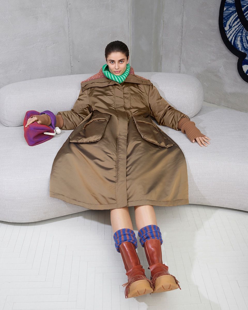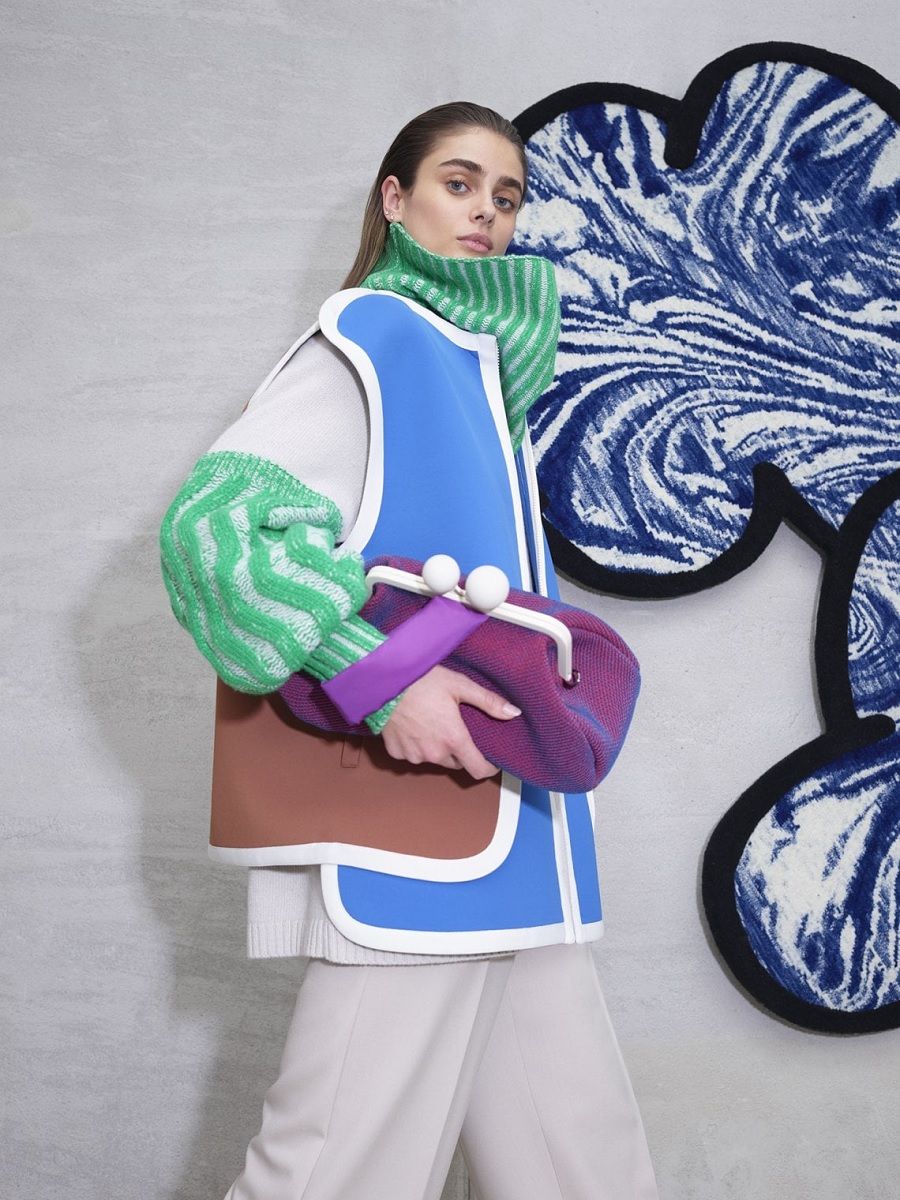 Max Mara non si è semplicemente ispirata al lavoro di Patricia Urquiola, ma ha realizzato insieme all'architetto e designer Habito, la Weekend Signature Collection per la stagione FW22. Il risultato è stato un mix di accostamenti cromatici e grafici contrastanti, giocosi ed accattivanti che comprende sia pezzi di abbigliamento sia accessori. Un bell’esempio di architettura-à-porter.