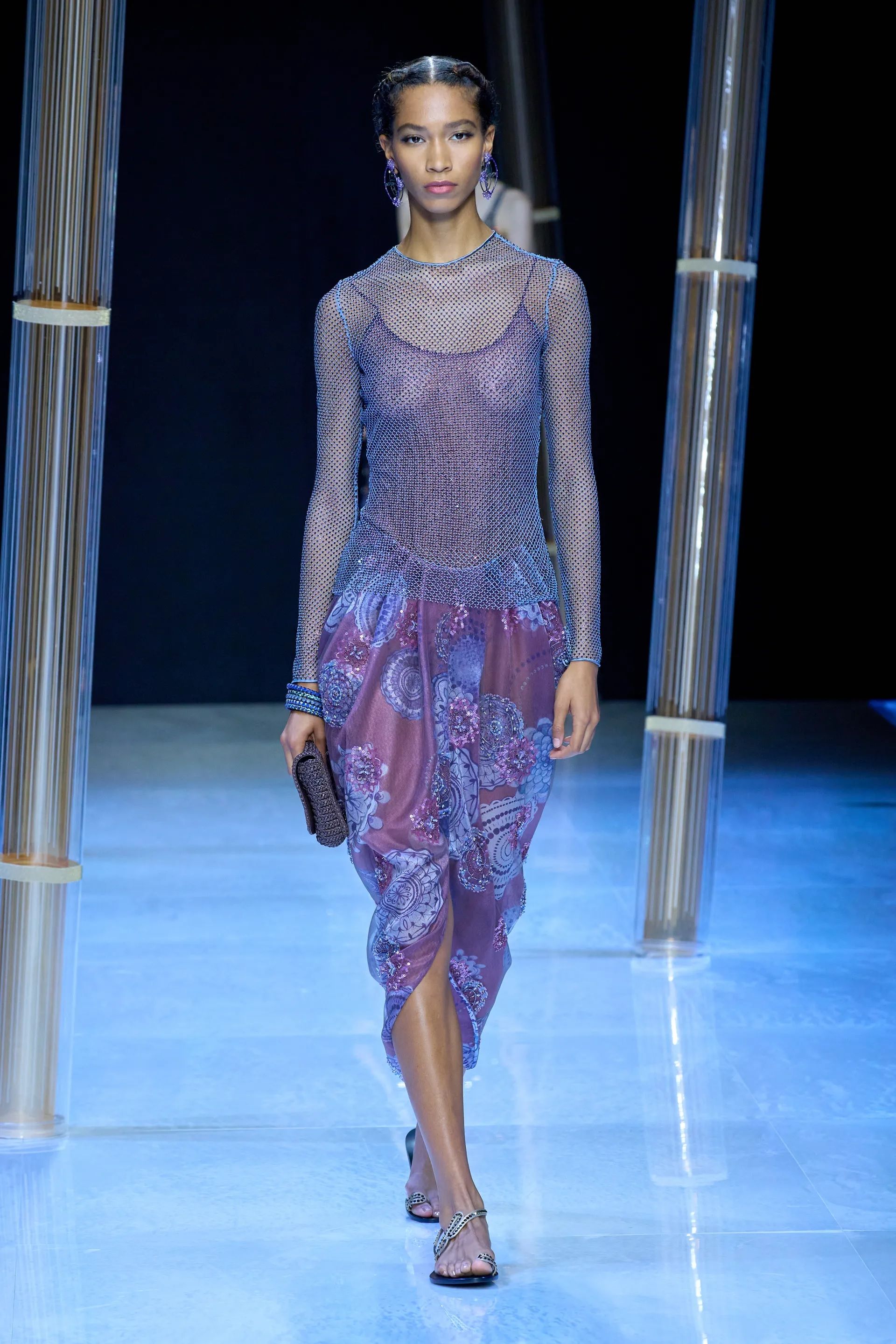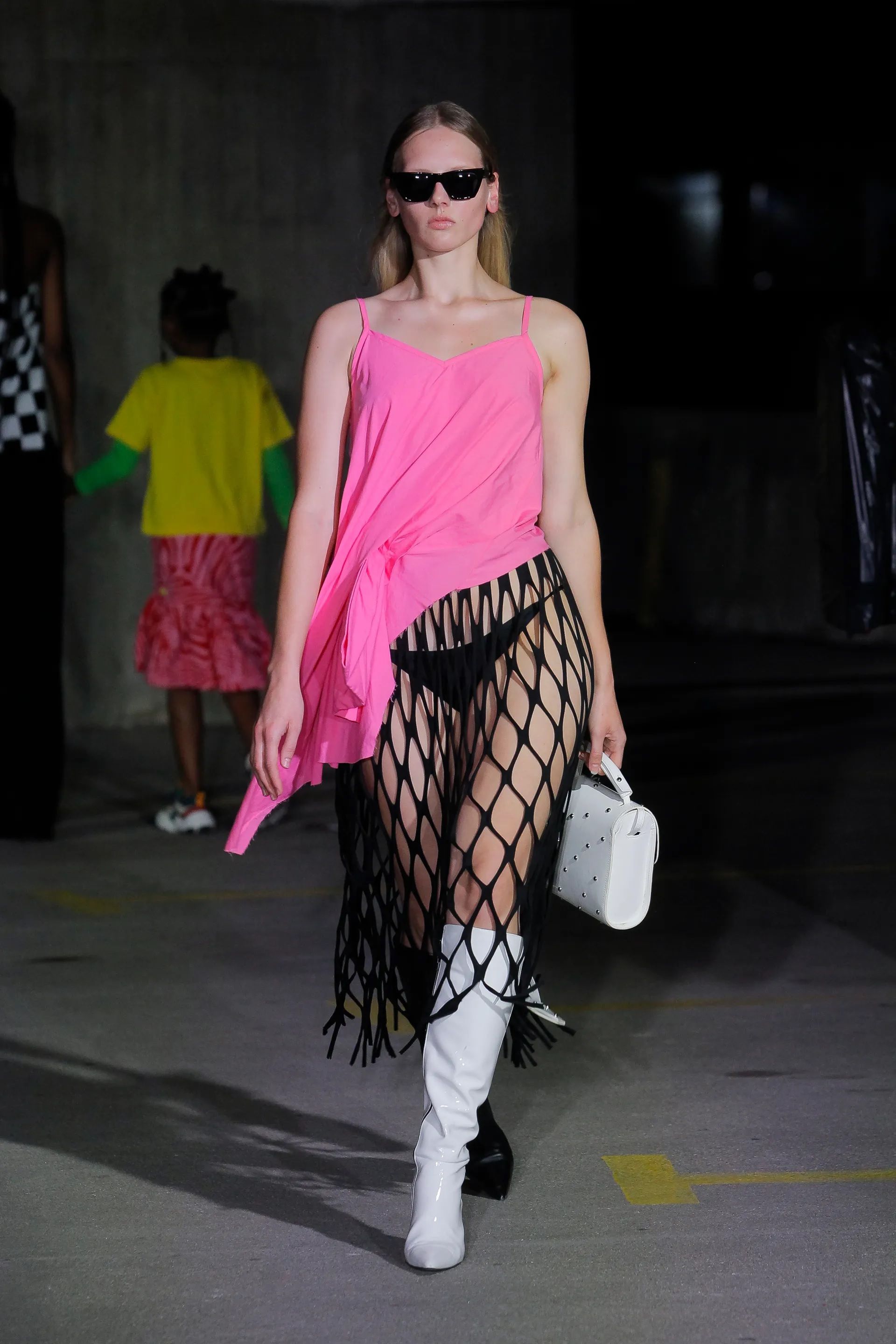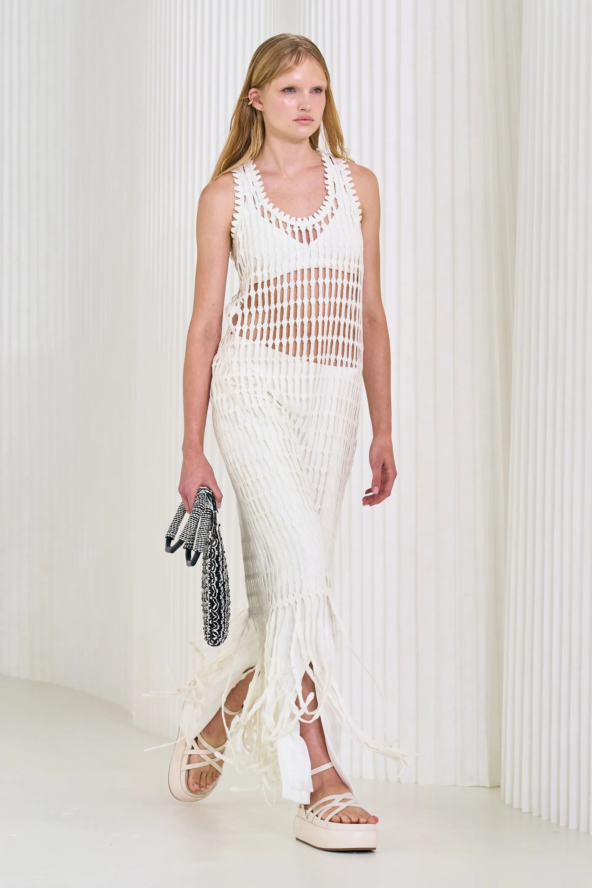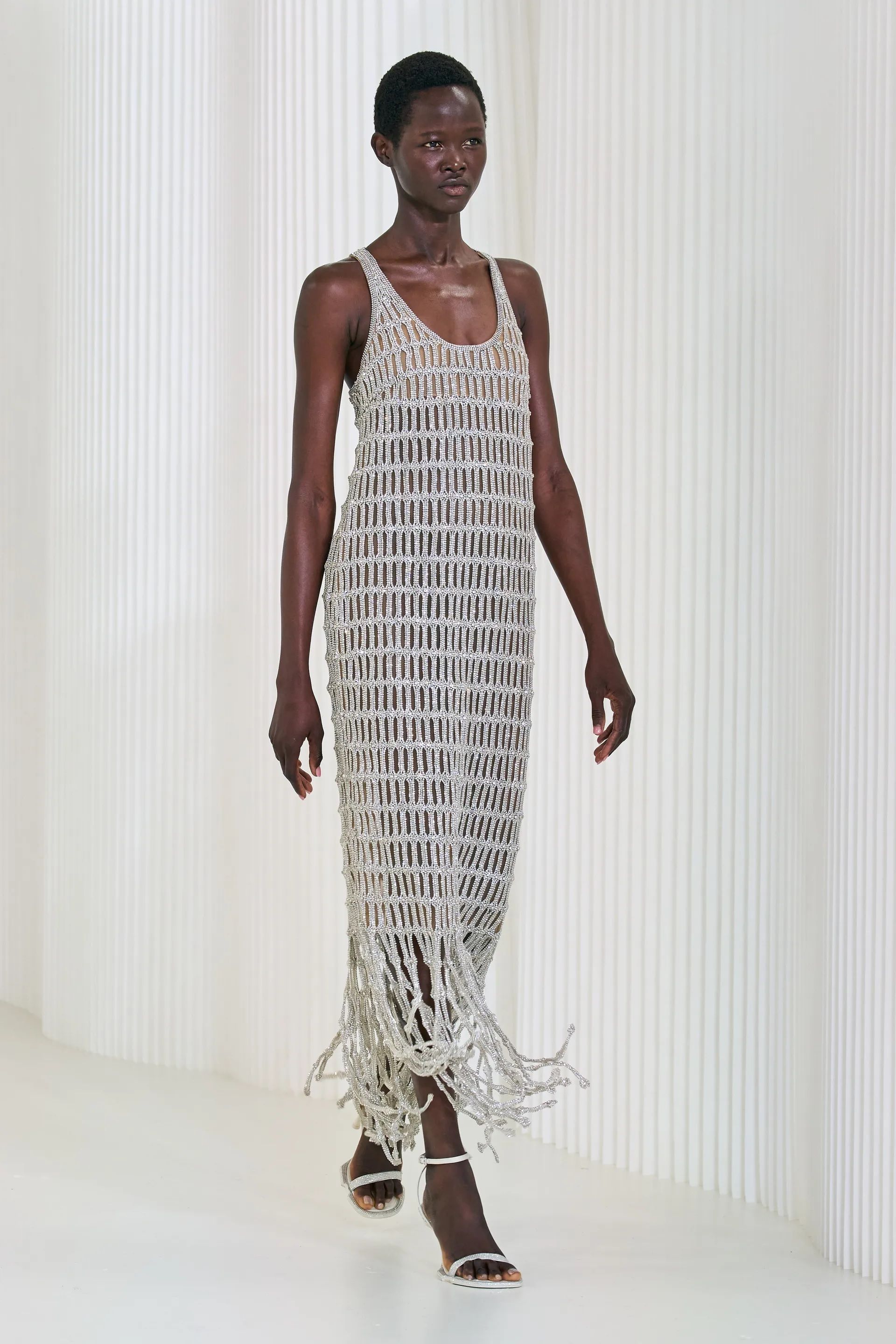 Se pensate che la rete sia perfetta solo da utilizzare sopra bikini e costume da bagno, vi sbagliate, perché rivela un’anima estremamente chic se declinato nella giusta maniera. È tutta questione di styling, basta sceglierla in nero, bianco o ecrù, con una lingerie della testa shade, dei gioielli eleganti ma d’impatto e un paio di sandali ultra-flat. Per l’ispirazione vi suggeriamo di esaminare le sfilate SS23 di Andreadamo, Alberta Ferretti, Jil Sander, Simkhai. Contemporanee, cool e glamour sono anche le versioni di Miu Miu, Chloé e Proenza Schouler che hanno portato in passerella abiti in rete impreziositi di cristalli, finish metallizzati, perline e bagliori luccicanti.