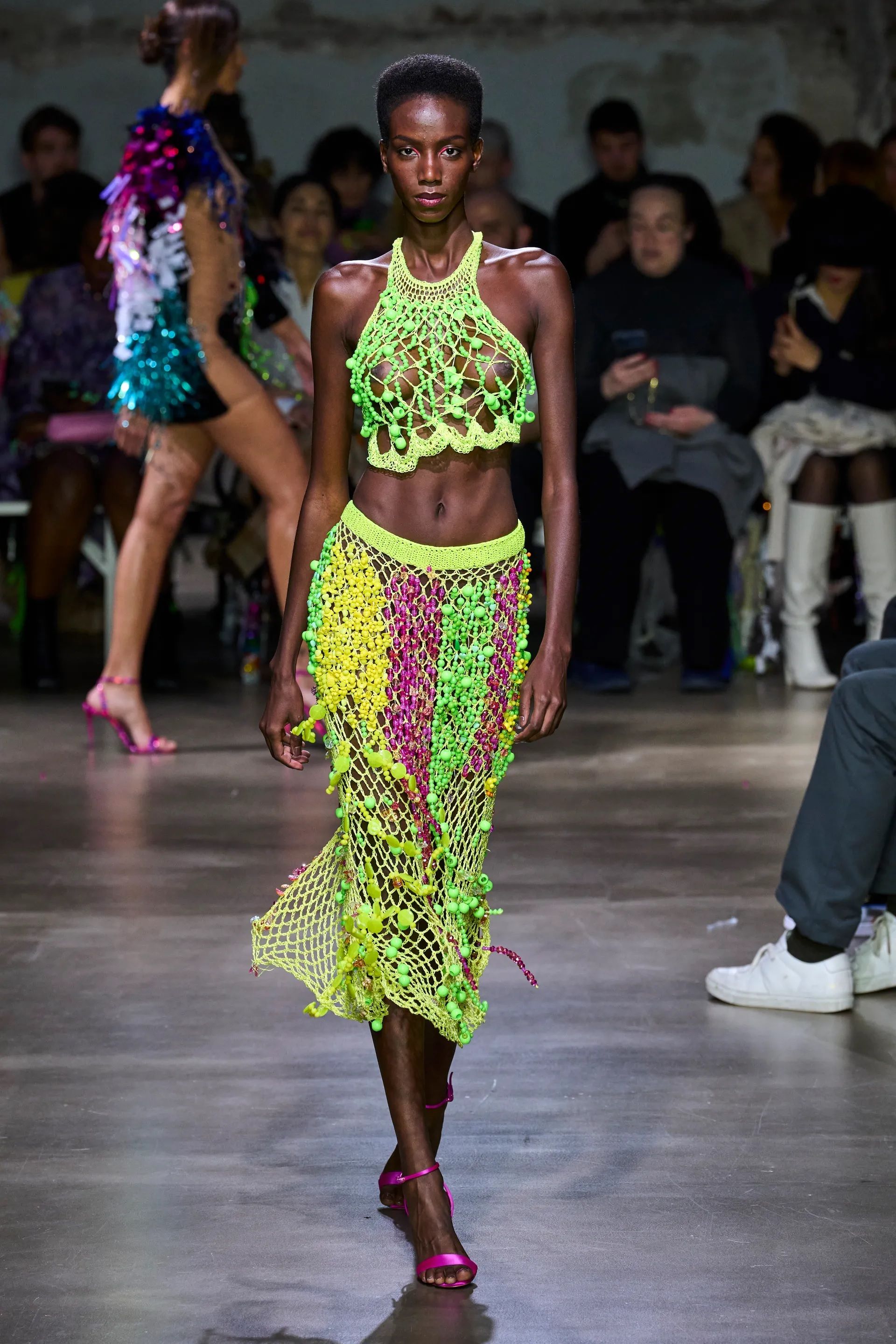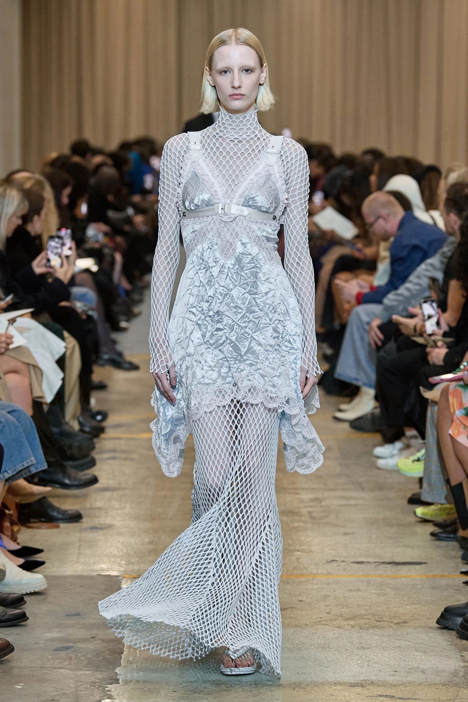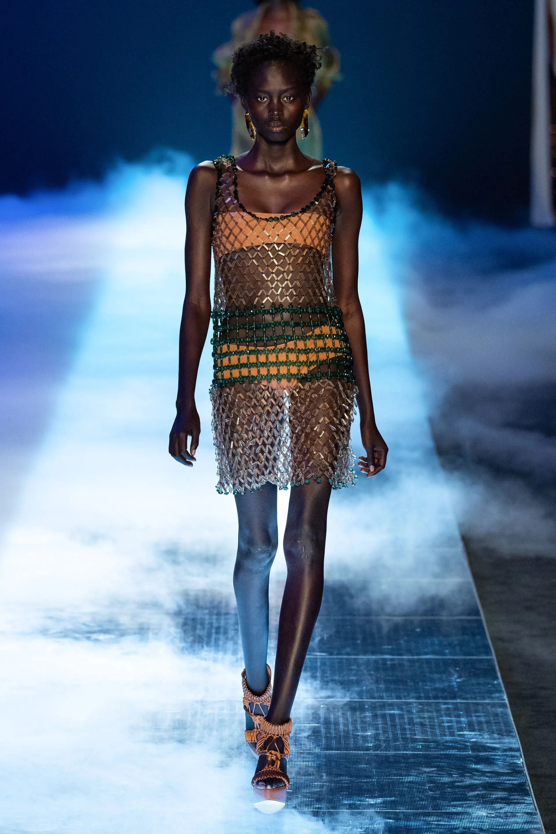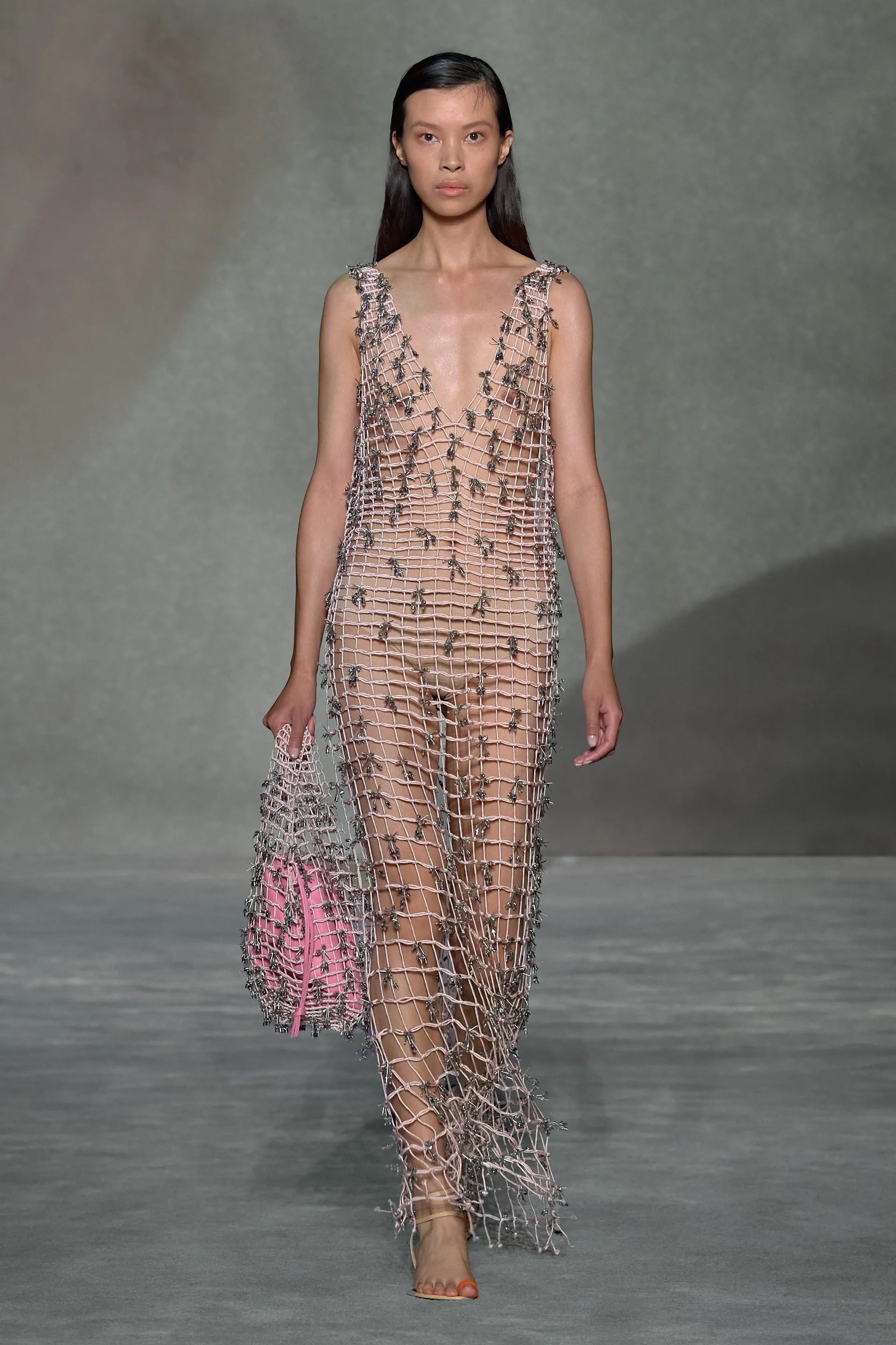 Ma gli abiti in rete non sono solo un capo simbolo dell’estate o un potente mezzo di seduzione, raccontano di favole, tradizioni e creature mitologiche. Aderendo al trend mermaidcore, sulle passerelle di JW Anderson, Priscavera, Paco Rabanne, Bronx and Banco e Gabriela Hearst gli abiti vestono sinuose sirene che sembrano appena emerse dalle onde, per finire nelle reti di un pescatore. Mentre muovono i primi passi sull’arenile quelle creature degli abissi raccolgono conchiglie, perline, pietre colorate, stelle marine e piccoli oggetti che riflettono la luce e trasformano un semplice intreccio di fili e corde in abiti meravigliosi.