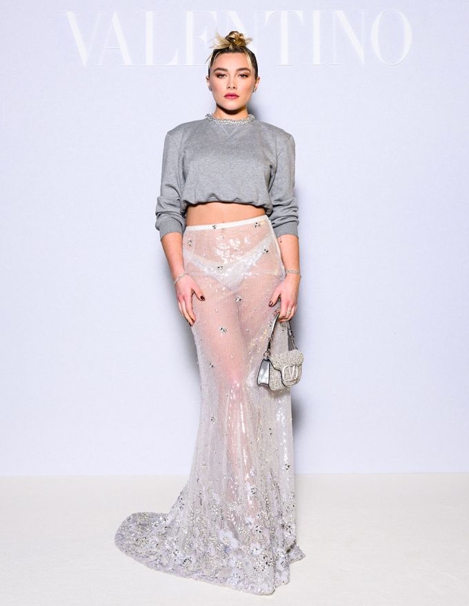 L’onnipresente Bella Hadid in total Dior con underwear maschile in bella vista, Florence Pugh con felpa melange crop, borsa dal maxi logo e slip white, un’angelica Jennifer Lawrence con pull jacquard e tulle tempestato da micro applicazioni, Kirsten Stewart giocando tra black and white, camelie e body effetto swimwear, Rihanna con bra prezioso e lunghezze a coda.