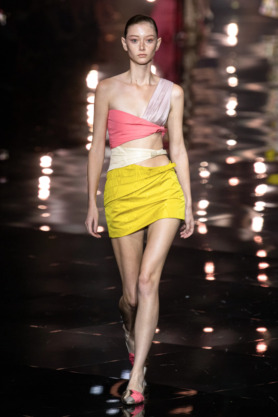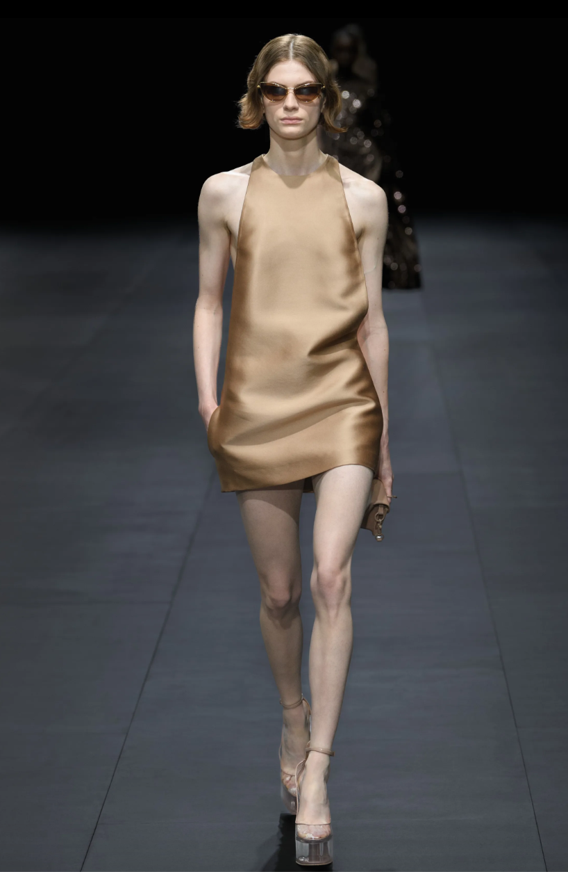 Sulle passerelle SS23 il mini dress è stato visto da: Acne Studios, bianco, doppiato e tempestato di cuori, Alberta Ferretti, arancione, trasparente, bordate accompagnato shorts in nuance, Roberto Cavalli, cut-out, multicolore e minimo, Rotate, sfumato tra giallo e arancio, con tagli profondi e aderente, Jonathan Simkhai, nero, drappeggiato consolo gioiello, Sunnei, effetto caramella, fluffy e multi righe, Valentino, beige, rigoroso, a trapezio e con tasche, Versace, fiammato, viola e nero, con bustier in pizzo.