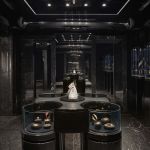 Una volta varcata la soia ci si ritrova all'interno caratterizzato da quattro stanze dalla dimensione intima e ricercata rivestite di un sontuoso marmo lucido Nero Marquina, alternato a superfici in legno laccato nero e grandi specchi che generano una drammatica e misteriosa sinfonia di riflessi. In questo ambiente oscuro ed enigmatico, le creazioni di gioielleria e orologeria risaltano esposte all’interno di eleganti vetrine cilindriche in metallo nero e vetro. Un’innovativa griglia di luci led illumina il potente design nero saturo degli spazi, accentuando le molteplici sfumature di colore delle creazioni Dolce&Gabbana in un bouquet di luce visivamente esplosivo.