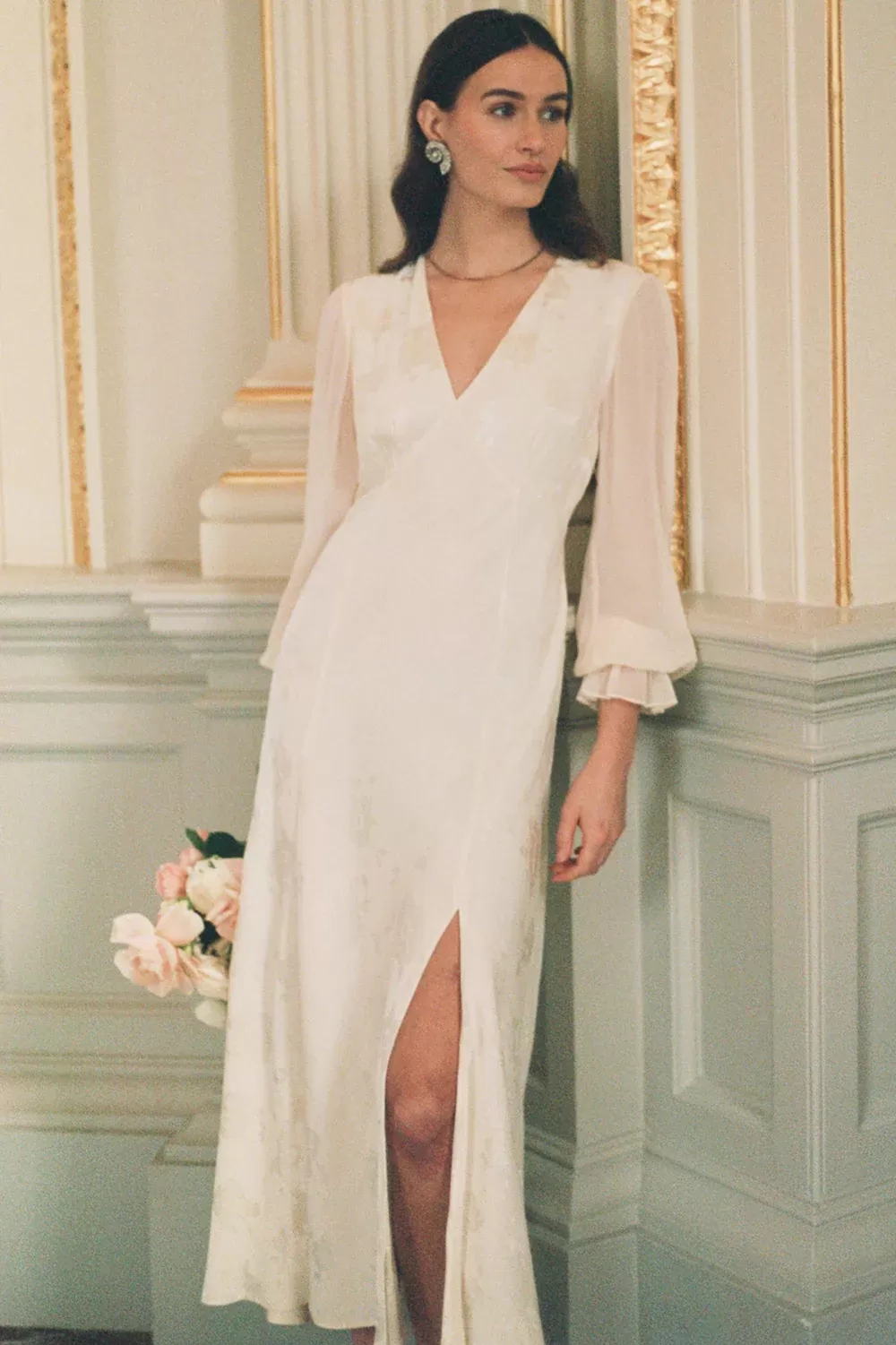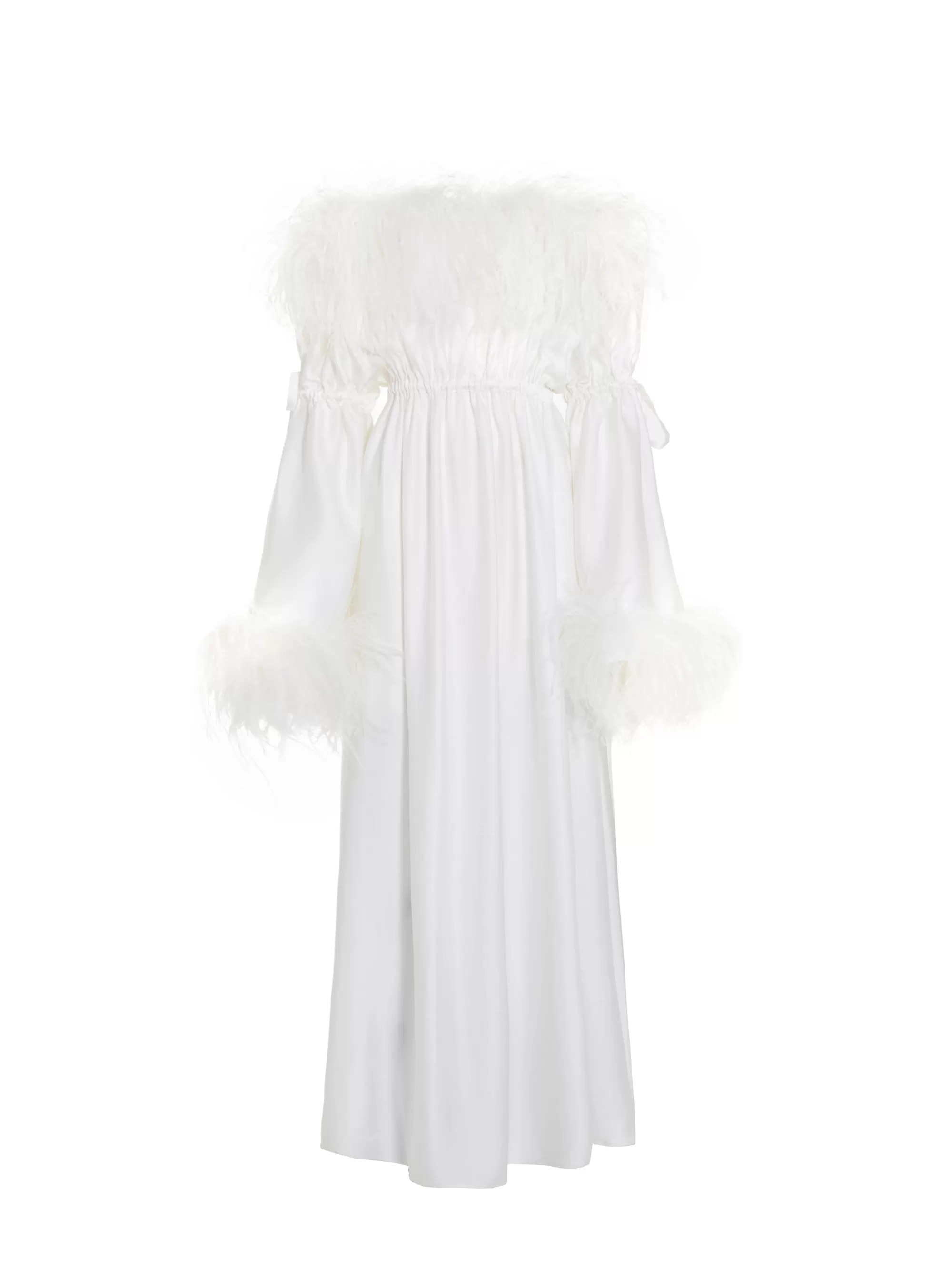 Questo brand ucraino, specializzato in pigiami da sfoggiare di giorno (l'ultimo avvistamento: l’attrice J Smith Cameron della fortunata serie tv Succession), ha lanciato anche una bridal selection. Qui la fanno da padroni i classici pigiami, con piume rimovibili, slip dress e persino completi romantici, muniti di fiocchi e fiori a contrasto.