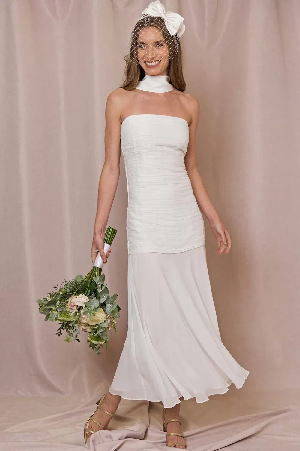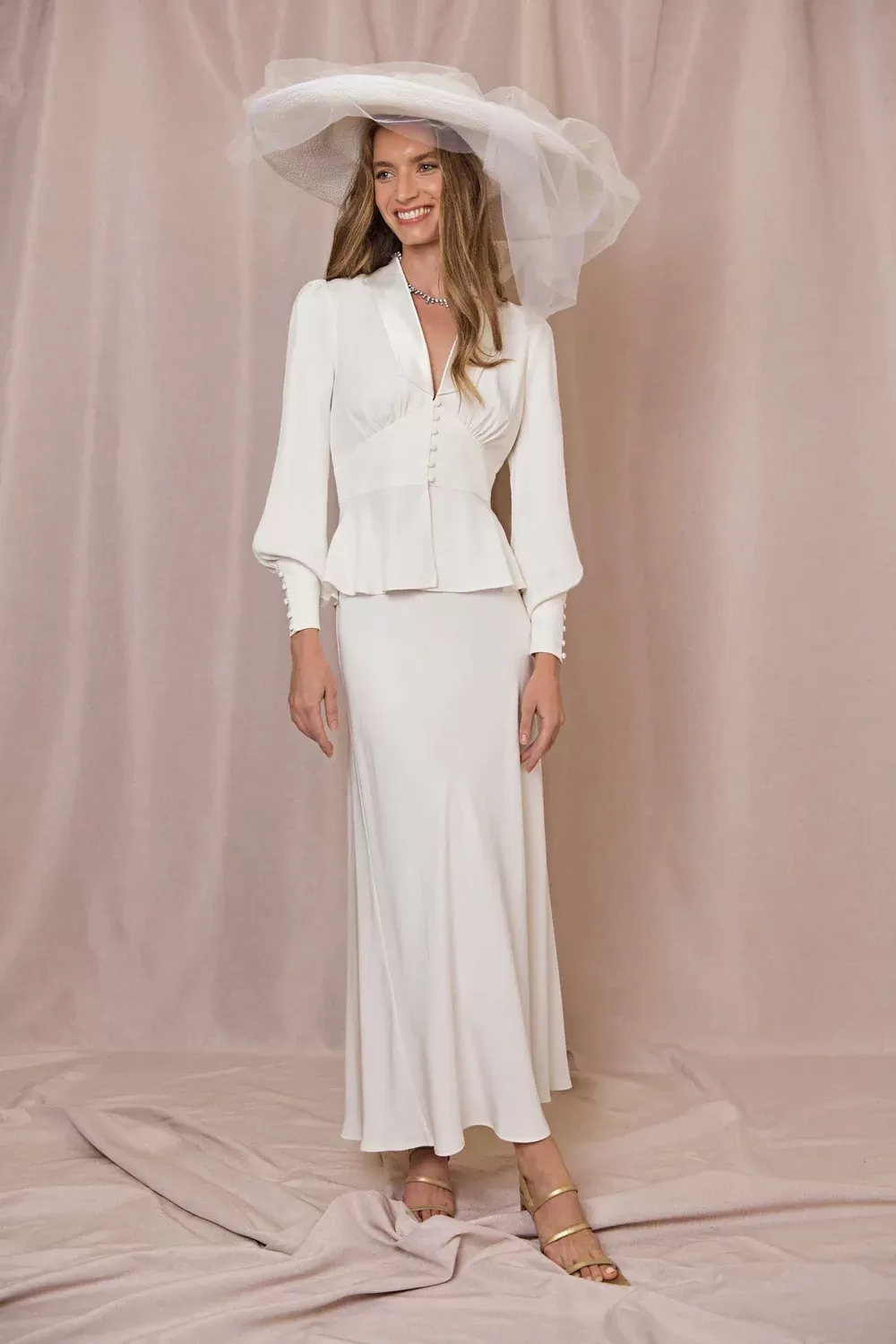 Outfit che sembrano usciti da un film in bianco e nero. Il brand made in Uk si è ispirato alle grandi icone, da Kate Moss a Carrie Bradshaw, per creare una collezione ideale per la sposa urbana. I capi, corti e lunghi - c'è anche una jumpsuit-, sono super pratici, utilizzabili anche per le sere d'estate, e tutti in seta preziosa che scivola alla perfezione sul corpo, esaltandone la silhouette.