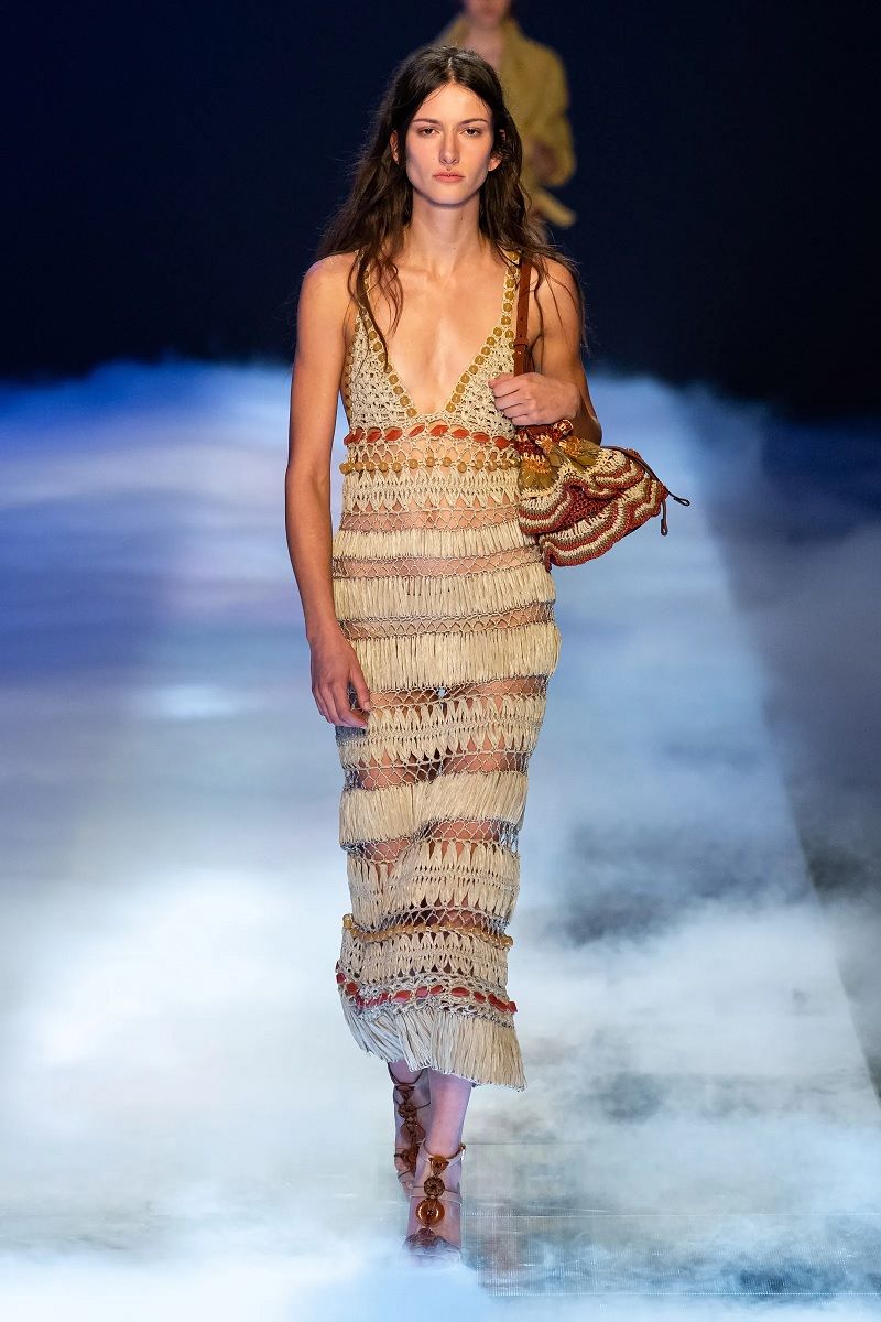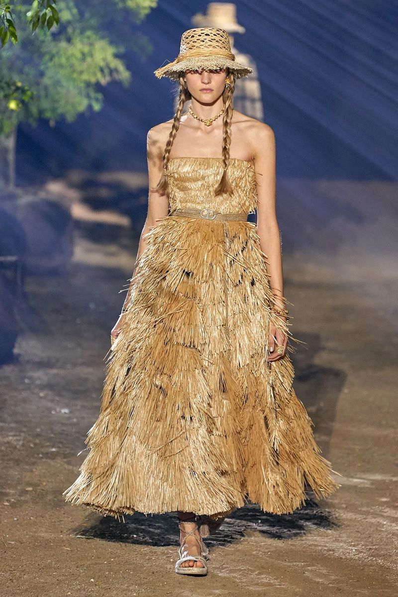 Sarà per le immagini di mercatini in Provenza, bikini sulla Croisette e party a bordo piscina che la rafia è da sempre un elemento ricorrente in ogni fashion week dedicata alla primavera-estate. Nelle ultime decadi sono tanti i brand e gli stilisti che hanno scelto di introdurre questa fibra grezza, ma tanto morbida da prestarsi a diverse lavorazioni, all’interno delle loro collezioni, per creare sia accessori sia abiti. Uno dei primi ad avere portato in passerella la rafia è stato Yves Saint Laurent con la SS67. L’African Collection proponeva una serie di abiti delicati con una varietà di materiali, tra cui perline di legno, rafia, paglia e filo d'oro, compreso un abito che omaggiava le sculture Bambara del Mali e le statue raffiguranti donne caratterizzate da corpi lunghi e seni appuntiti. L’ultimo ad aver dedicato un’intera collezione a questo materiale è stato Simone Porte Jacquemus con Le Raphia. Nelle show notes si parlava della fine dell’estate, del sole di mezzogiorno che splende dietro una tenda, della rafia che cade come la neve e gli abiti rispecchiavano questi frammenti sensoriali. Gonne, top, borse, cappelli a falda larga, orecchini ed accessori in rafia rievocavano l’estetica mediterranea e le pigre giornate nel Sud della Francia di dive come BB e Jane Birkin, intercettate anche da influencer contemporanee come Jeanne Damas o Camille Yolaine. Grandi amanti della rafia, che reinterpretano spesso all’interno delle loro creazioni, sono Dolce & Gabbana, ma tra i suoi fan ci sono anche Loewe, Chanel, Bottega Veneta, Chloé, Oscar de la Renta e Dior. Nella stessa stagione anche Simone Rocha ha scelto di utilizzare la rafia all’interno i suoi abiti vaporosi e romantici con maniche a palloncino che, questa volta, omaggiavano la tradizione dei wrenboys irlandesi. Anche per l’estate 2023 non mancano capi e accessori in rafia, meglio se declinati nei toni neutri e naturali della fibra, apparsi nelle collezioni di Alberta Ferretti e Balmain, ma anche da Marni e Dior con zoccoli, ciabattine e borse abbinate.