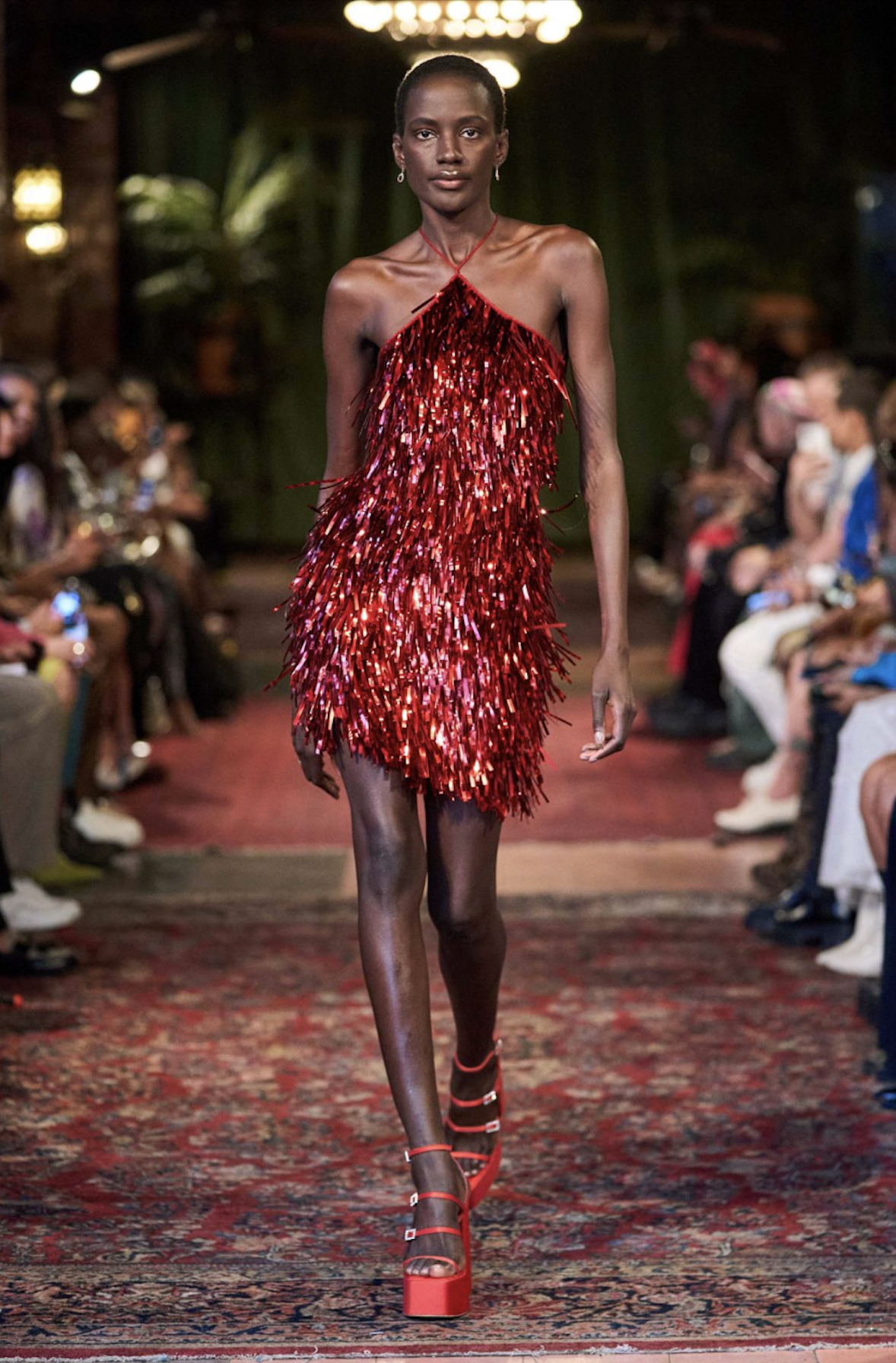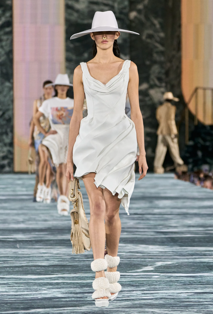 Sulle passerelle della SS23 svettano Area con sandali iter decorati da piume e portati con blazer-body con banane decoro, Balmain con sandali dai listini fluffy e plateau accompagnati dal mini dress asimmetrico total white, Chet Lo in total pink con sandali alla schiava e body iper sgambato, Dior Couture con sandali preziosi tempestati da cristalli e rifiniti dal cinturino in vita che accompagnano il midi abito plissettato, Cucculelli e Shaheen con maxi platform, cinturini con fibbia decoro e abito dalle frange danzanti.