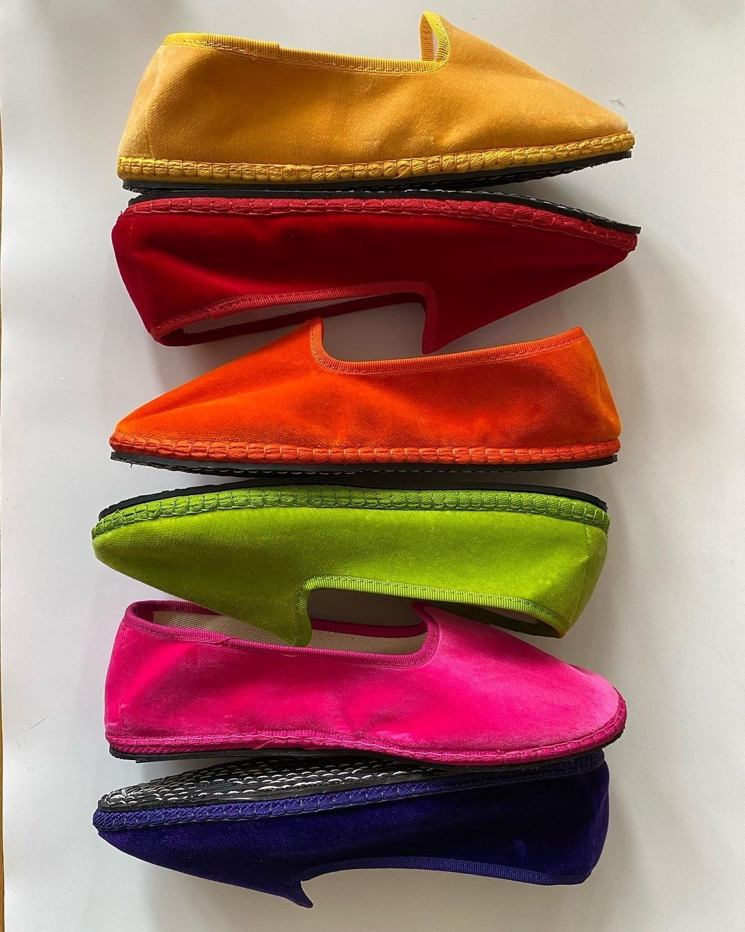 Le furlane sono più di semplici ballerine o che si ispirano alle scarpe tradizionali dei gondolieri veneziani. Specialmente quelle di Bleu Velvet che cuce a mano le sue creazioni da oltre trent’anni, facendo incontrare savoir faire, tradizione e chic.