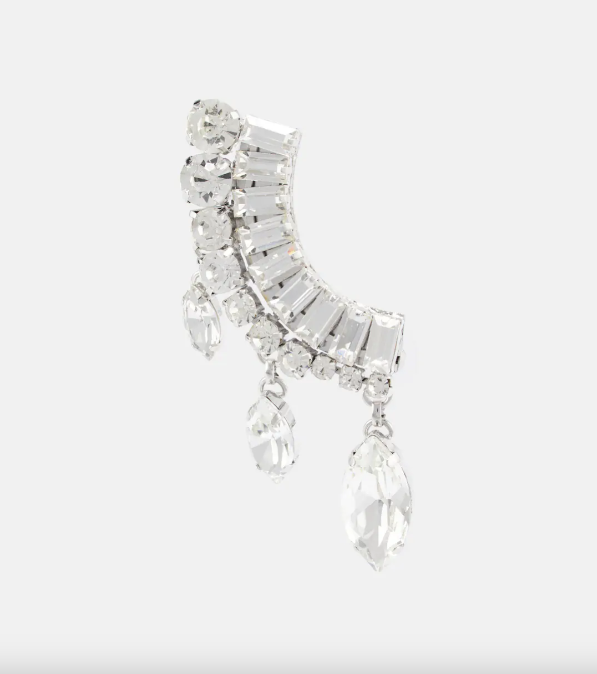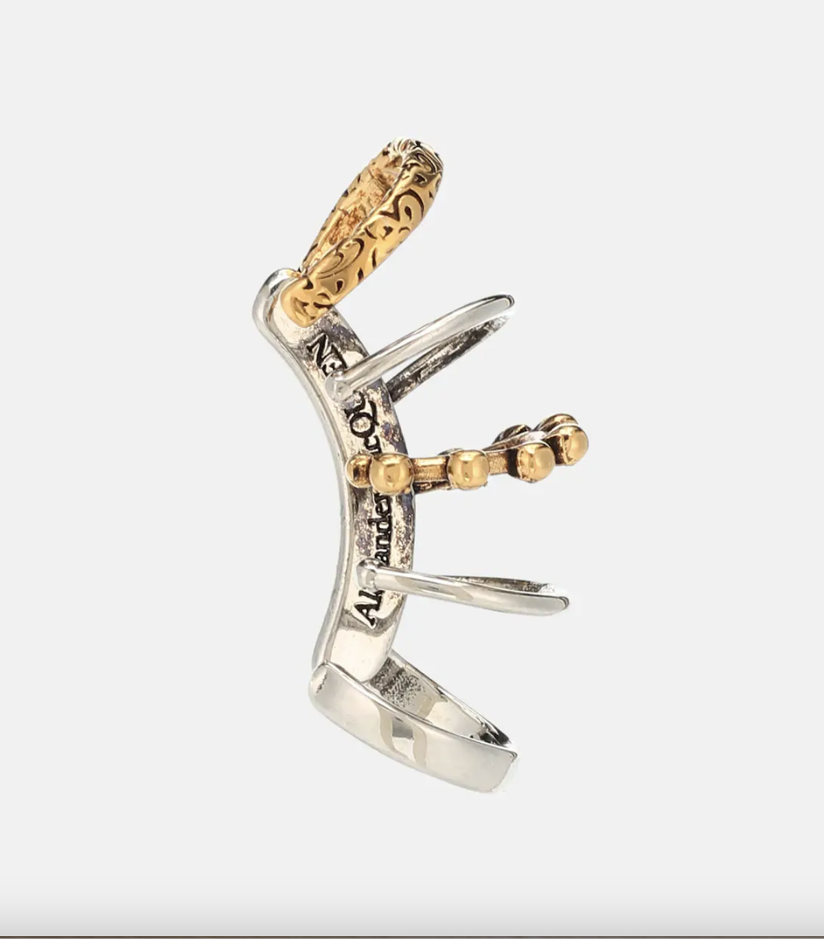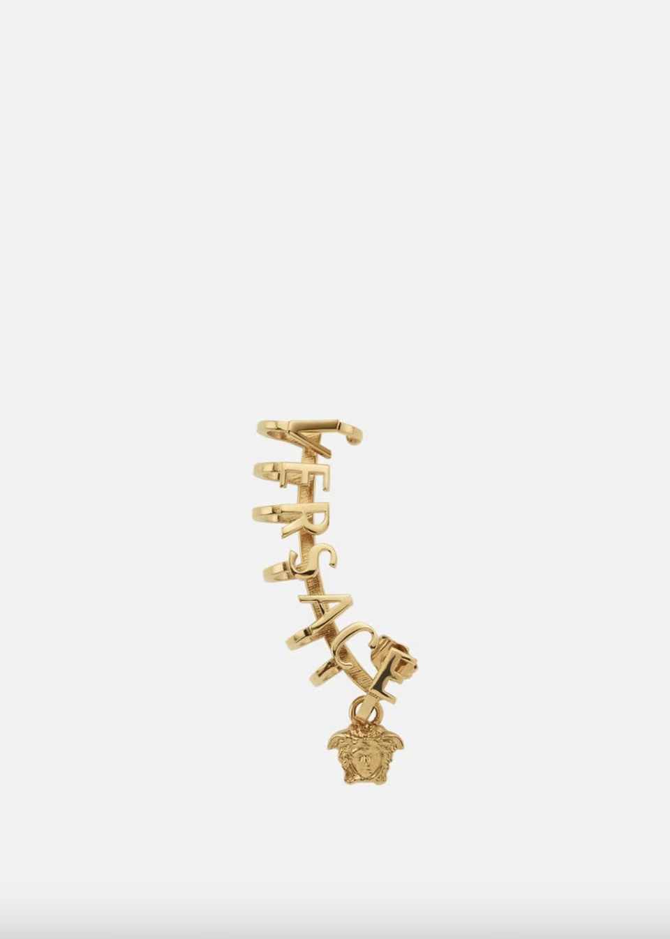 Grandi lettering dorati per Versace che finisce il mono orecchino con il ciondolo della medusa; stella ricoperta di cristalli, catenelle rifinite da Swarovski e logo JC per l’ear cuff di Jimmy Choo; cerchietti dorati e argentati per Alexander McQueen; strass a profusione e chiusura a spilla per Area; bronzo placato oro 18 kt e rigorosamente handmade in Italy l’ear cuff di Angostura.