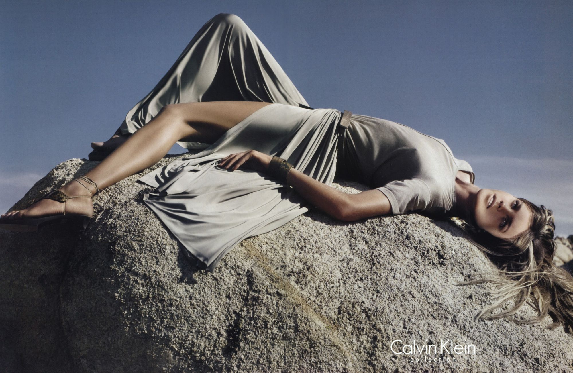 Se c’è di mezzo Steven Meisel anche un semplice scoglio diventa una location fantastica e grazie a Natalia Vodianova sembra il posto più comodo da cui prendere il sole indossando un total look Calvin Klein. L’armonia cromatica di queste immagini è eccezionale.