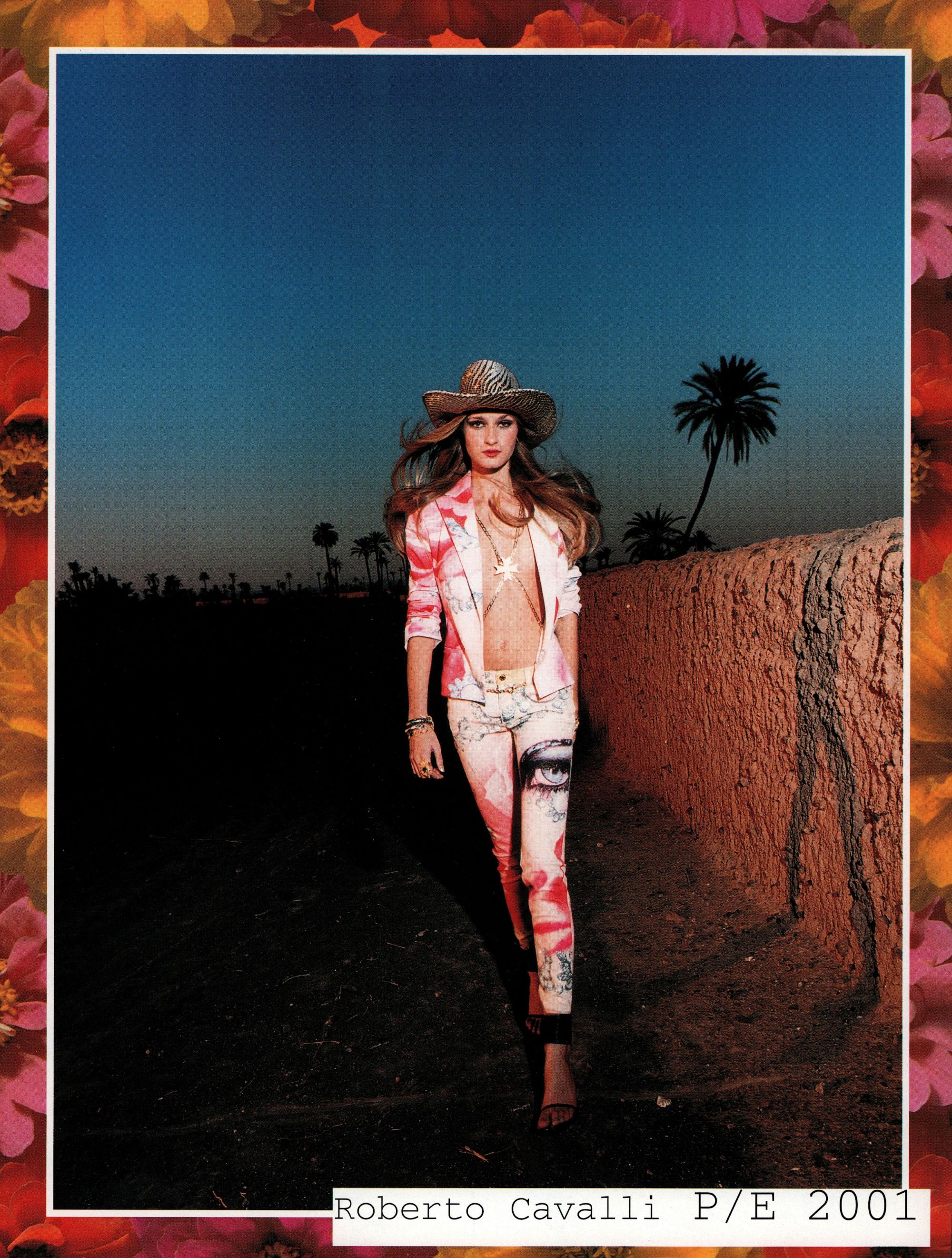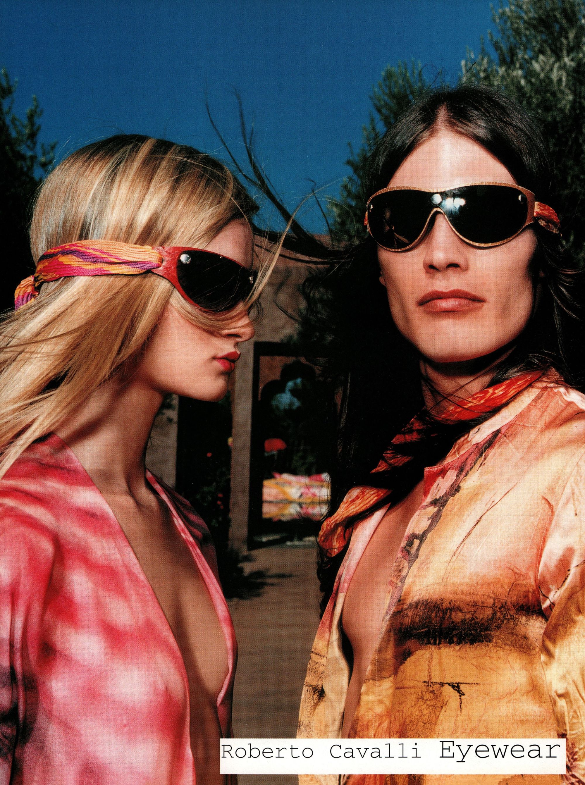 Il ricordo di una vacanza esotica in cui spiccano accostamenti di stampe coloratissime. E una giovanissima Mariacarla Boscono ci guarda dai suoi Bayonetta glasses, in perfetto stile Y2K.