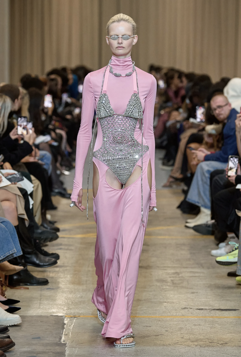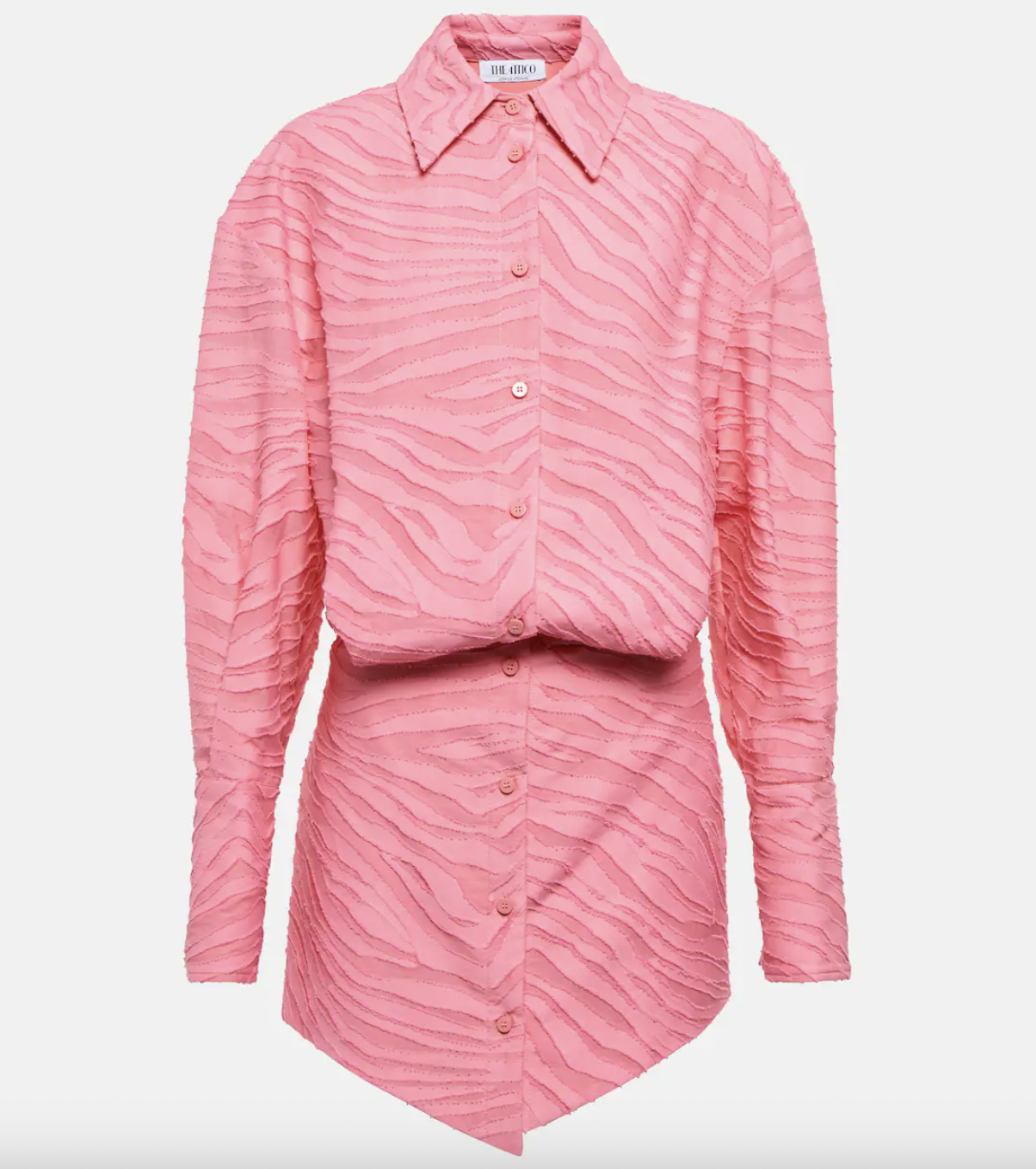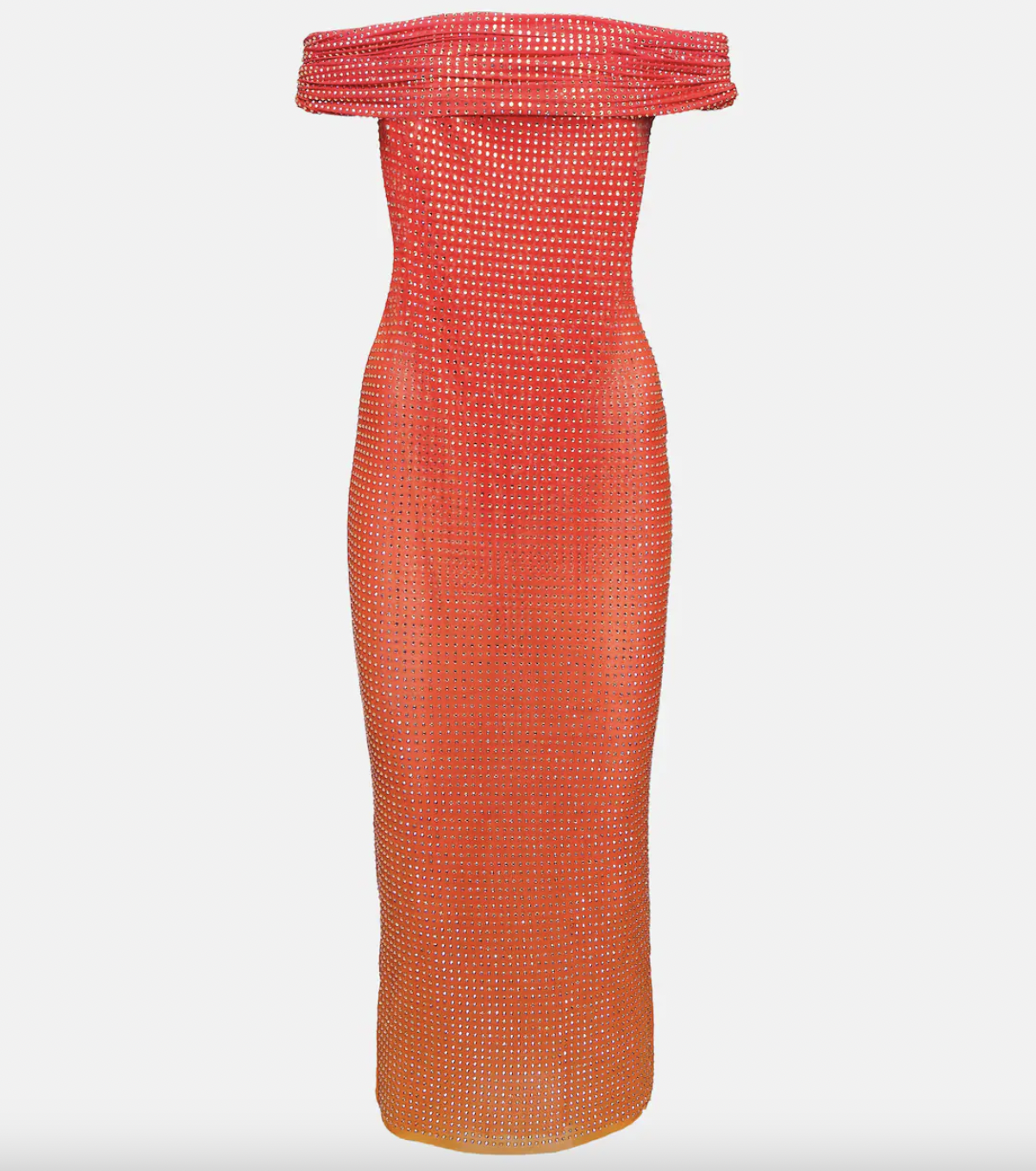 Pantone® Orchid Pink e abito di The Attico con effetti animalier, maniche lunghe e colletto. Pantone® Swim Cap, turchese, e la felpa in tono di Sporty & Rich. Pantone® Mandarin Red e l’abito sfumato, tempestato da cristalli, di Self Portrait; Pantone® Bellwether Blue e i jeans tie & dye di Alanui; Pantone® Spun Sugar e il mini dress di Blumarine; Pantone® Mars Red e le Espadrillas di Forte Forte x Manebì; Pantone® Sky Gray e la felpa girocollo di Ganni; Pantone® Spruced Up e la borsa a mano di MM6; Pantone® Honey Gold, e la borsa di Diesel; Pantone® Créme de Menthe e i sandali in pelle a listini sottili di Jacquemus.