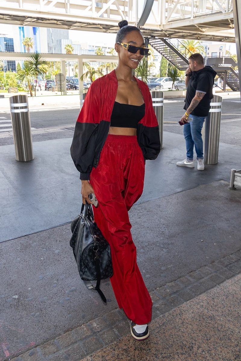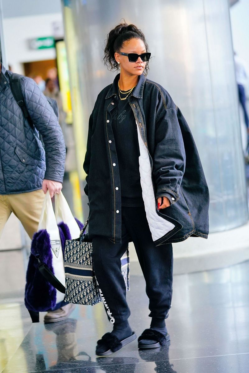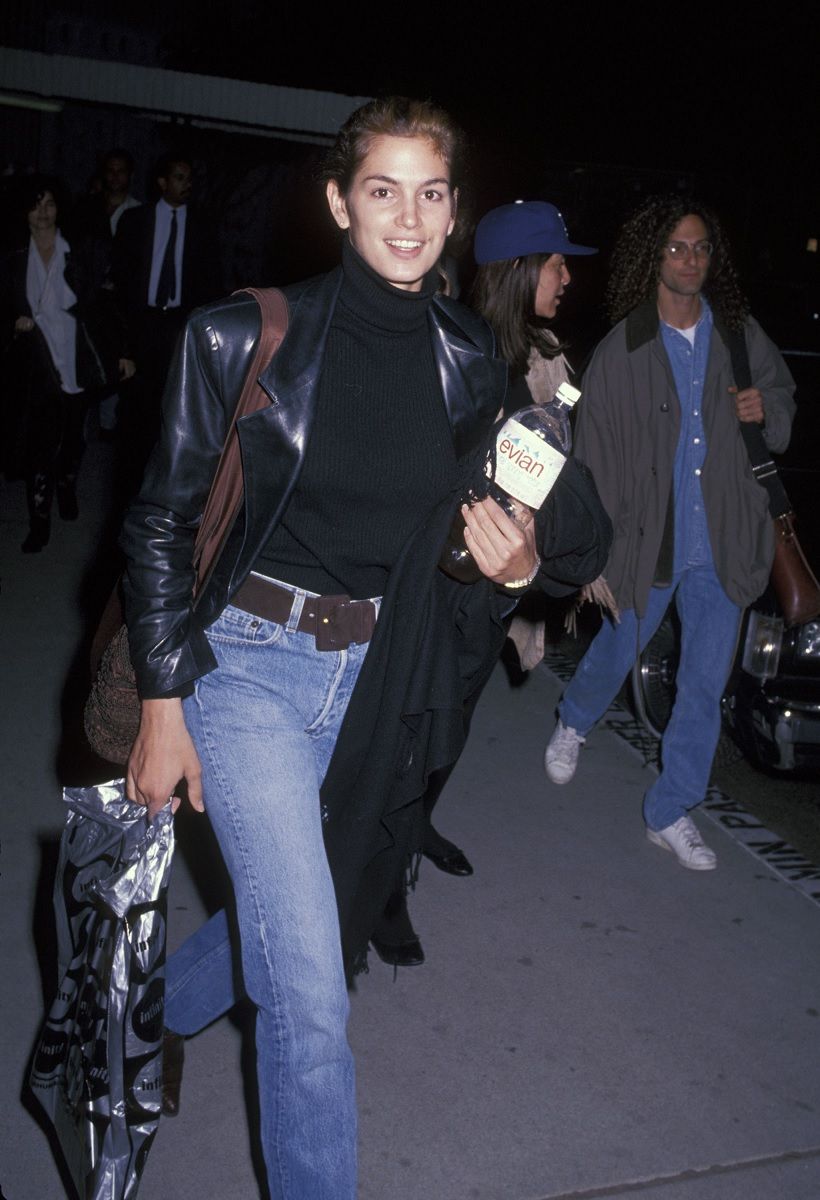 La Golden Age of Travel ha iniziato a la sua fase discendente tra gli anni ’80 e ’90, quando i viaggi aerei sono diventati sempre più frequenti e accessibili e, contemporaneamente, le celeb hanno cominciato a barattare il glamour con la comodità. Certo, gli occhiali da sole per schermare i flash accecanti dei paparazzi sono rimasti, ma, insieme a capellini da baseball, jeans, t-shirt e capi athleisure, sono diventati un mezzo per tentare di confondersi tra la folla, tra i tanti anonimi turisti con il caffè in una mano e la valigia nell’altra. Qualche esempio? Cindy Crawford in completo blu, maglione e accessori in pelle neri nel 1992 o Tyra Banks in giacca in denim, tee di CK e sneaker nel 1996.