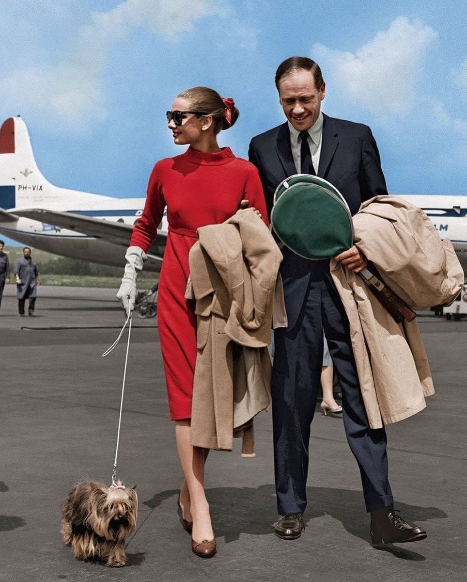 Con buona pace di Victoria Beckham, il fatto che l'aeroporto rappresenti per le celebrità un palcoscenico dove mostrare il loro senso dello stile e del glamour non è certo una novità. È così da sempre. Una volta viaggiare in aereo era davvero un lusso riservato alla classe d'élite e come tale richiedeva un outfit adeguato. L'originale look del jet-set era firmato Chanel, Balmain, Courrèges, Cardin, Dior e coincideva con con i lussuosi set di valigie, lo champagne a bordo, le hostess con le divise impeccabili e il sorriso smagliante, con la Pan Am e i suoi aerei progettati da architetti alla moda e le dive di Hollywood come Marilyn Monroe e Audrey Hepburn che salivano la scalinata dell’aereo coi tacchi e la pelliccia, la gonna a ruota e la giacca sartoriale, la borsetta chic e i guanti coordinati. Essere eleganti era un dovere e gli aeroporti erano il corrispettivo diurno dei red carpet. E, come tali, subivano l’influenza dei trend del periodo, evolvendosi a pari passo della moda. Così il look da aeroporto degli anni ’60 e ‘70, come le creazioni di Paco Rabanne e Pierre Cardin, era caratterizzato da design futuristici e fibre sintetiche e, da Brigitte Bardot a Jane Birkin, le dive in partenza preferivano mini dress, pattern allegri, stivali alti fino al ginocchio e occhiali da sole dalle forme rotonde.